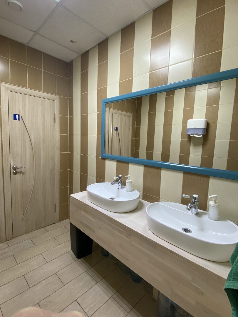 Я забронировала кровать в 4-х местном женском номере. У нашего номера был свой туалет и умывальник. Ночью работала ночная подсветка (свет под кроватью).