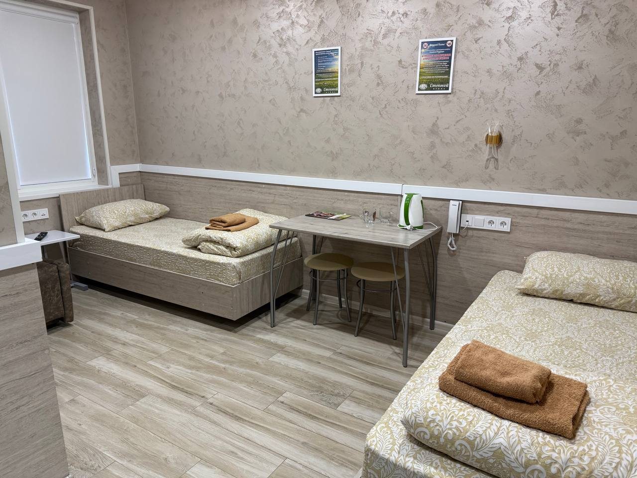 - Трёхместный и более (Стандартный трехместный номер с двумя отдельными кроватями и кресло кроватью)