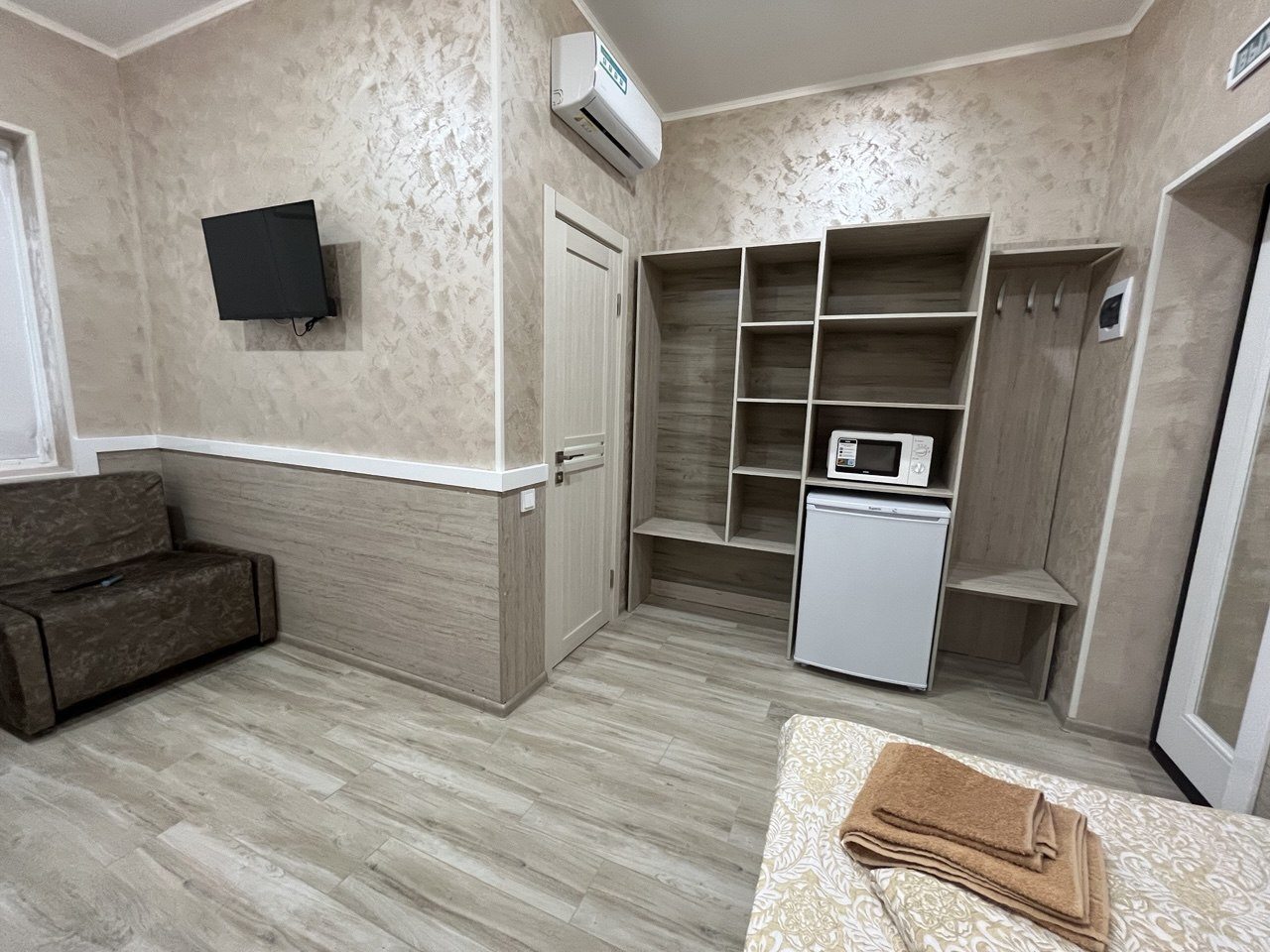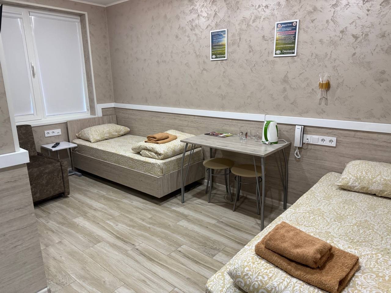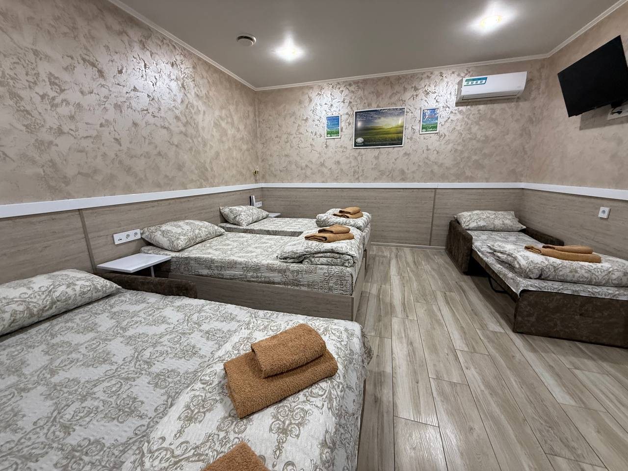 - Трёхместный и более (Стандартный трехместный номер с общей кроватью и кресло кровать)