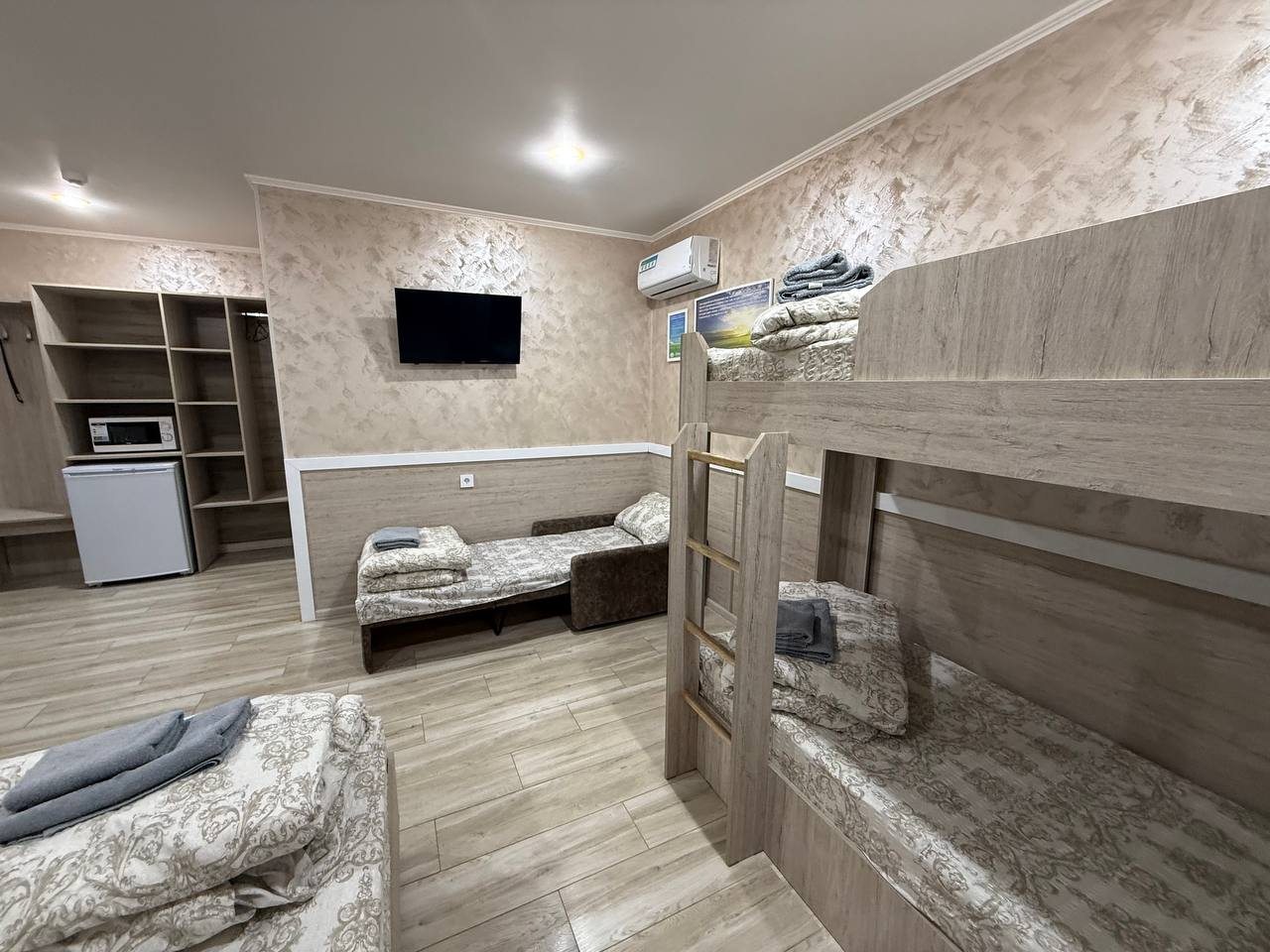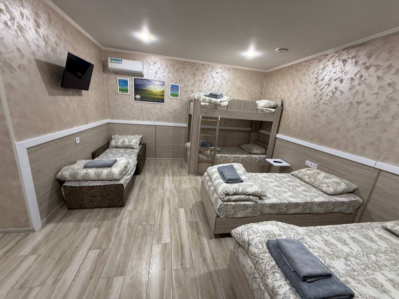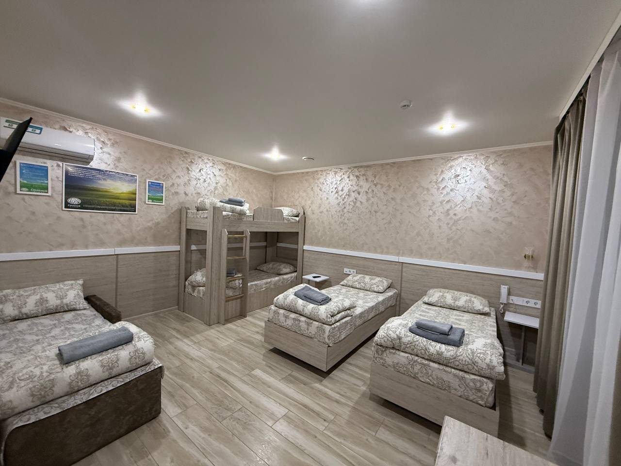 - Четырехместный (Стандартный четырехместный номер двухспальная кровать и двухьярусная кровать)