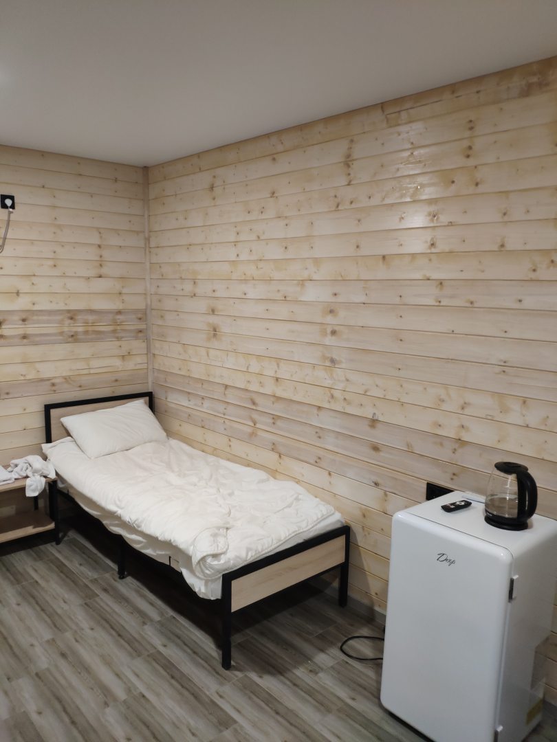 Дали домик рядом с причалом, что очень порадовало. Кровати удобные, есть чайник, холодильник, интернет работает, чисто. Помогли с егерем на рыбалку, предоставили холодильник. Сервис очень хороший