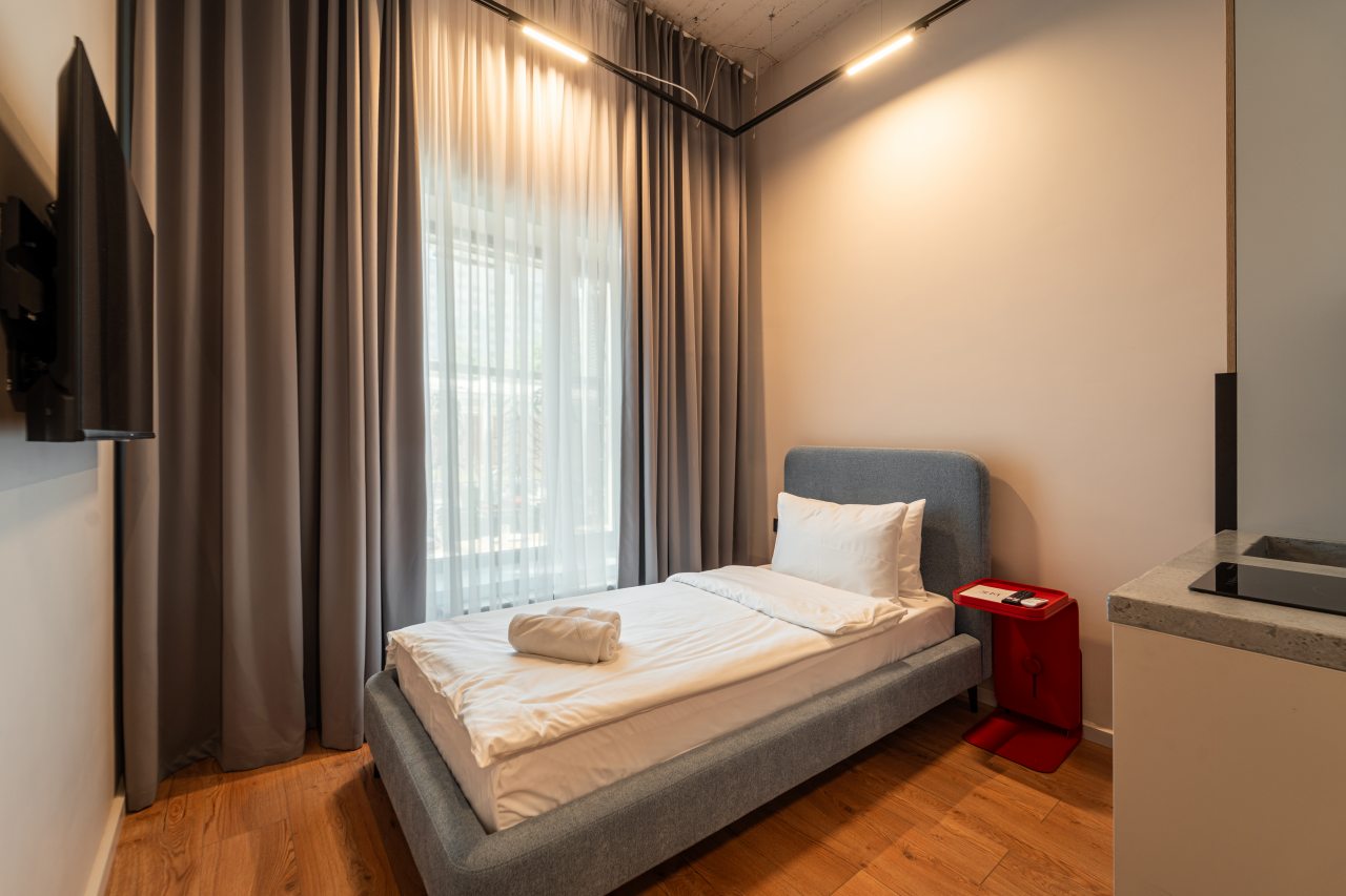 Для выбора есть как одноместные, так и двухместные номера со всеми удобствами, включая мягкую кровать, напротив которой находится ЖК-телевизор для комфортного просмотра, затемненные шторы для крепкого сна, а также санузел, укомплектованный полотенцами, туалетно-косметическими средствами и феном.
