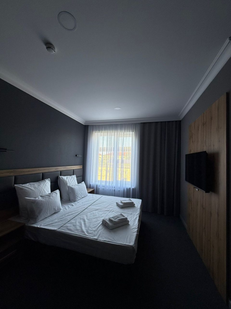 Гостям предлагаются комфортабельные номера с удобной мебелью и современной техникой: двуспальная кровать, телевизор, Wi-Fi, кондиционер. В собственной ванной комнате подготовлены полотенца и гигиенические средства. Можно воспользоваться стиральной машиной на этаже.