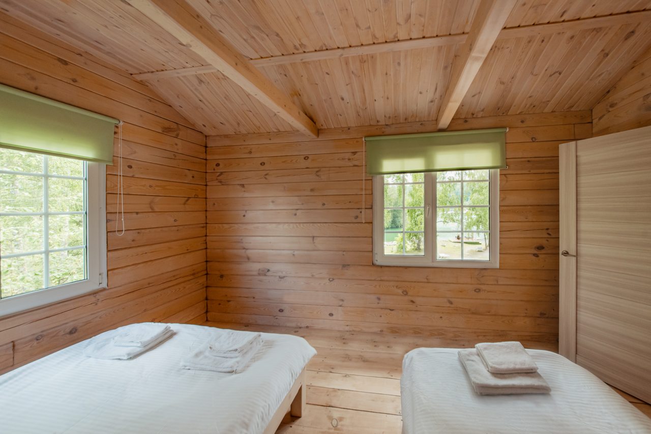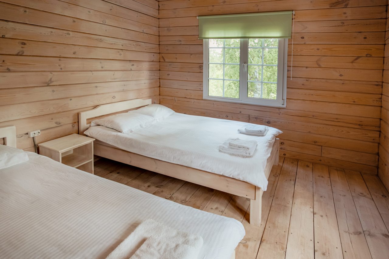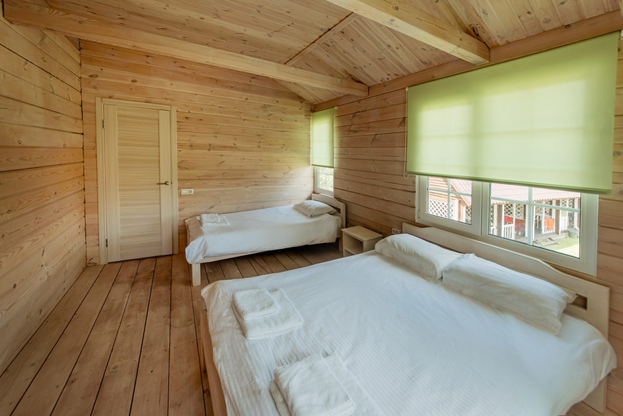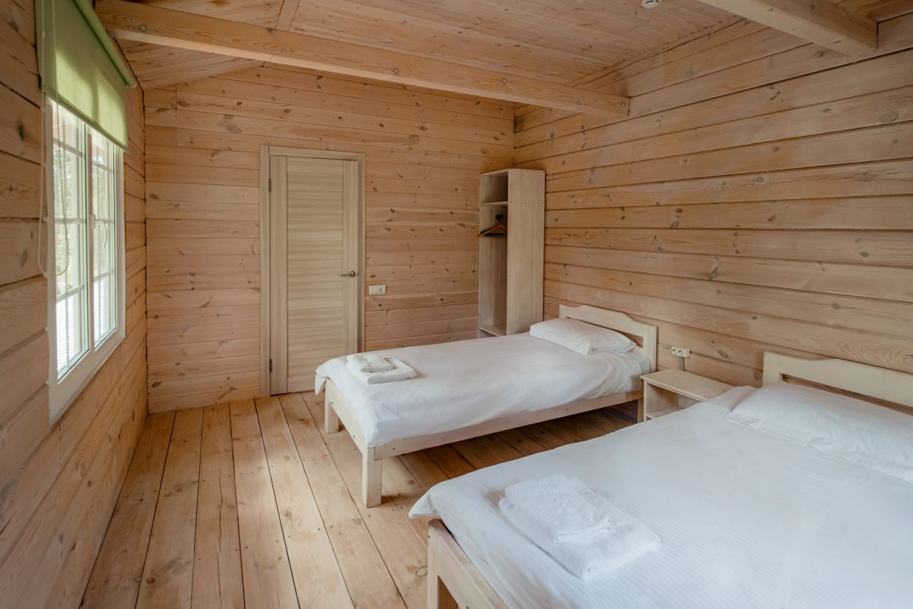 Внутри коттеджей предусмотрены все удобства для проживания. В каждом помещении есть уютные спальни и ванные комнаты.