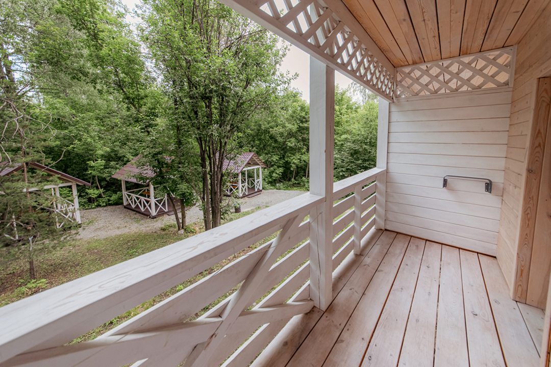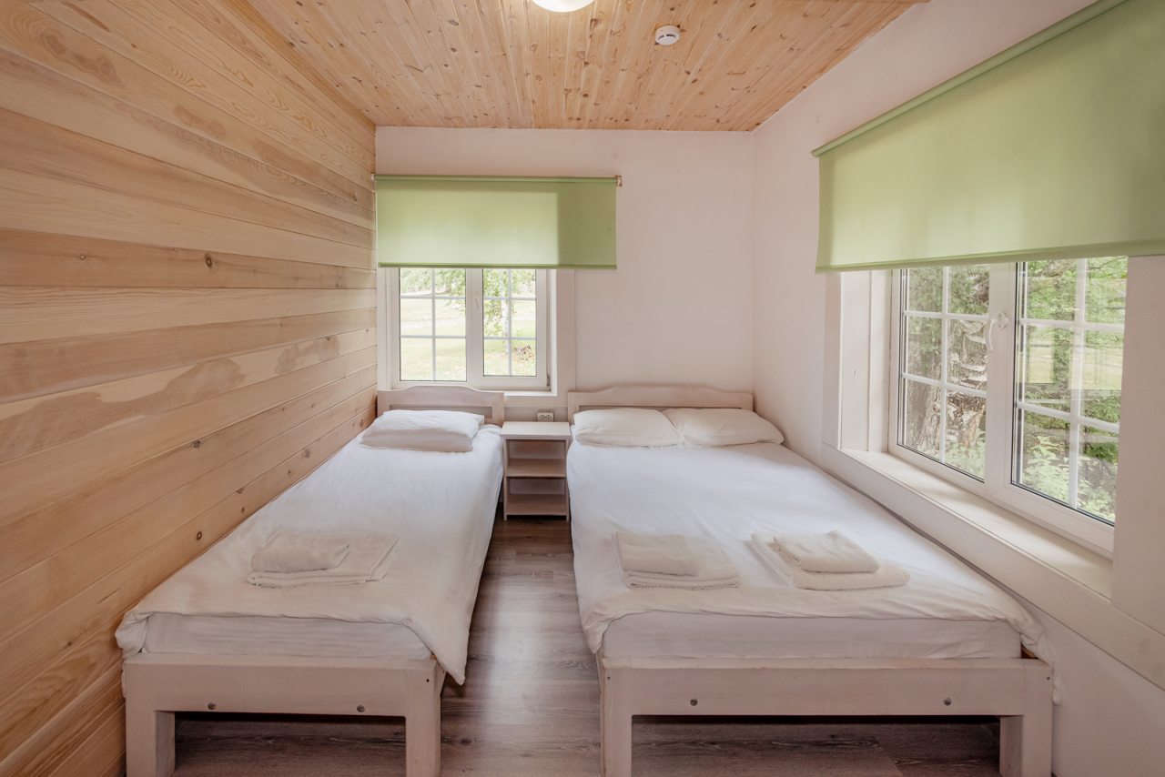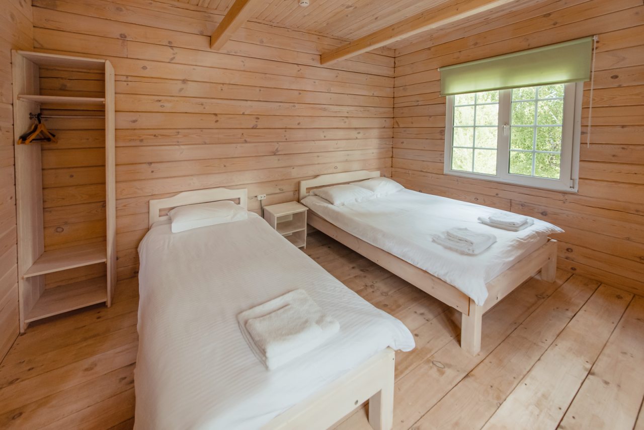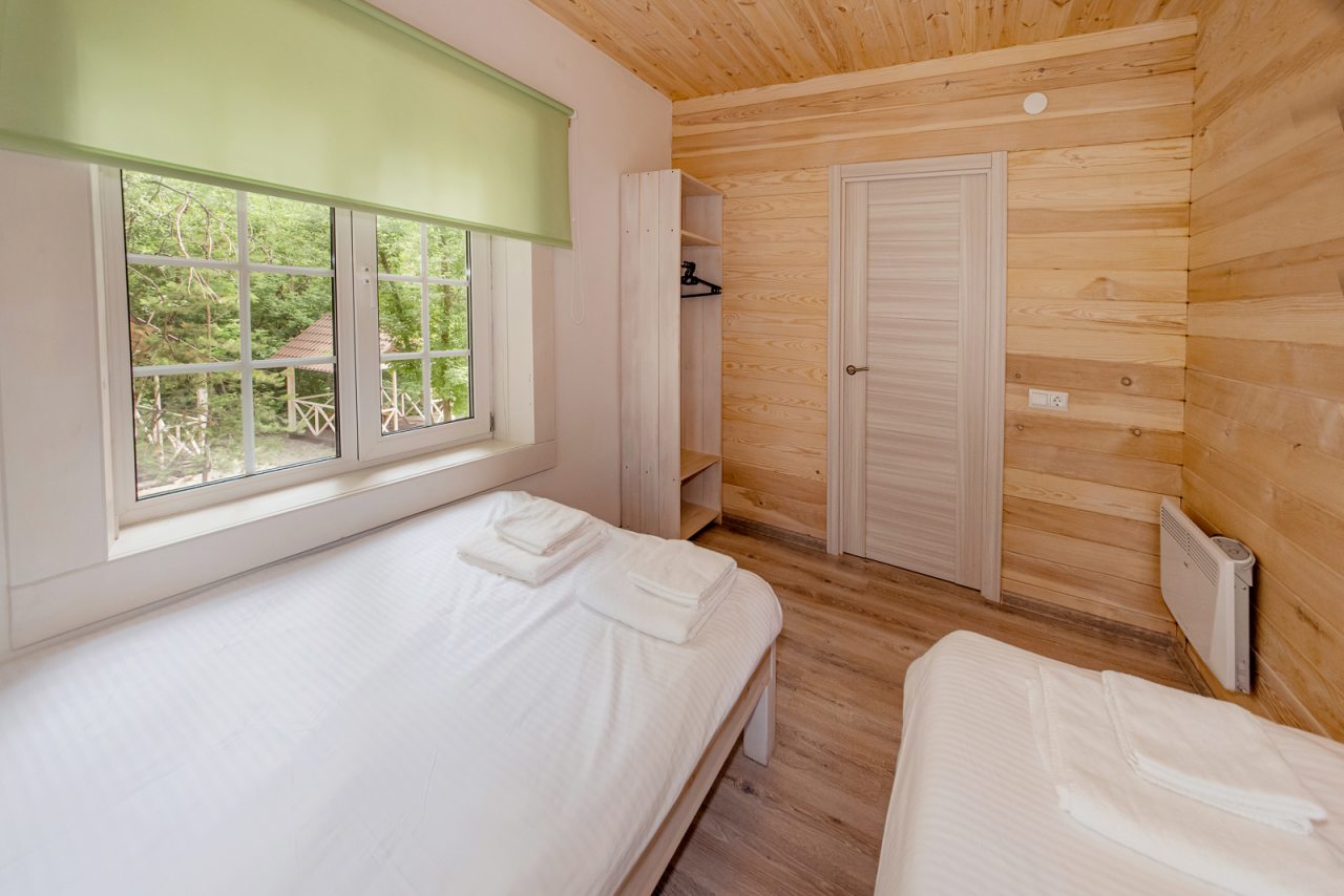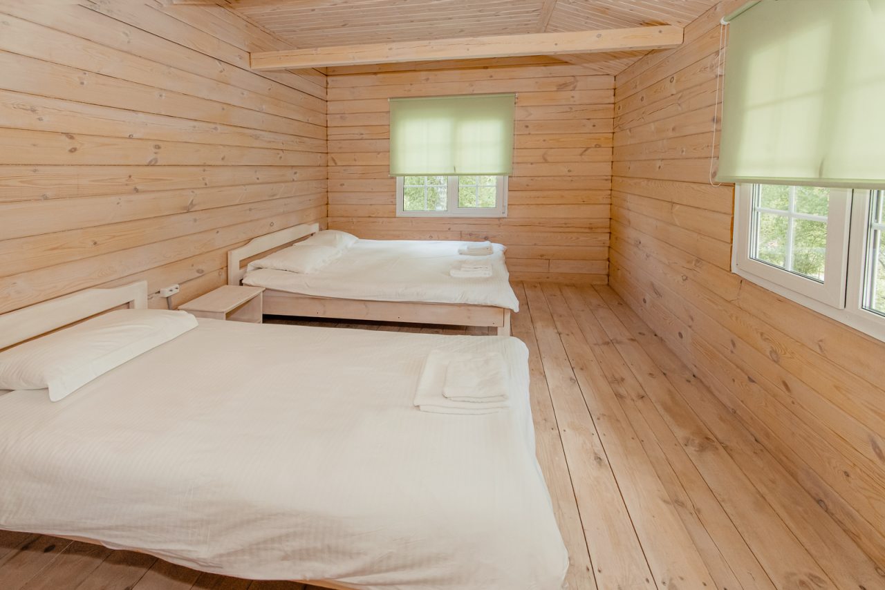 Внутри коттеджей предусмотрены все удобства для проживания. В каждом помещении есть уютные спальни и ванные комнаты.