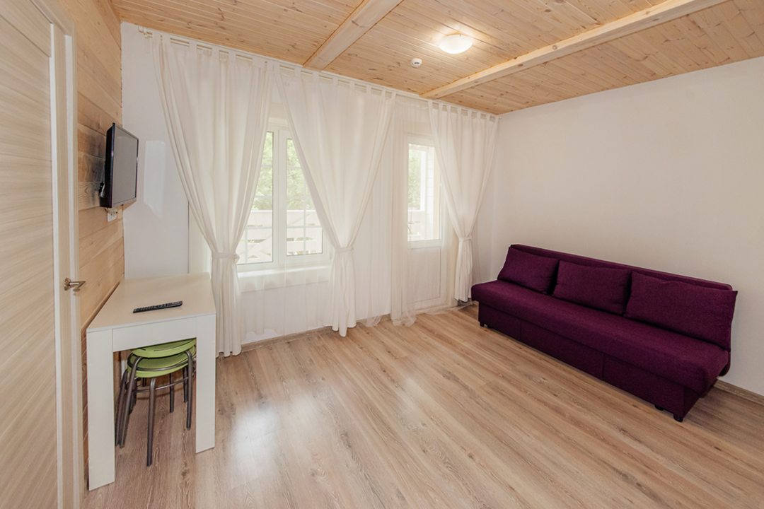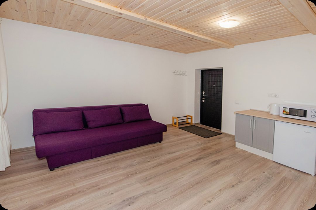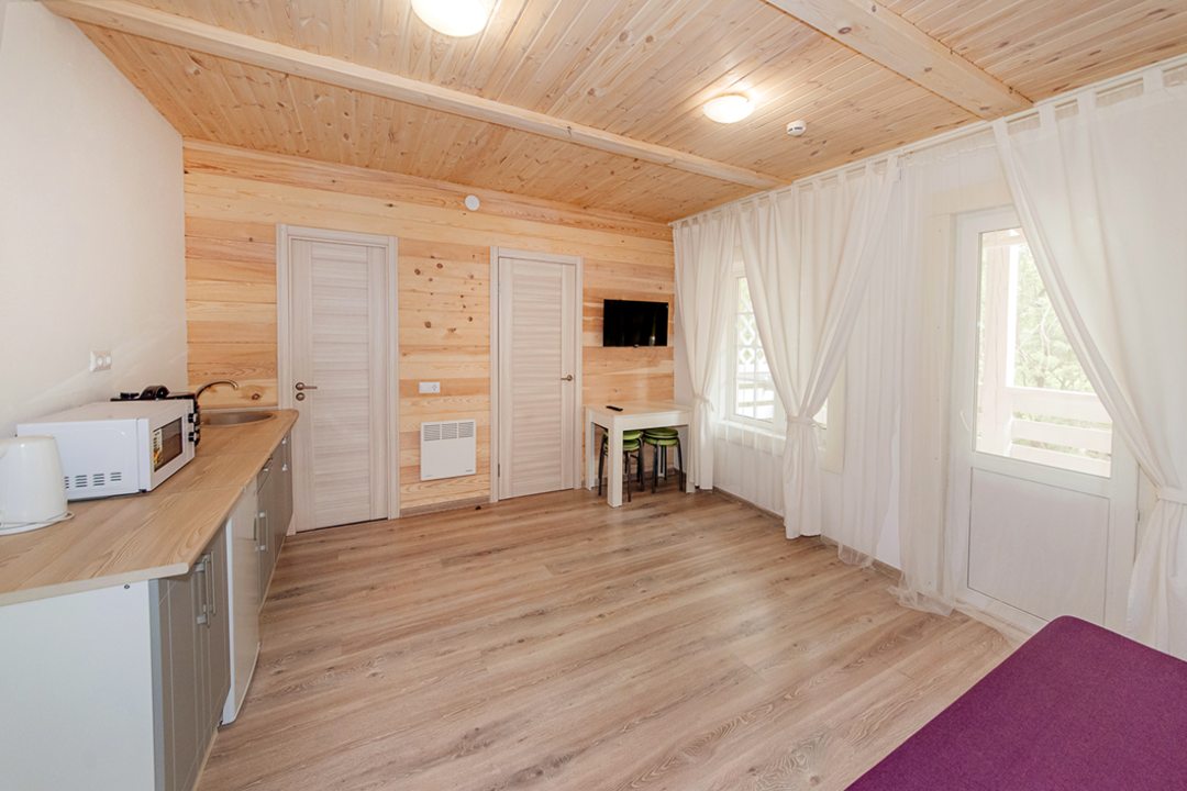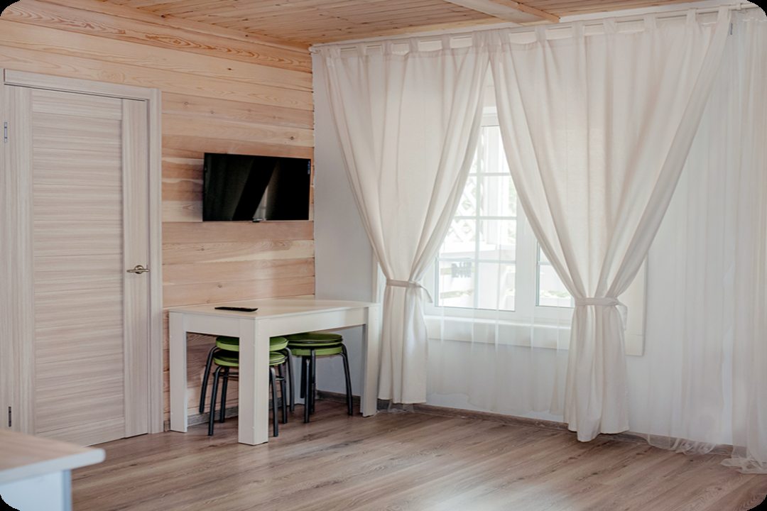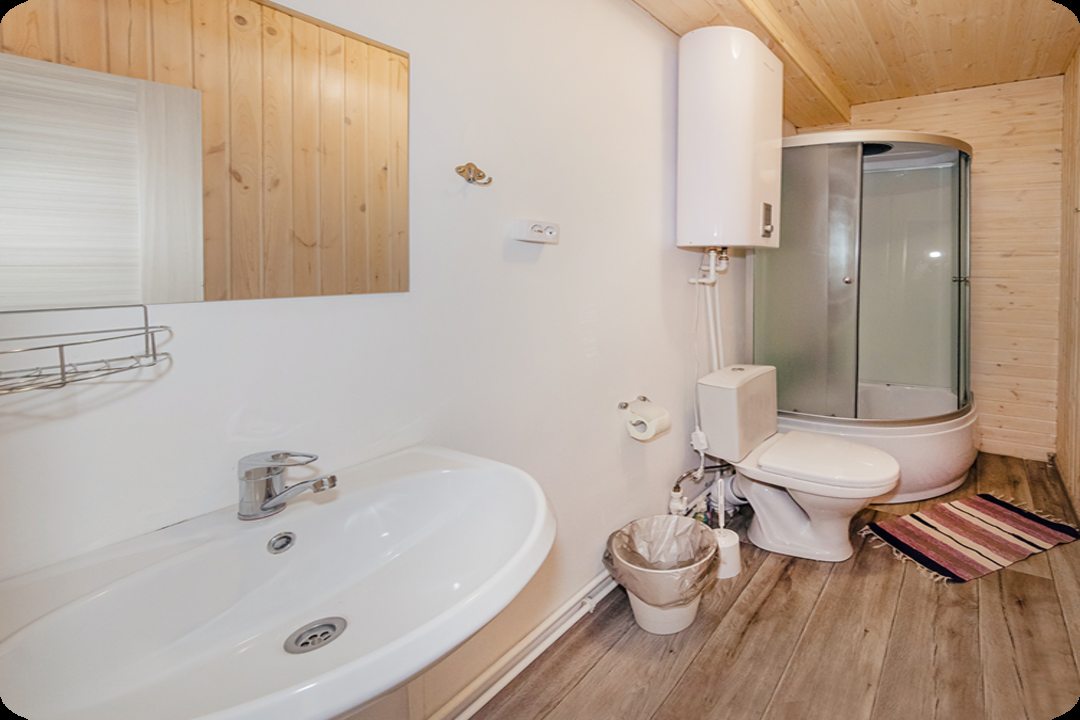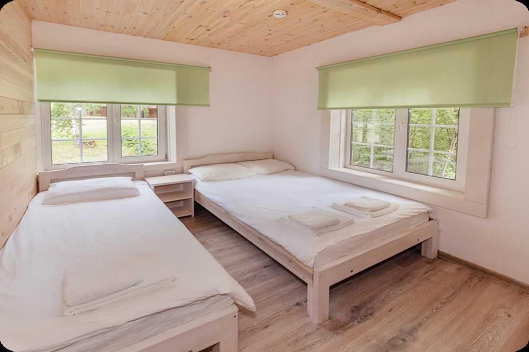 Эта база отдыха создает атмосферу деревенского уюта. Особенно радует наличие бани и возможности покататься на велосипеде по окрестностям – просто замечательно! В домике есть всё необходимое для комфортного пребывания. Кухня оборудована всей бытовой техникой, ванная комната с душем и полным комплектом принадлежностей. Мы прекрасно провели время и отлично отдохнули!