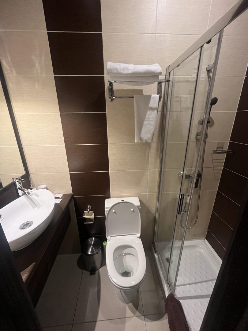 Из недостатков: в номере всего одна розетка, ещё одна в санузле.