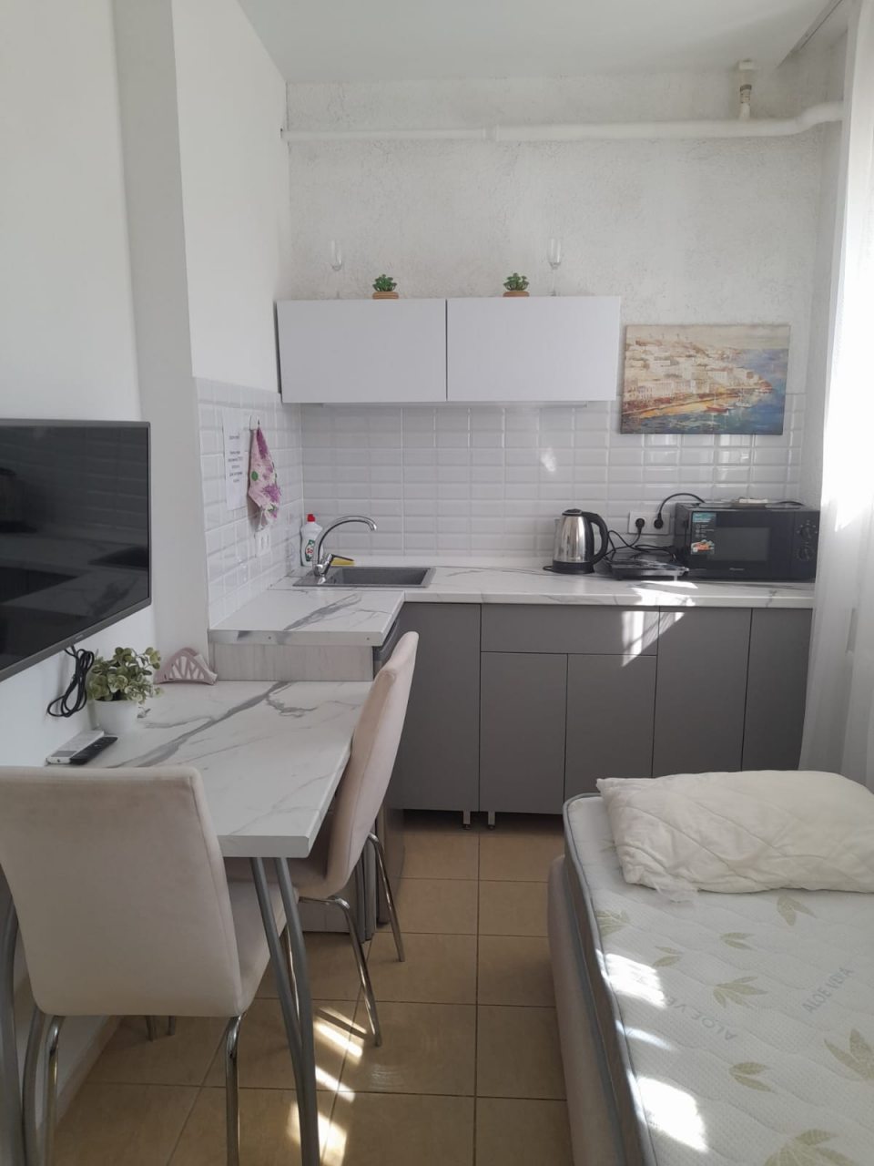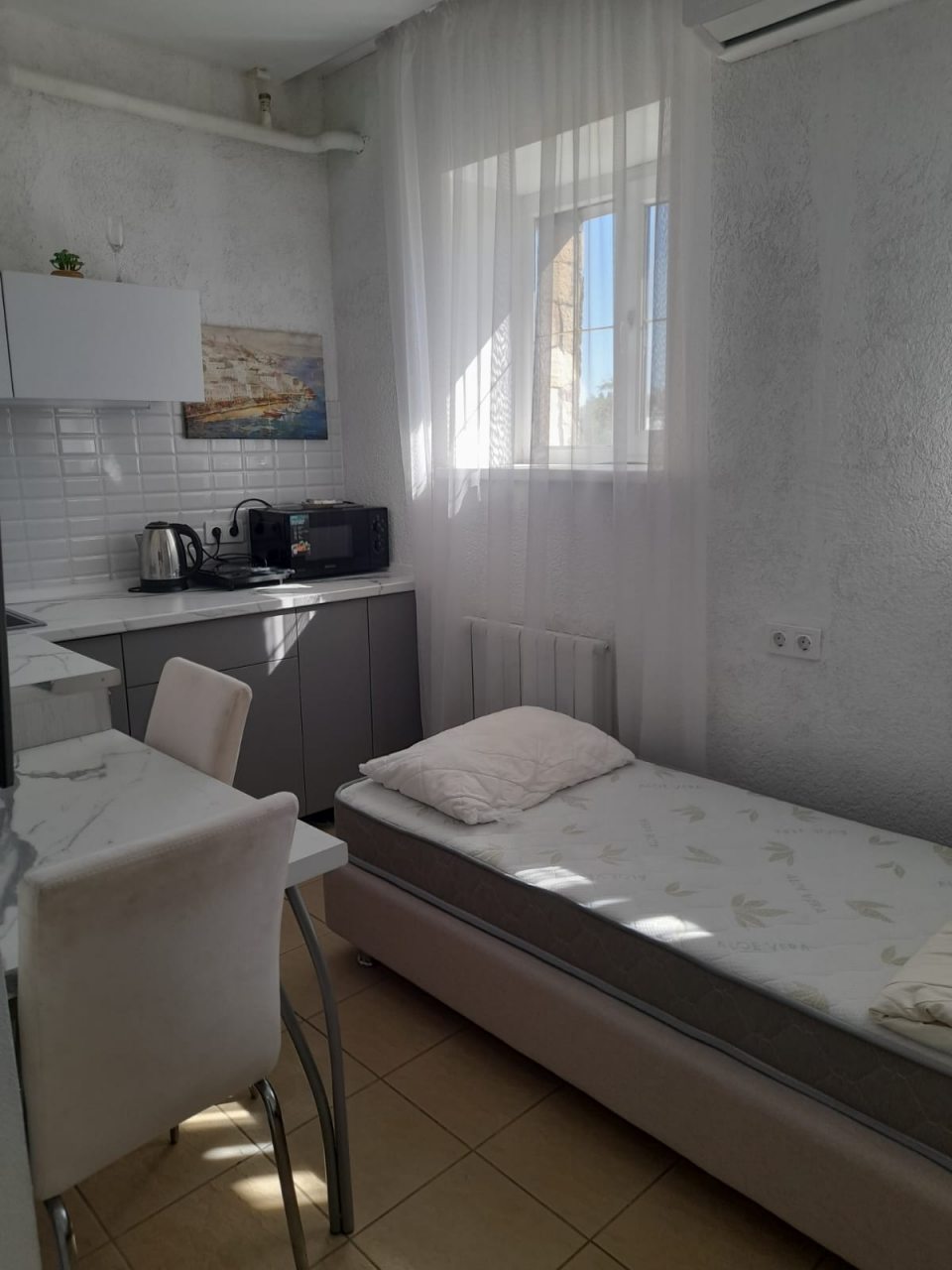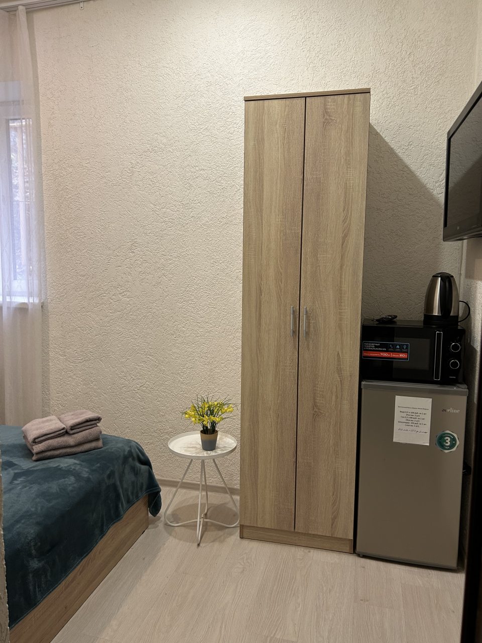 2. Все необходимое было в номере: полотенца, постельное, посуда на 4 человека, даже нож острый, что всегда большая редкость )))) Что приятно удивило, была сушилка, актуально для семьи. Всегда есть что постирать по-быстрому. На окнах, кстати, москитные сетки.
