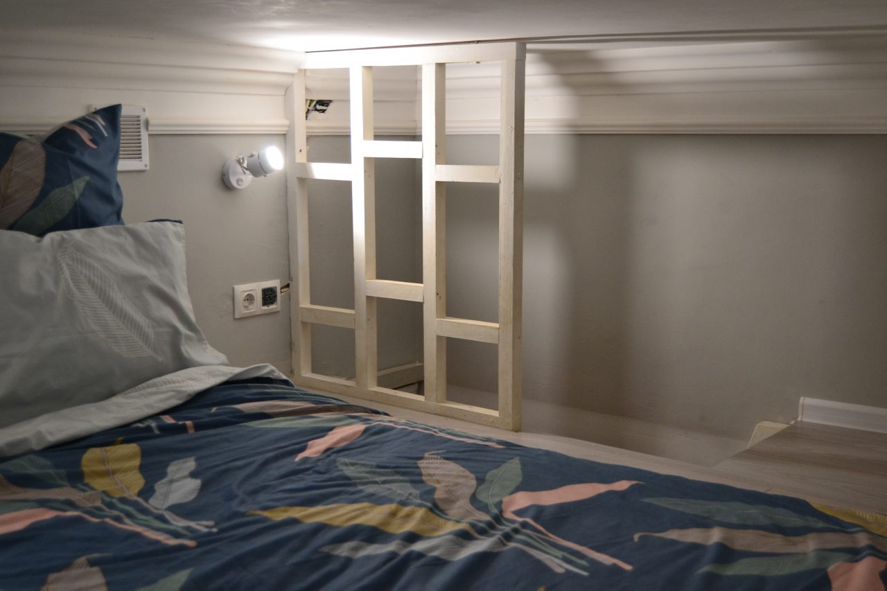 Предлагается двухэтажная квартира, оснащенная кроватью и диваном для отдыха, шкафом для одежды. Имеется санузел со стиральной машиной и душевой кабиной.
