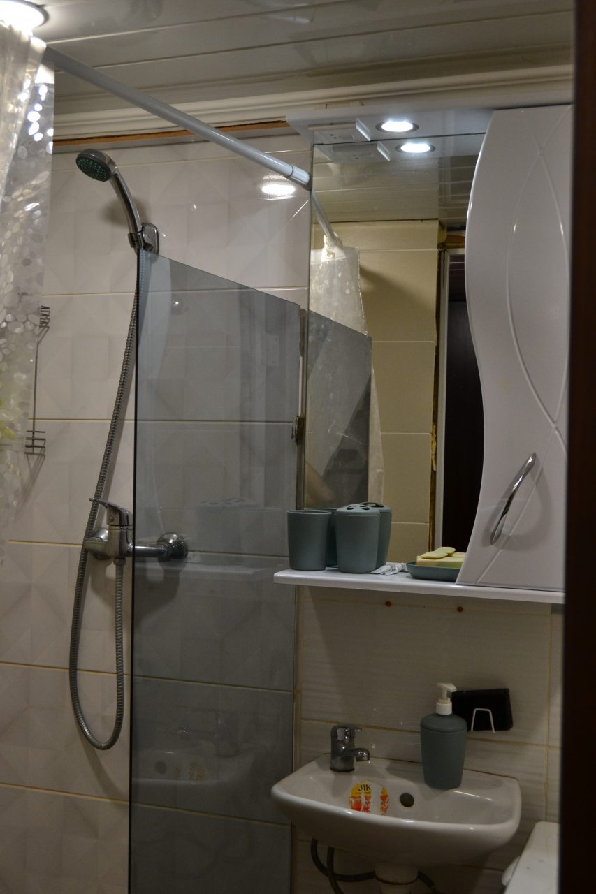 Из недостатков: мебель "подуставшая", при включении воды громко шумит насос.