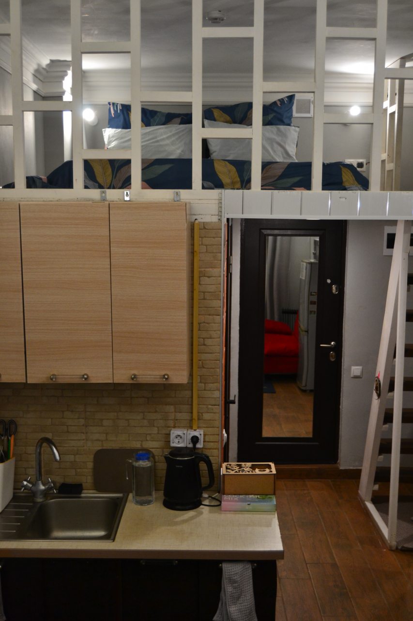 Апартаменты расположены в цокольном этаже. В номере есть необходимая посуда, плитка, электрический чайник, стиральная машина. Удобный матрас, хорошее постельное бельё. Вежливый администратор.