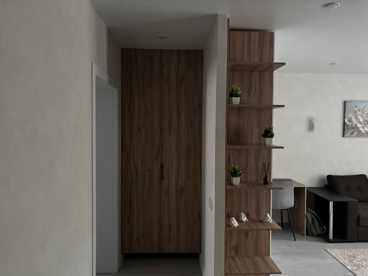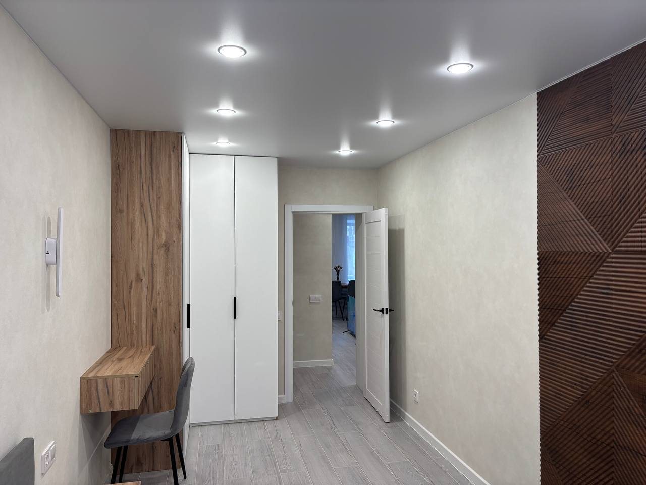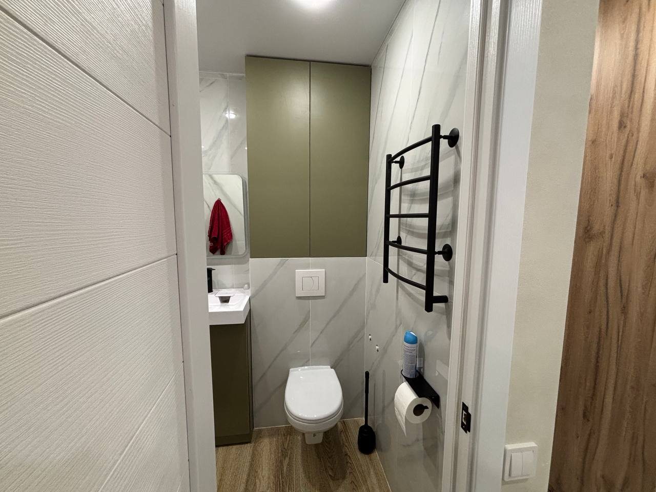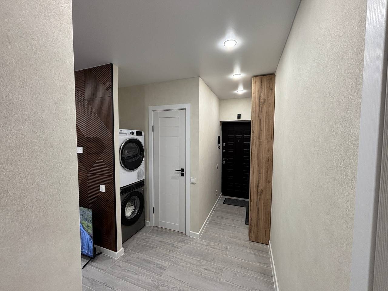 Стильные апартаменты с современным ремонтом укомплектованы двуспальной кроватью, диваном, большими окнами, розетками возле спального места, небольшой рабочей зоной с письменным столом, шкафом и др. Санузел оборудован комплектом качественной сантехники, стиральной машиной. Доступна точка wi-fi.