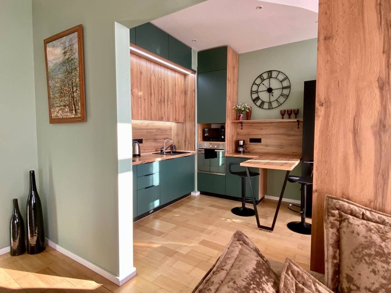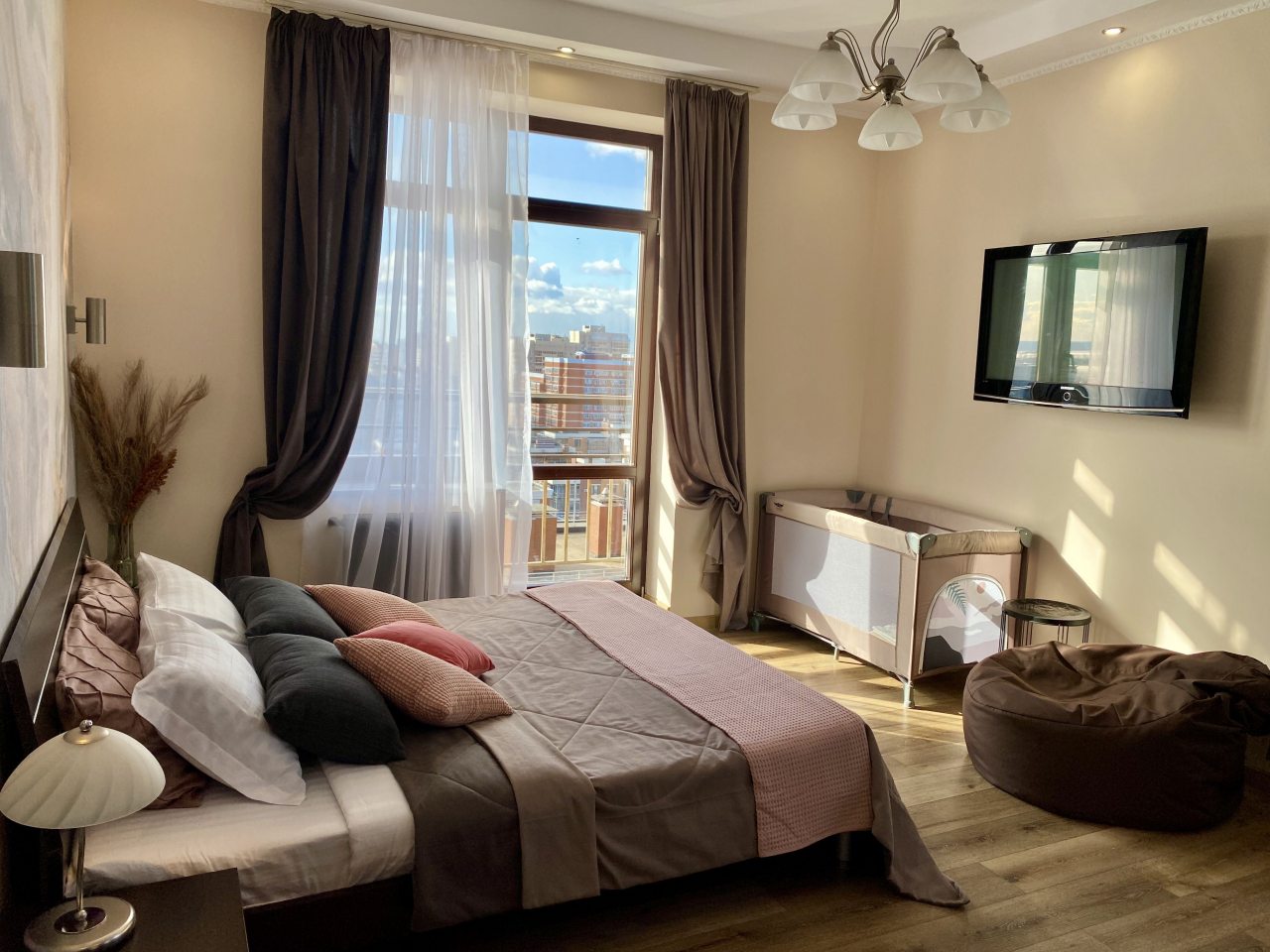Просторный номер с хорошим наполнением, расположение в центре. С супругой приезжали в отпуск в Казань, важно было наличие всего необходимого, чтобы все вещи помещались в ручную кладь, и хорошая локация, в спокойном районе. Здесь рядом набережная реки Казанка, в принципе станция метро тоже недалеко, минут 15 размеренным шагом. Магазины, ТЦ, ухоженные улицы, парки - все в пешей доступности.