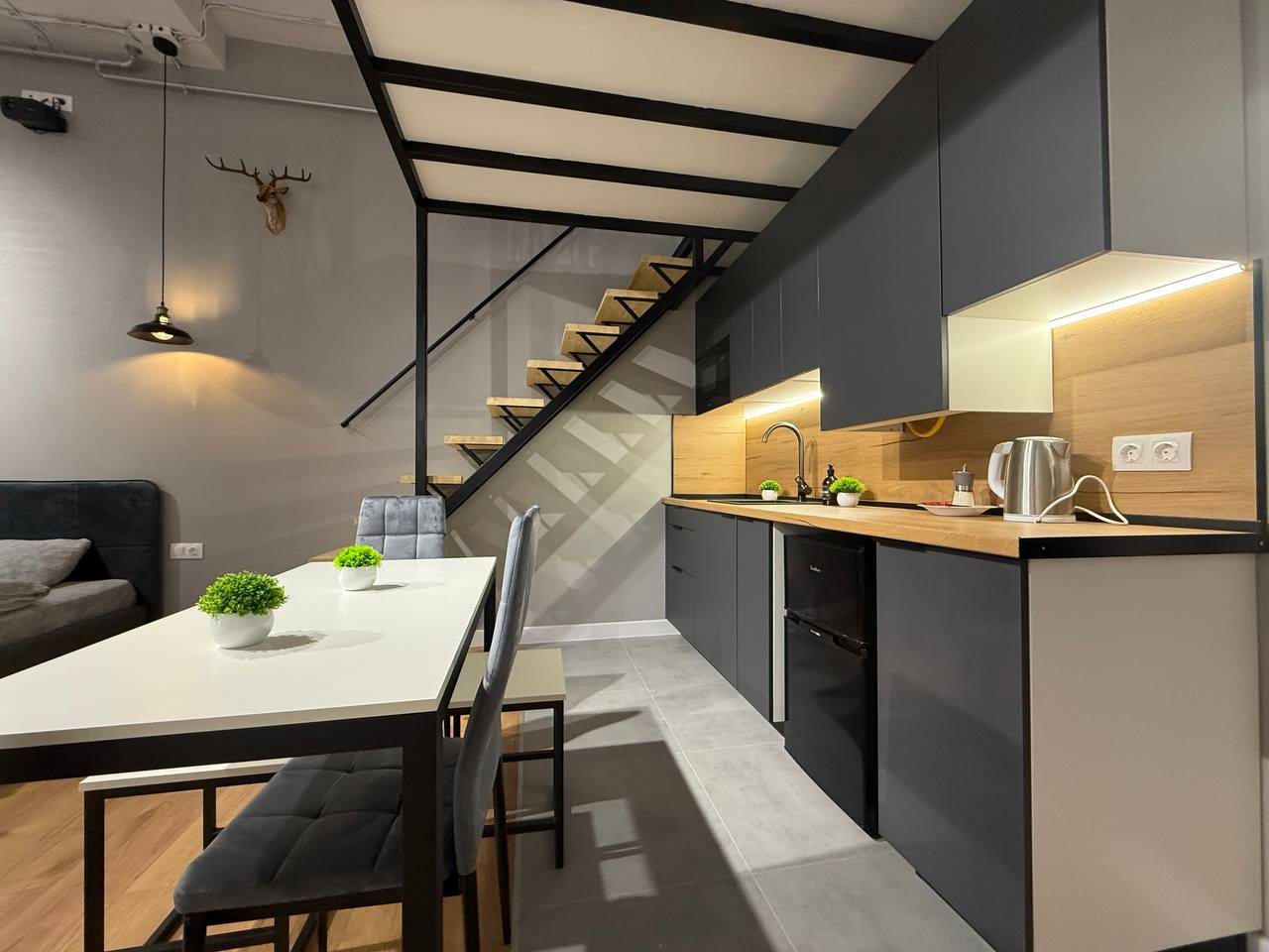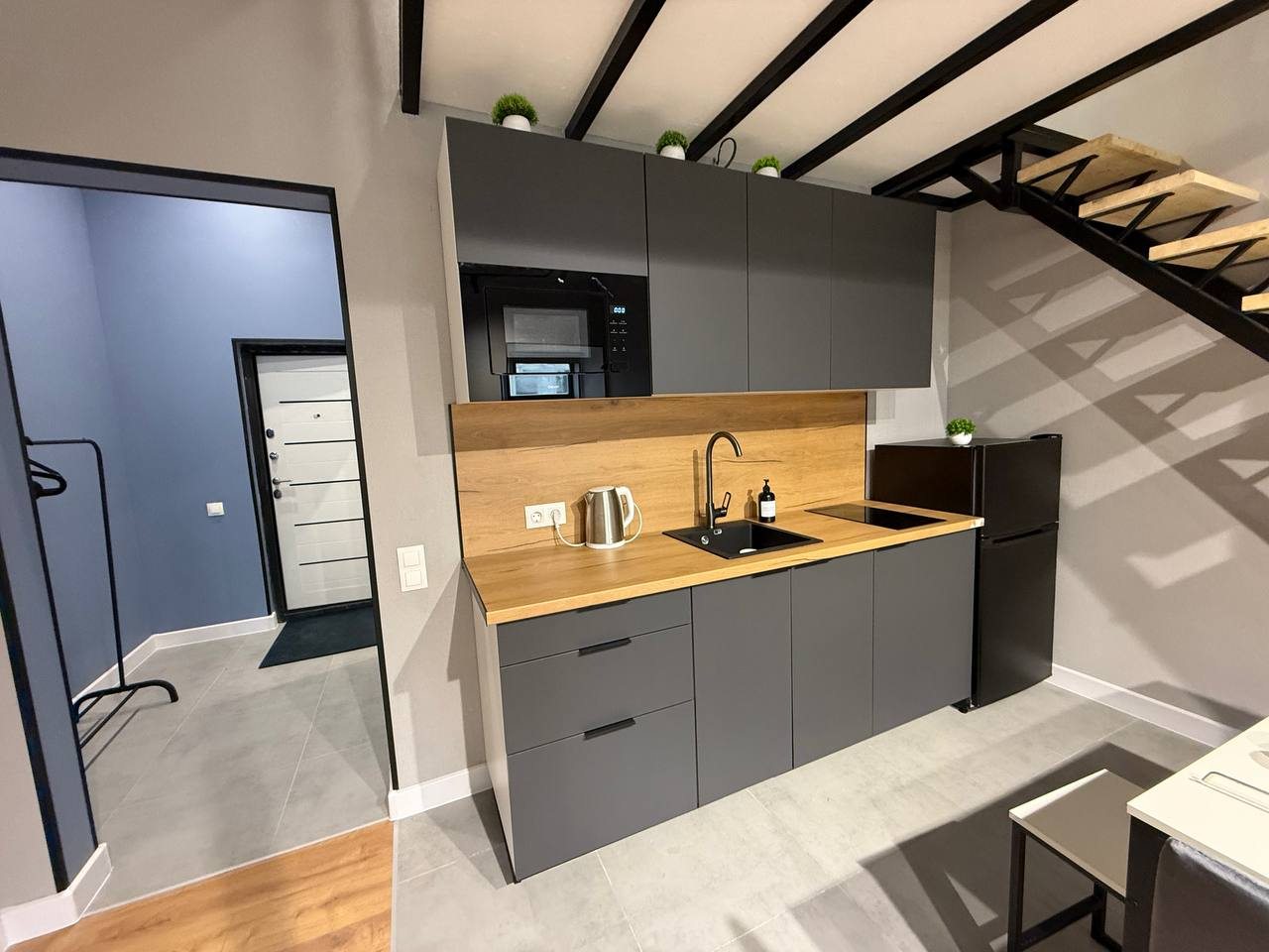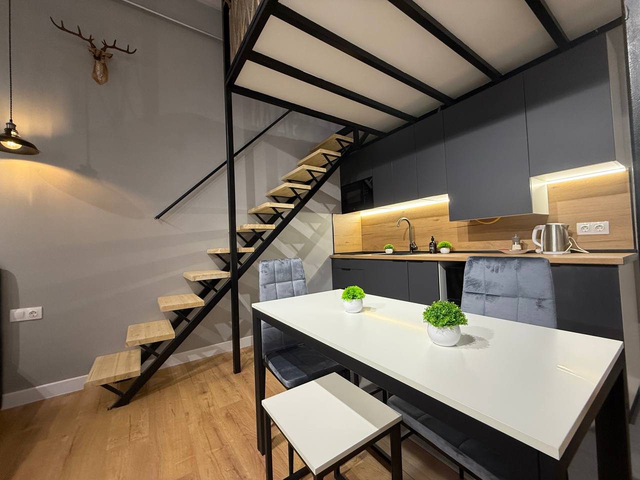 Для размещения предлагаются двухуровневые апартаменты, которые оборудованы всем необходимым для отличного проживания: есть две двуспальные кровати, бра, вешалка, быстрый интернет, светильник, гладильные принадлежности, кондиционер. Имеется телевизор с различными онлайн-кинотеатрами. Плотные шторы на окнах способствуют комфортному сну. В ванной комнате есть вся необходимая сантехника, фен, набор полотенец, косметические принадлежности.