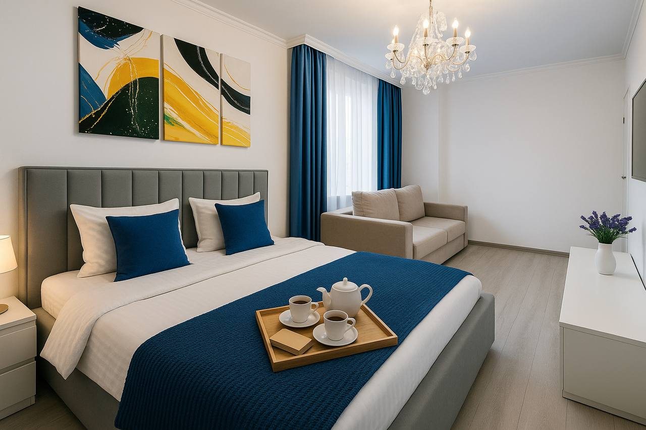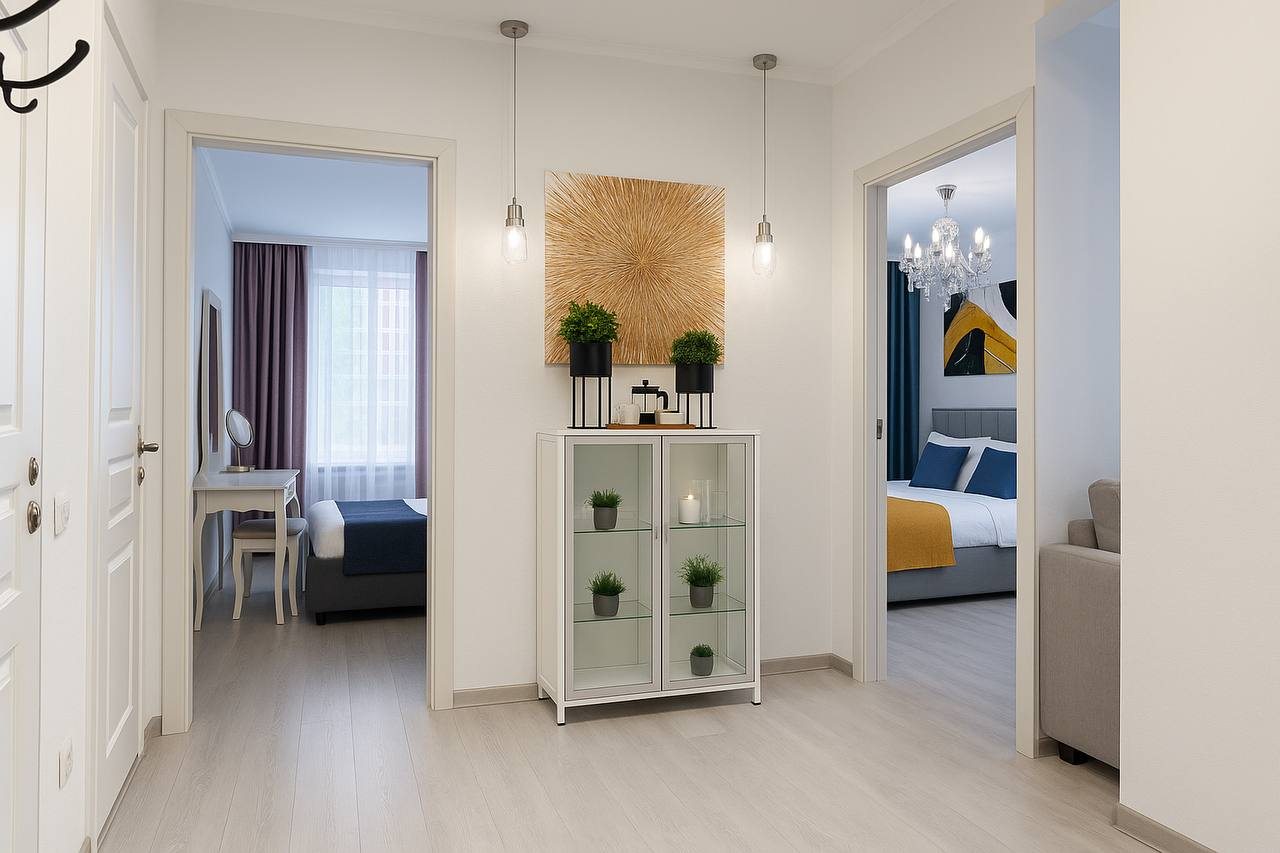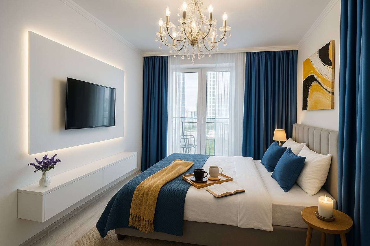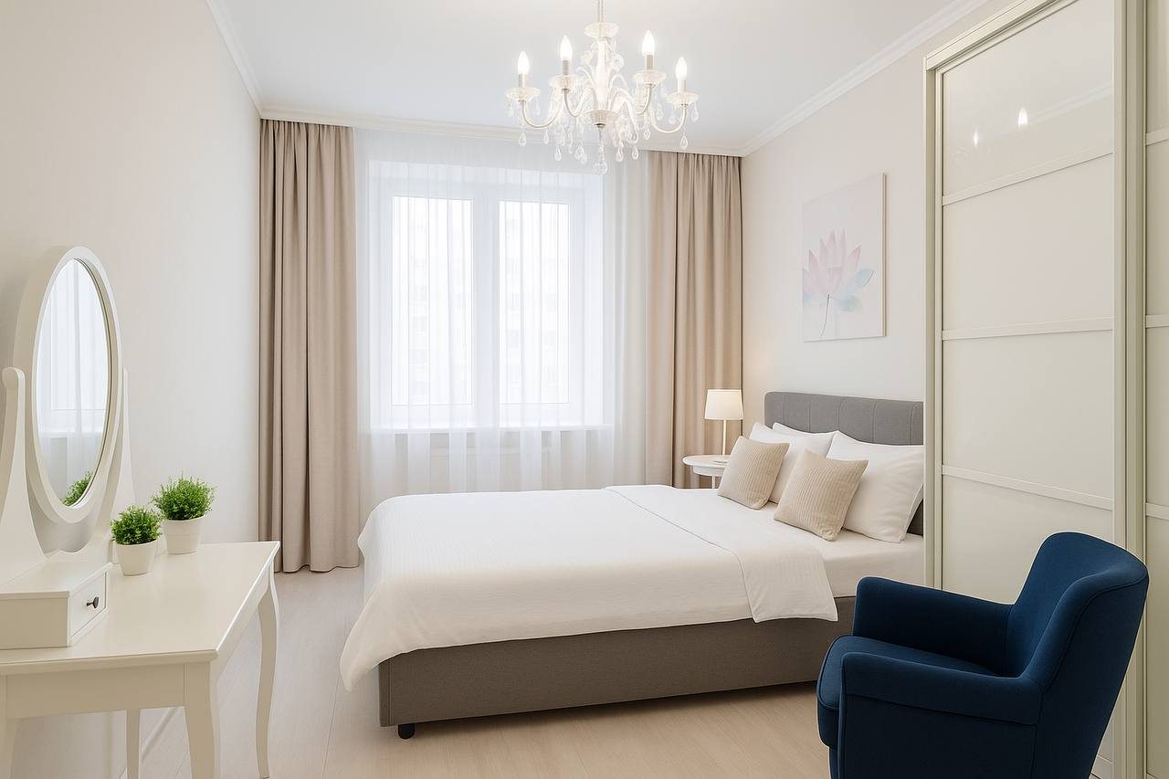 Очень понравились апартаменты и город. Расположение хорошее, рядом много всего. Видно, что интерьер квартиры продумывали, все очень стильно и красиво, очень приятно жить в новых апартаментах с хорошей мебелью и ремонтом.