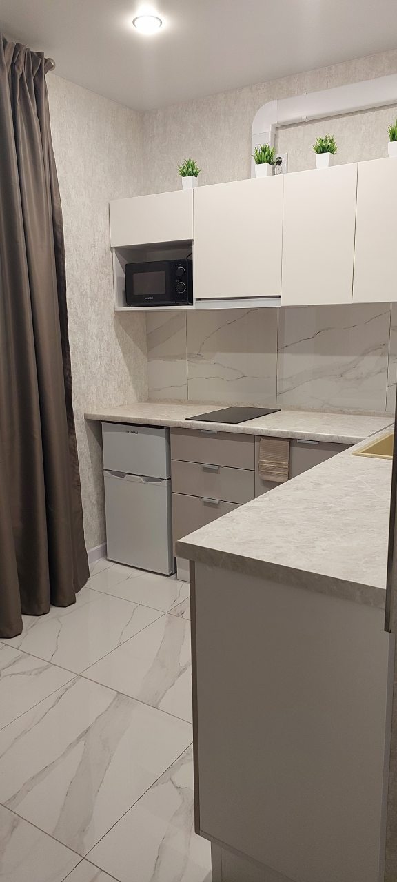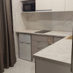Кухня укомплектована гарнитуром, обеденным столом и необходимой бытовой техникой. Пообедать можно в одном из ближайших кафе.