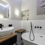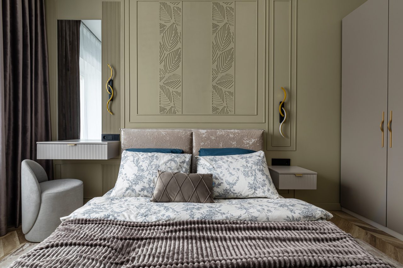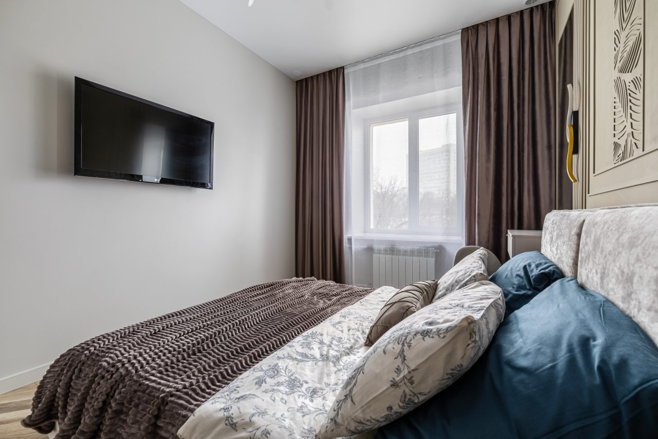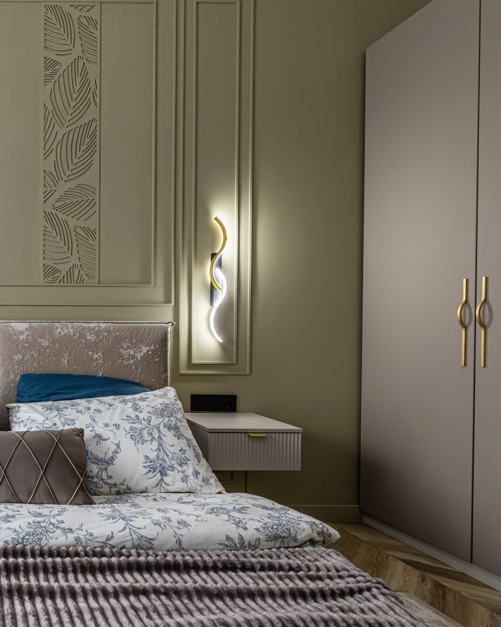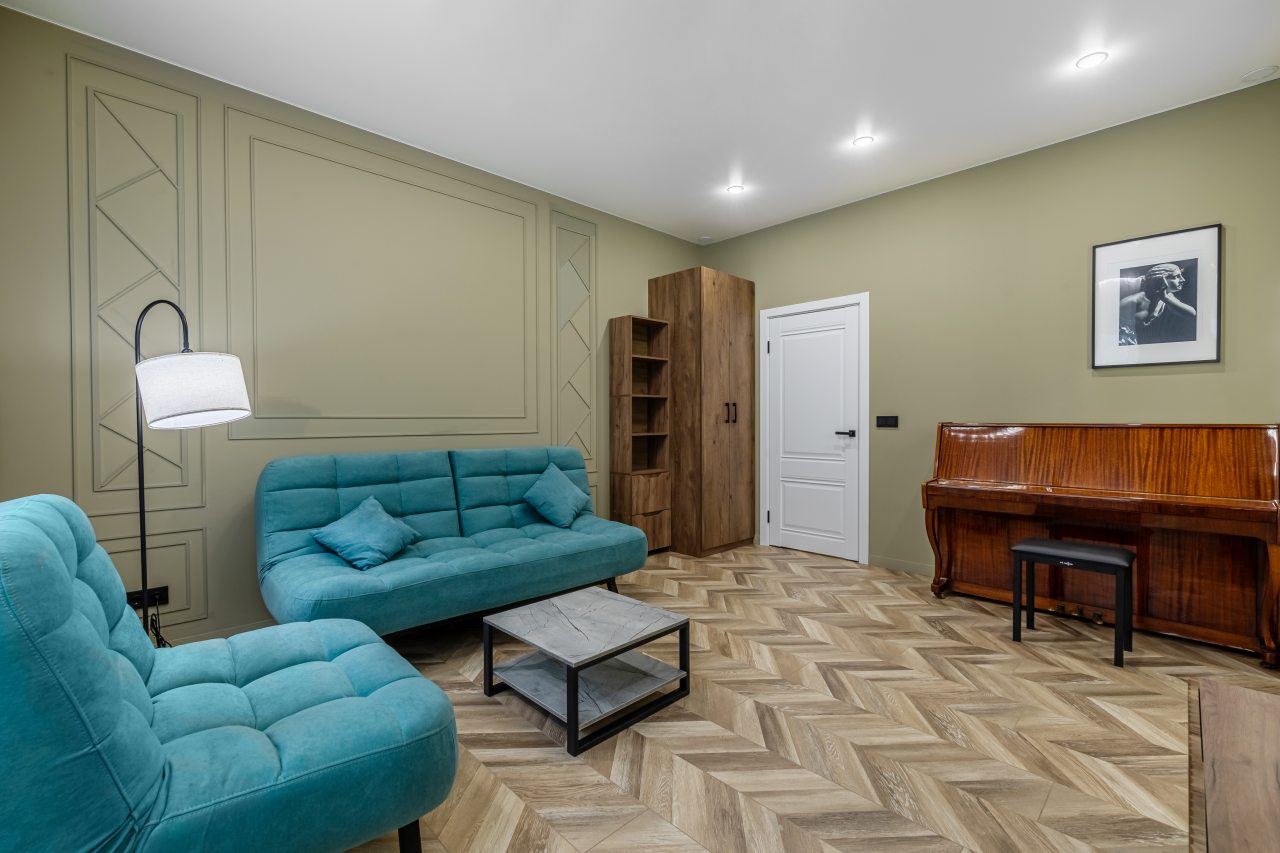 Помимо стильного и современного интерьера, внутри вас также ожидает качественная мебель и техника, в том числе двуспальная кровать с удобным матрасом, настенные светильники для уютного вечернего света, вместительные шкафы, мягкий диван и кресло в гостиной, телевизор, а также ванная комната со стиральной машиной.