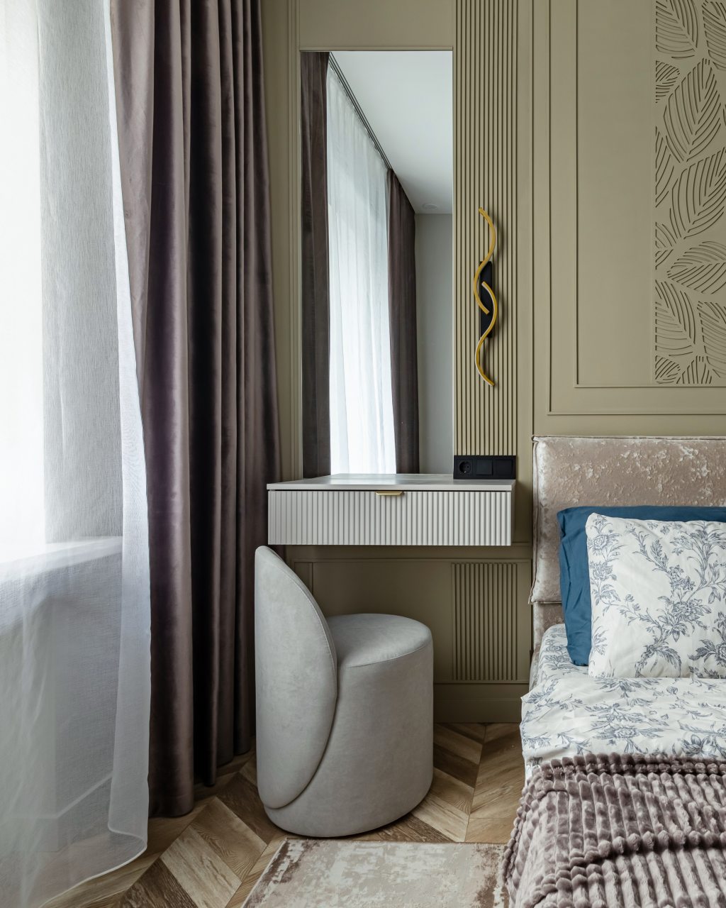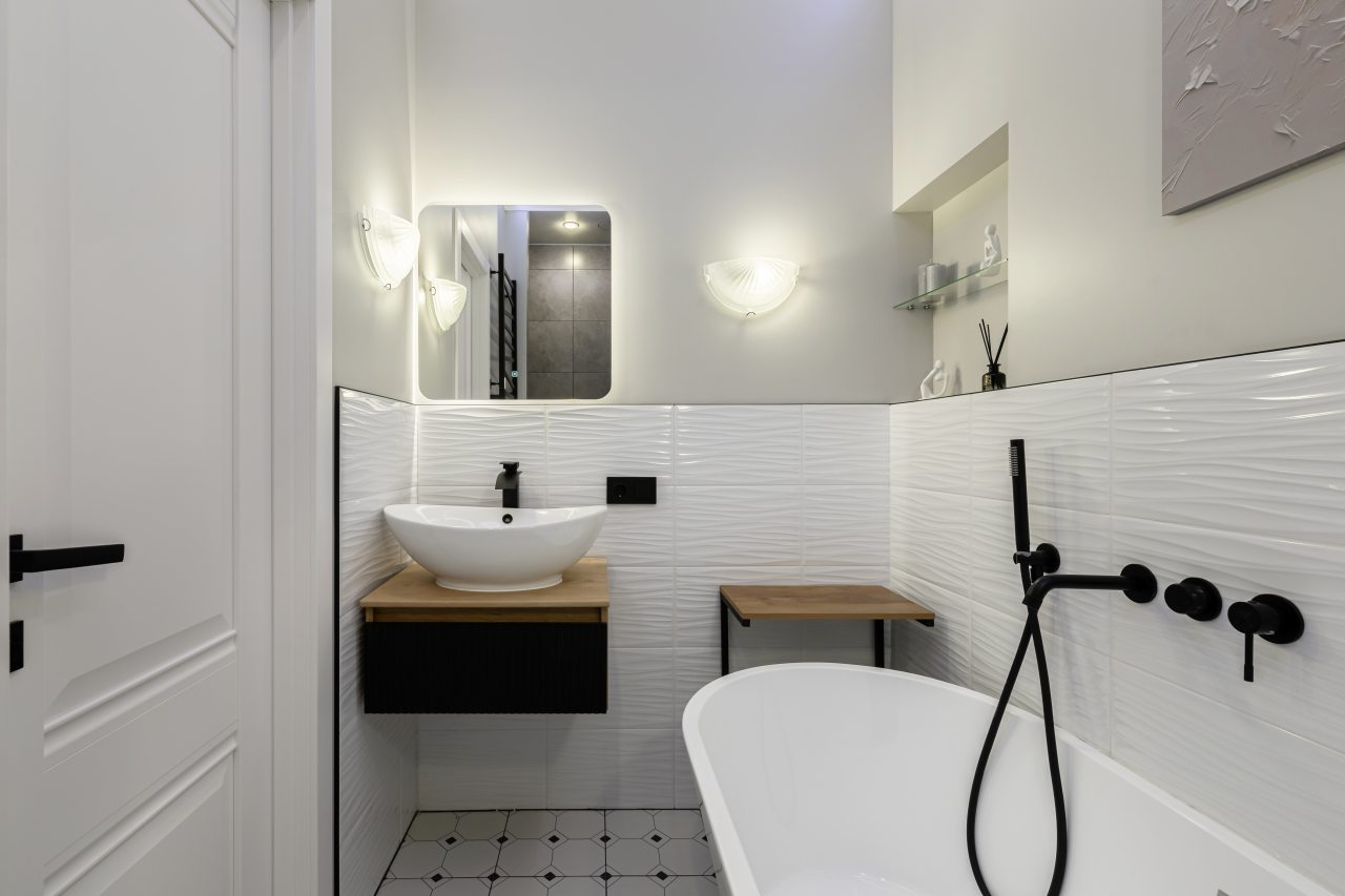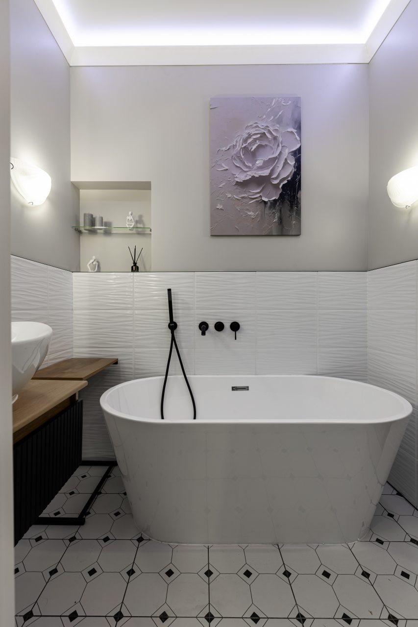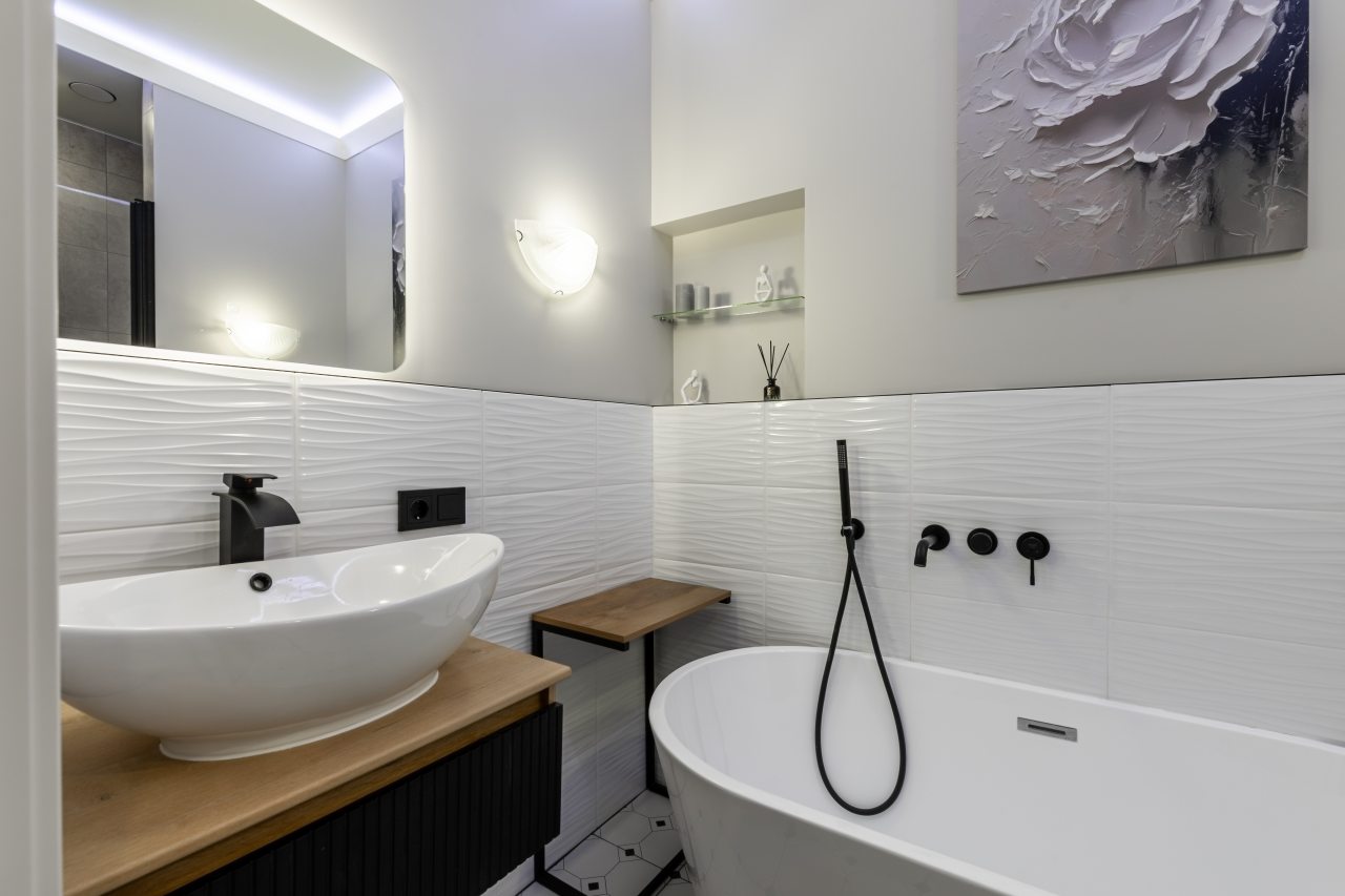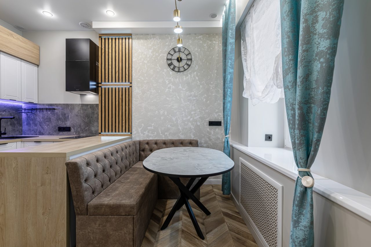 Помимо стильного и современного интерьера, внутри вас также ожидает качественная мебель и техника, в том числе двуспальная кровать с удобным матрасом, настенные светильники для уютного вечернего света, вместительные шкафы, мягкий диван и кресло в гостиной, телевизор, а также ванная комната со стиральной машиной.