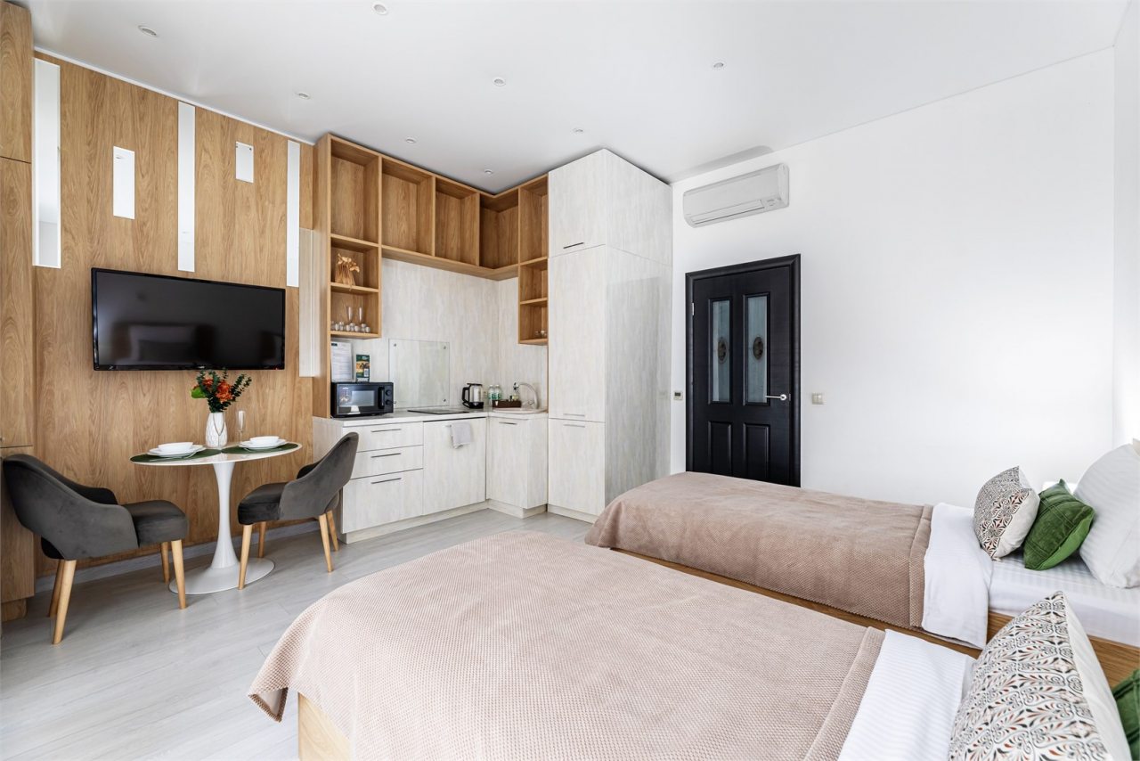 Для размещения гостей представлено множество апартаментов, вместимостью от одного до четырех гостей, что идеально как для индивидуальных путешественников, так и для семейных пар. Все варианты оснащены: удобными спальными местами, телевизором, зонами для хранения личных вещей и собственной ванной комнатой.
