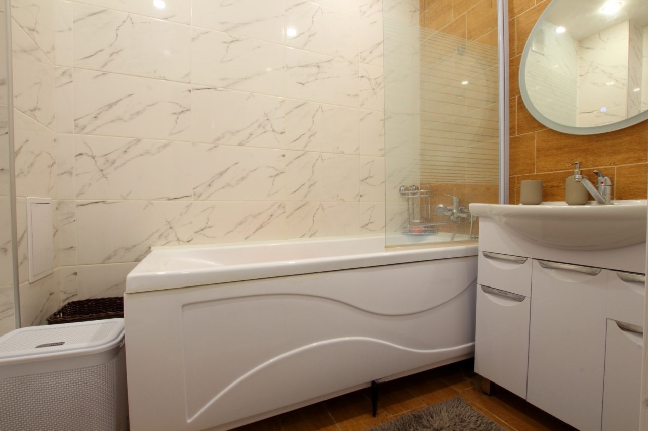 Внутри предусмотрены все основные удобства, в том числе мягкая двуспальная кровать, телевизор, кондиционер, удобный диван, вместительная гардеробная, зеркало в полный рост, полноценная ванна.