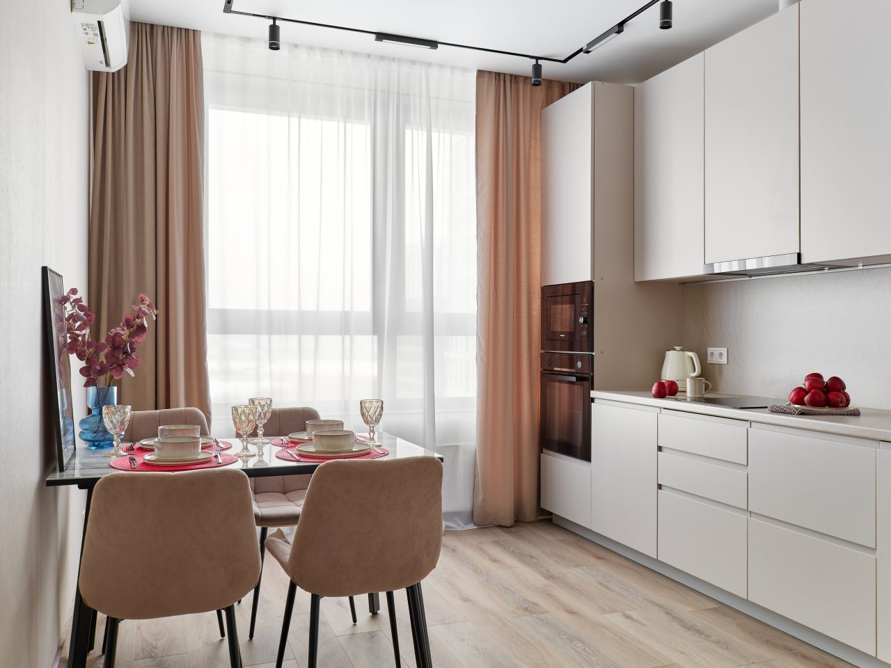 В квартире есть все, что может потребоваться во время проживания. Двуспальная кровать, раскладной диван, гладильные принадлежности, кондиционер, шкаф — то, что позволит насладиться отдыхом без ограничений. В современной ванной комнате есть средства личной гигиены, а также установлен водонагреватель. Есть телевизор, подключена сеть Wi-Fi.