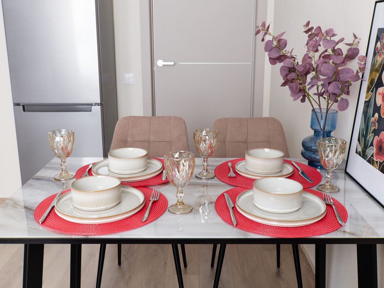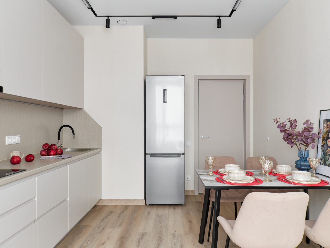 Кухонная зона предлагает инвентарь и технику, которые необходимы при самостоятельном приготовлении пищи: СВЧ-печь, электрическую плиту, чайник, посудомоечную машину, холодильник и посуду. Рядом доступны продуктовые магазины, а также разнообразные заведения общественного питания.