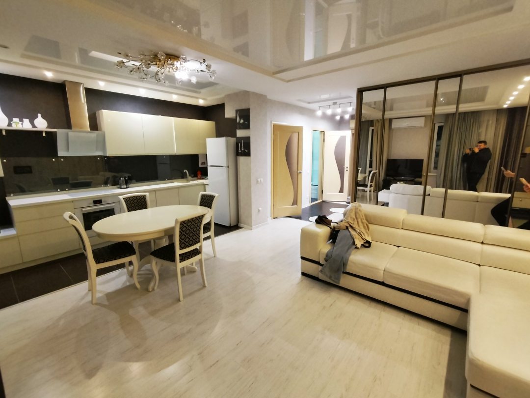 Близкое расположение к центру города, есть кафэшки, чтобы поесть, в квартире есть все необходимое: микроволновая, плита, машинка стиральная и посудомоечная. Чисто.