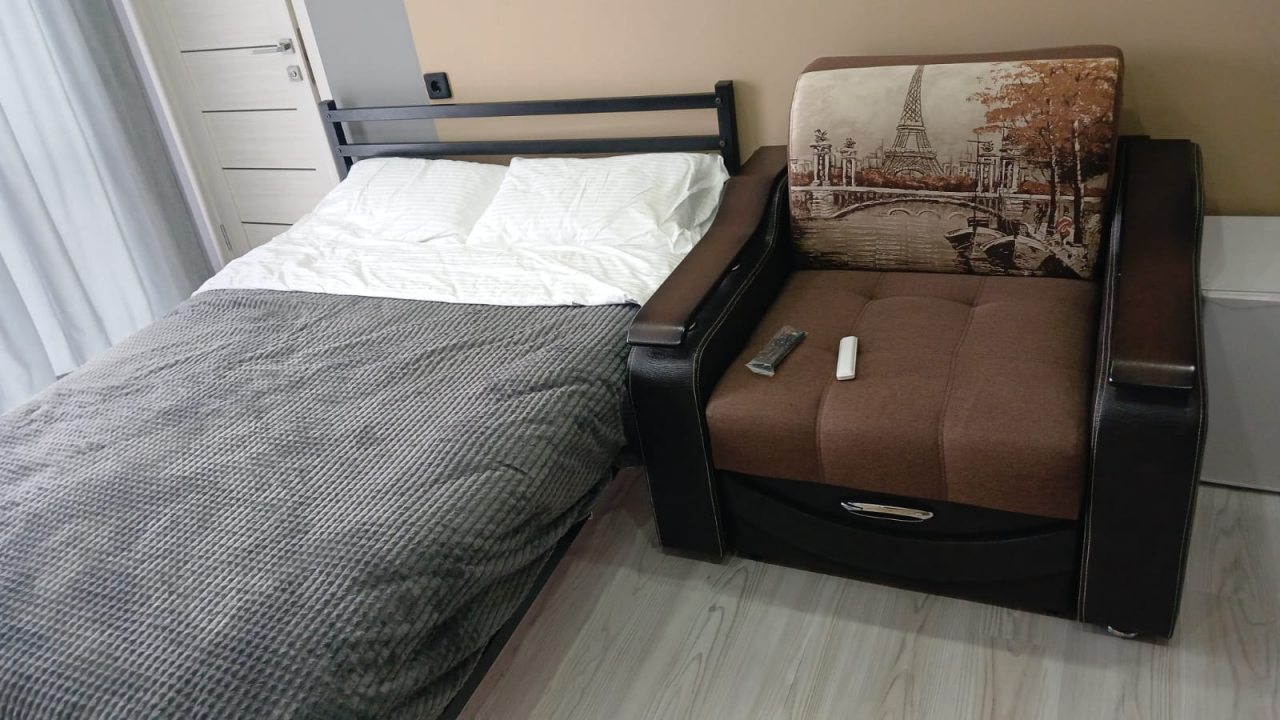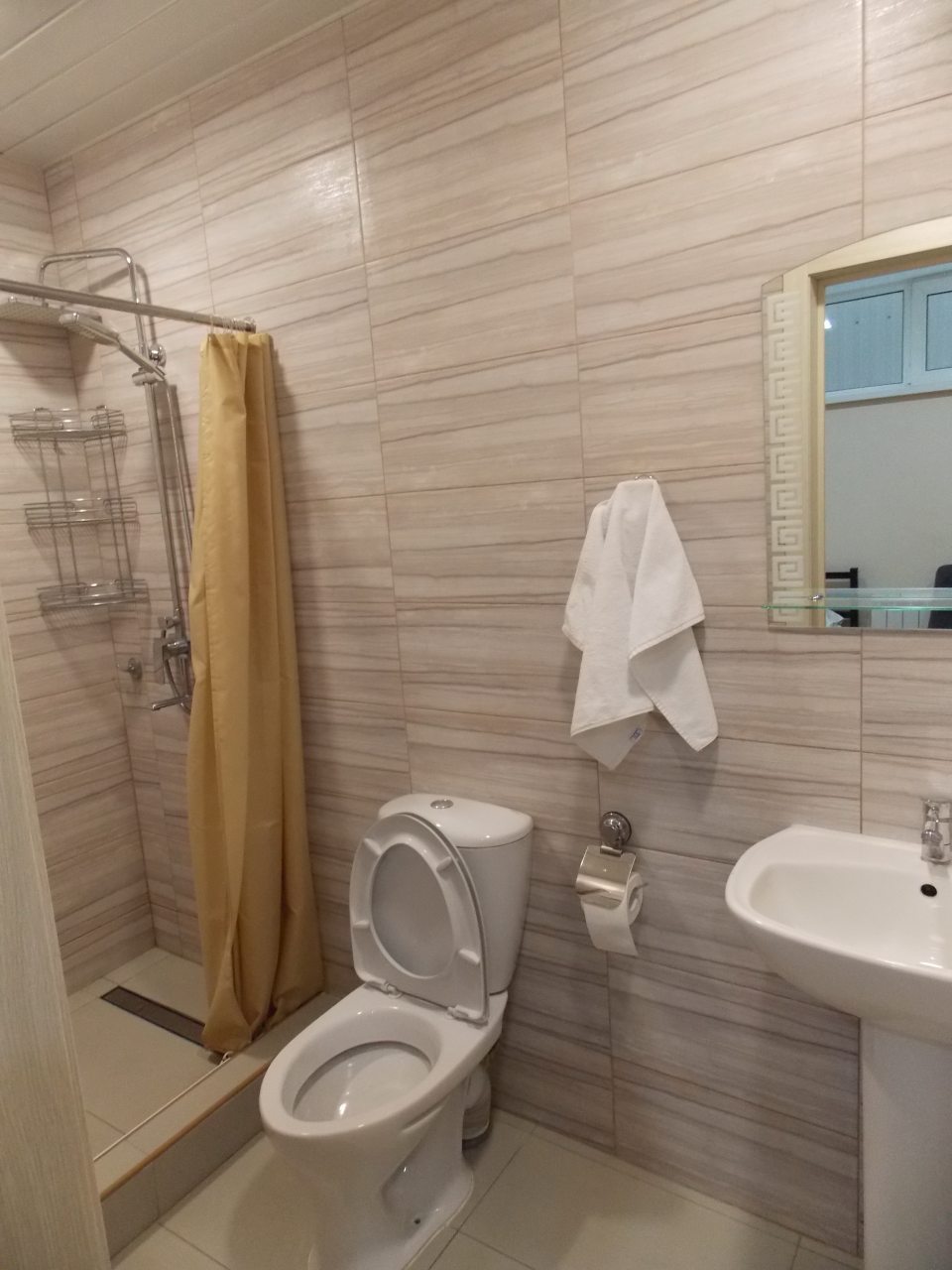 Остановились в трехместном номере. Одна двухспальная кровать и кресло раскладное.Номер очень понравился. Всё чисто, ремонт хороший, всё со вкусом.Постельное бельё и полотенце входят в стоимость. Самое главное собственный душ и туалет. На этаже есть кулер с водой.