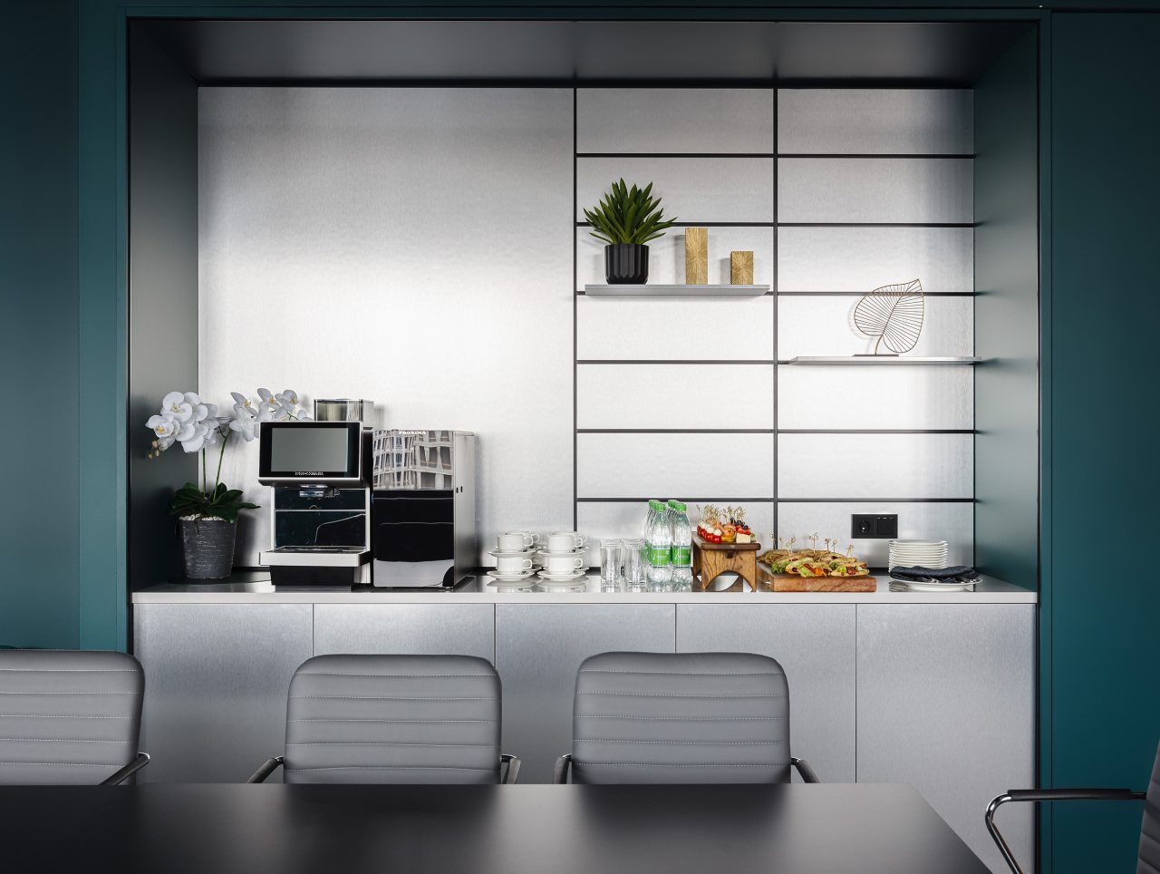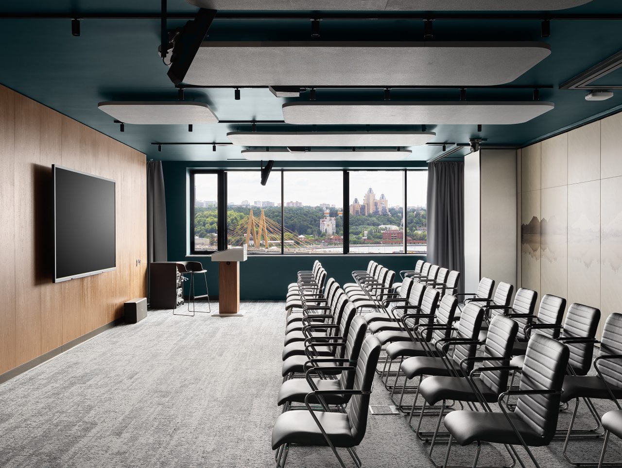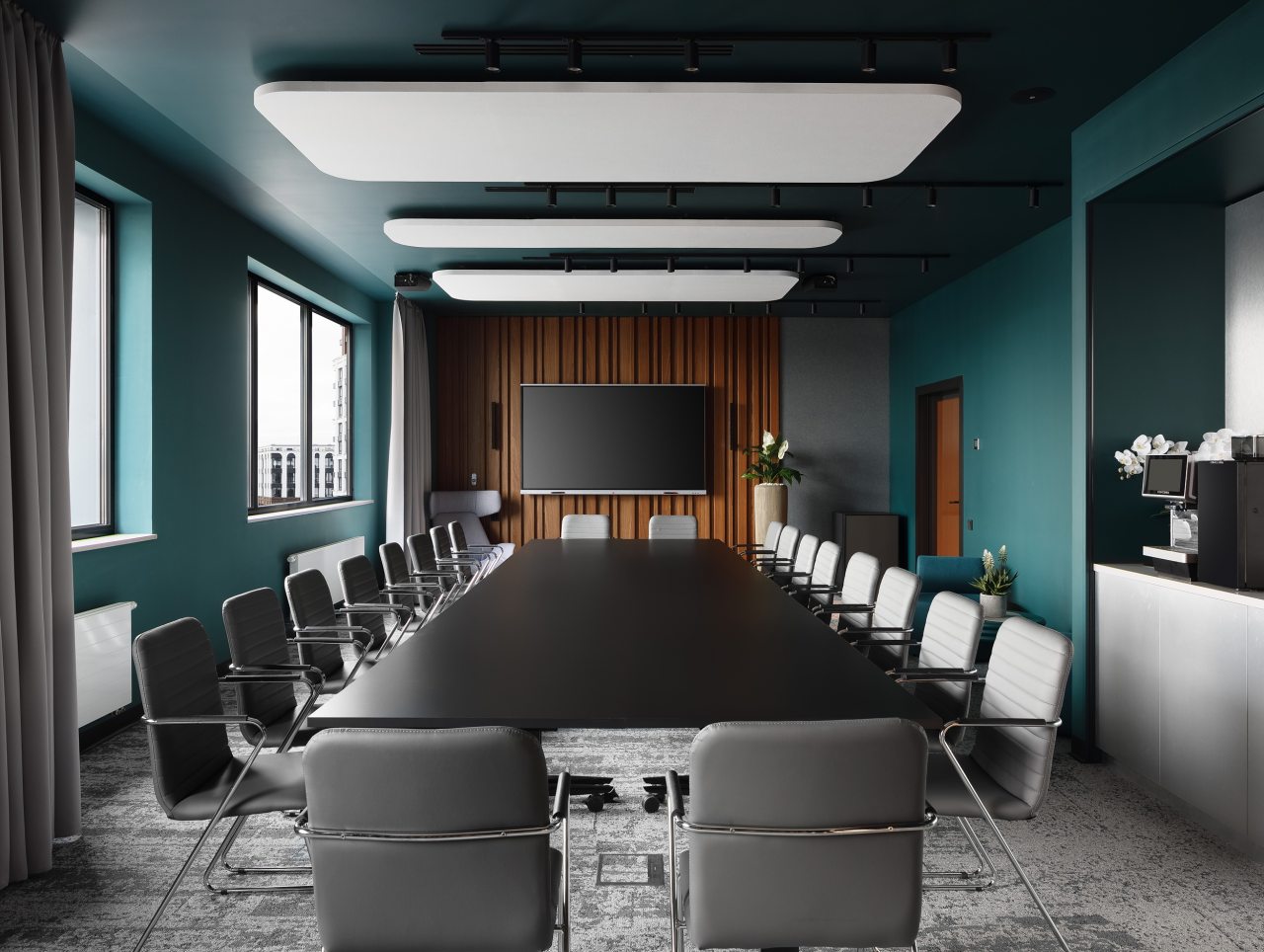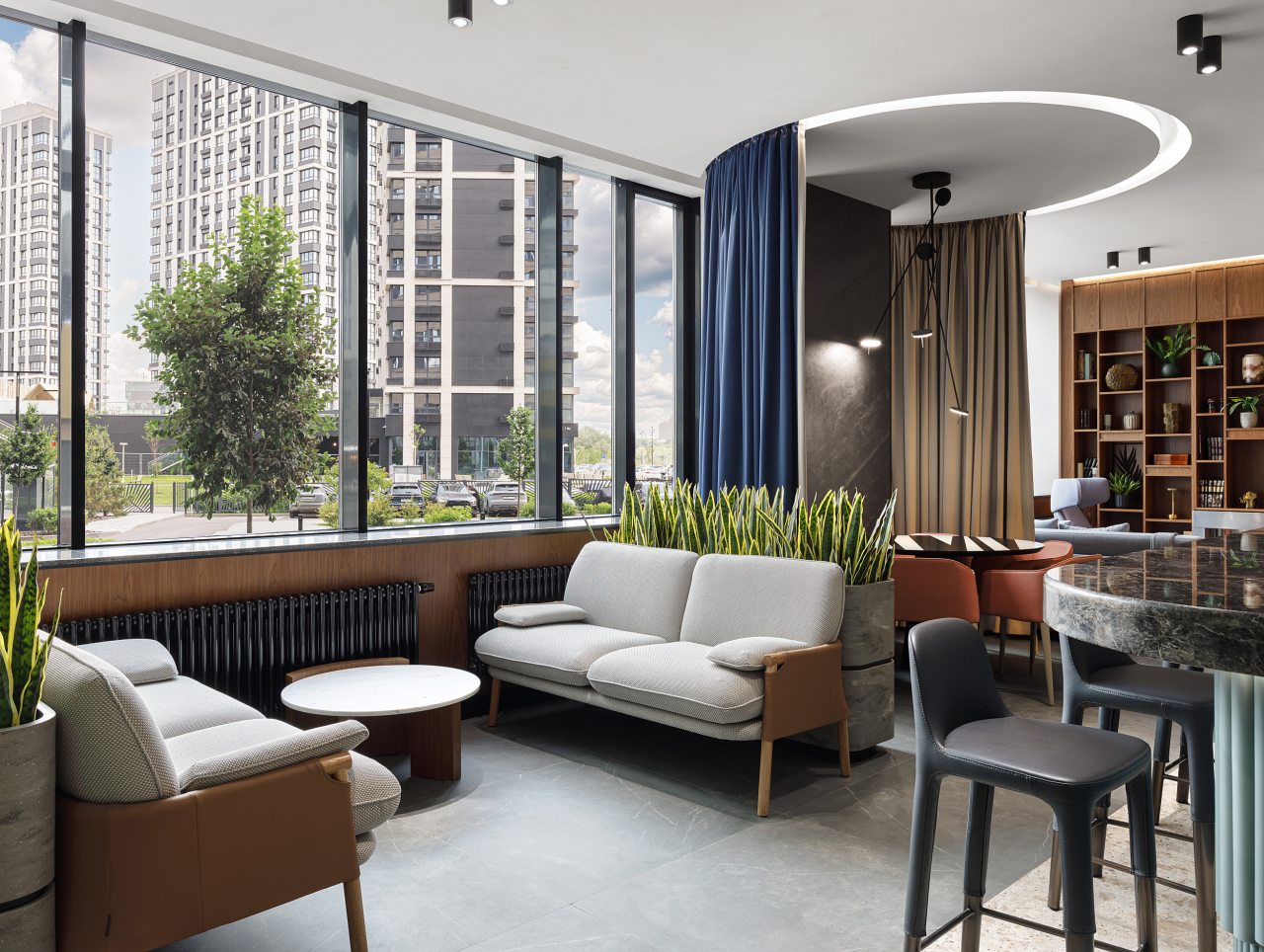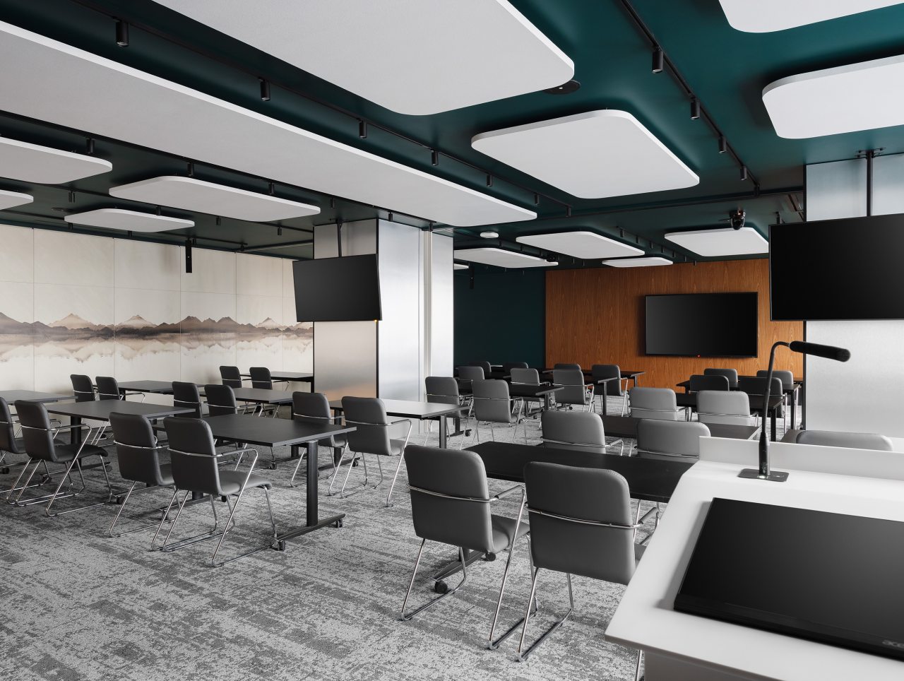 Дополнительно предусмотрены коворкинг-пространства, переговорные и конференц-залы, где есть необходимая мебель и техника для деловых мероприятий.