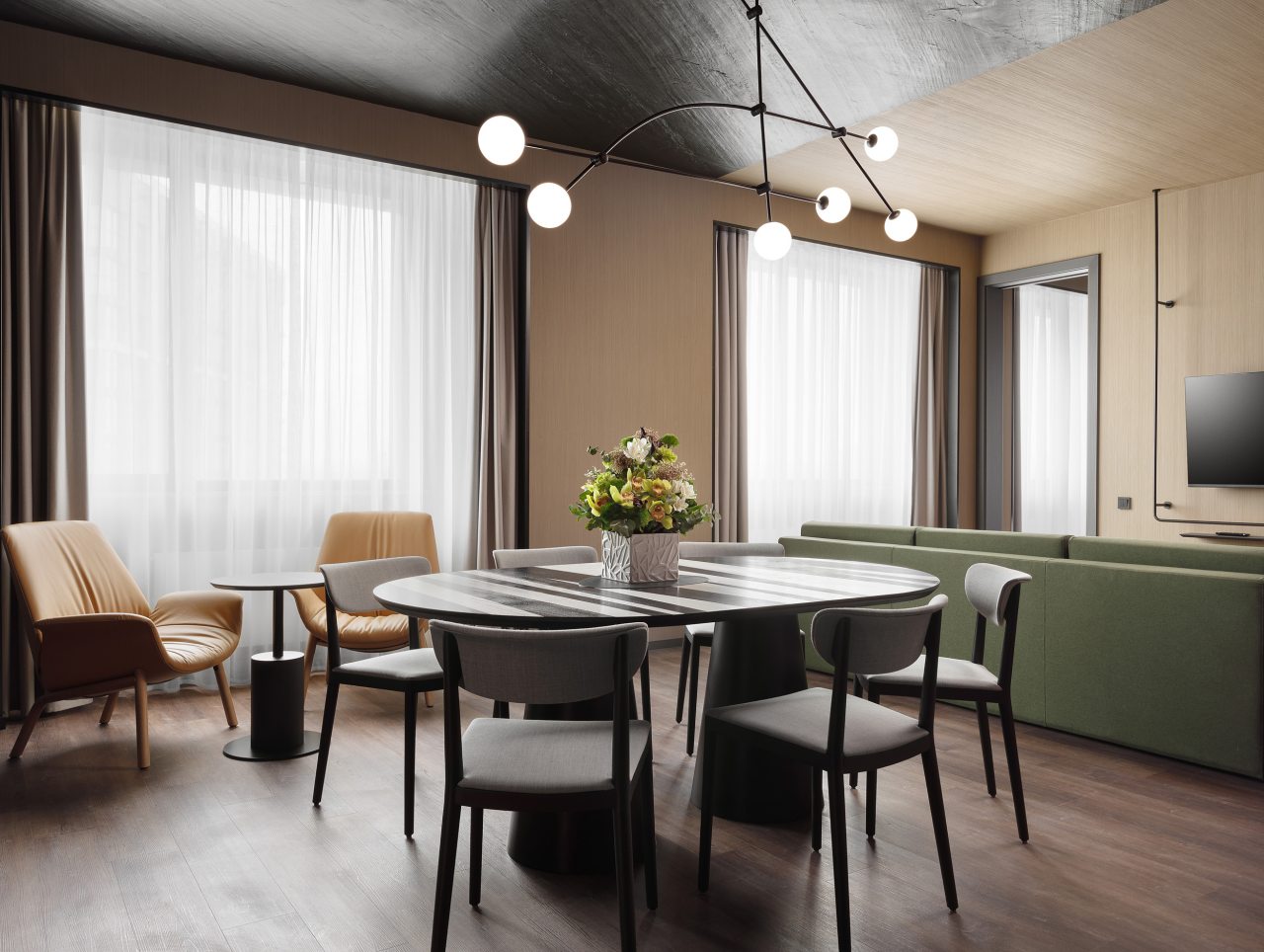 Для выбора гостей представлено 173 номера различных категорий. В каждом имеется все, что требуется для качественного и комфортного проживания, включая стильный интерьер, кровать с удобным матрасом, различные сценарии освещения, индивидуальный санузел с гигиеническими принадлежностями и полотенцами. В зависимости от категории, может быть душ или ванна.