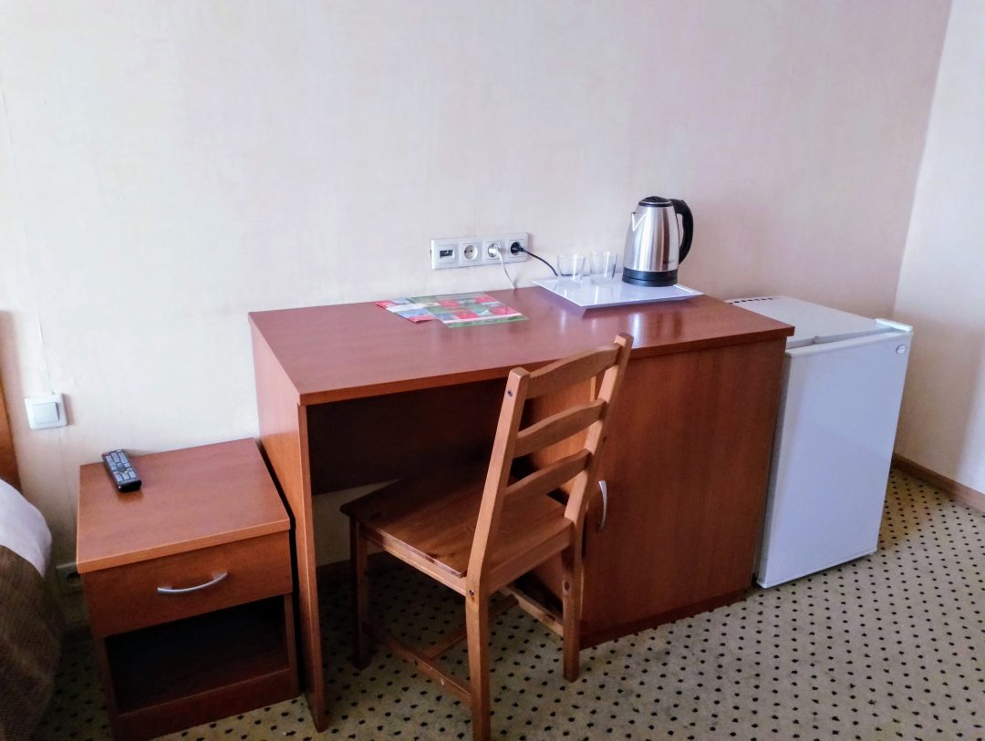 В номере был сломан чайник, купила новый и остааила там для других гостей. Нлмер 502-2