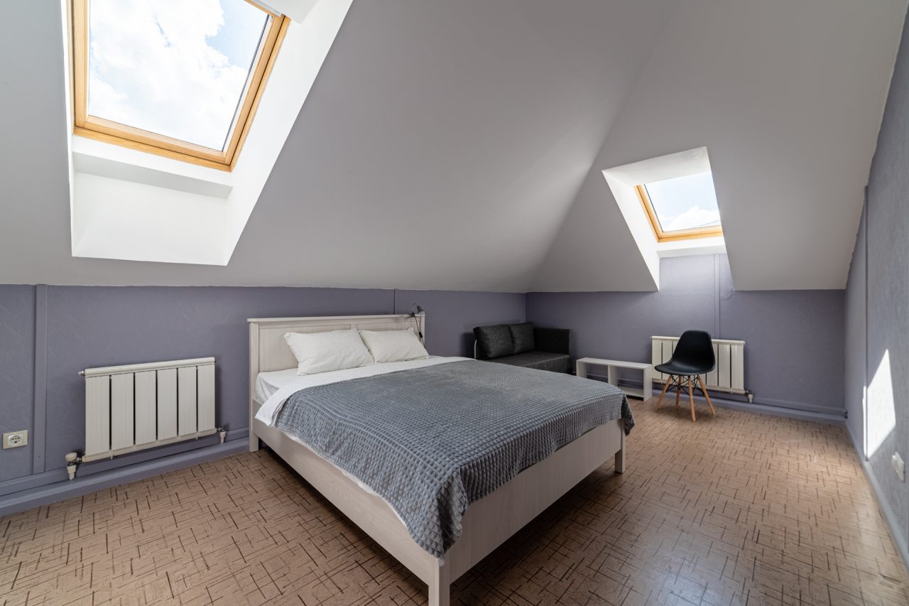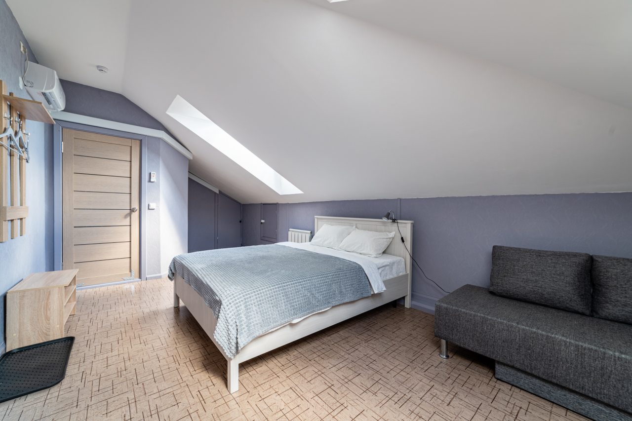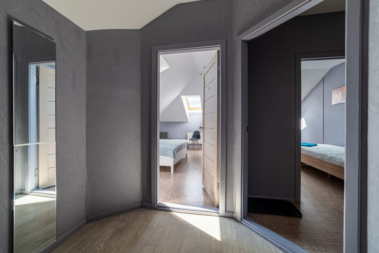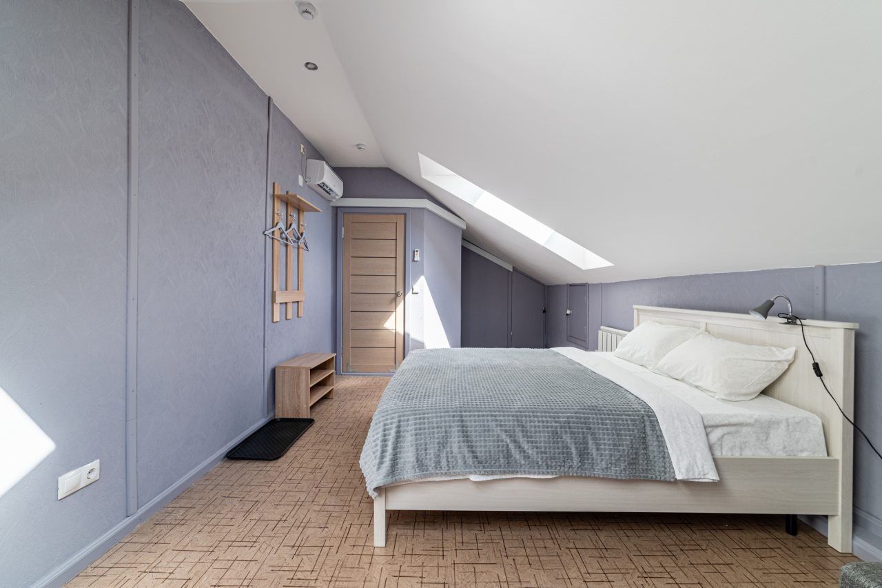 Из недостатков: если кому-то критично - крутая деревянная лестница в мансарду на третьем этаже. Окно в мансарде открывается, если встать на табуретку. Мне было нормально