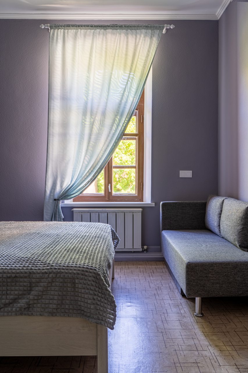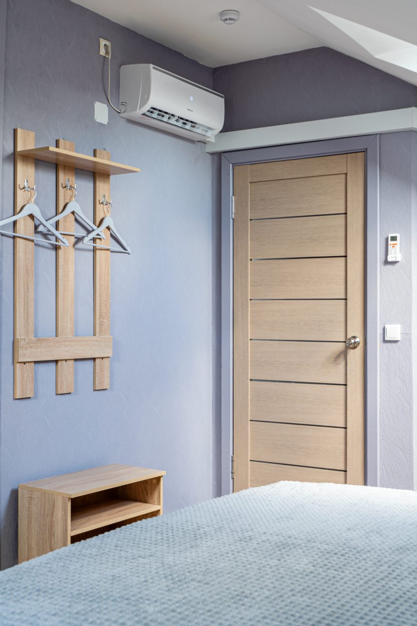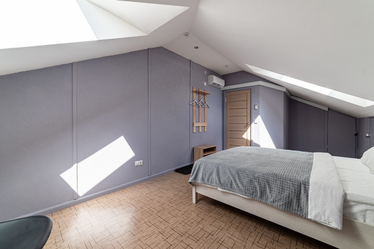 Подготовлены девять номеров вместимостью от одного до четырех человек. Они выполнены в современном стиле и укомплектованы необходимой мебелью и техникой для комфортного времяпровождения.