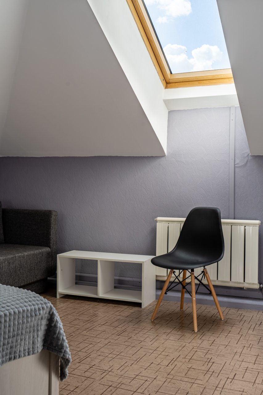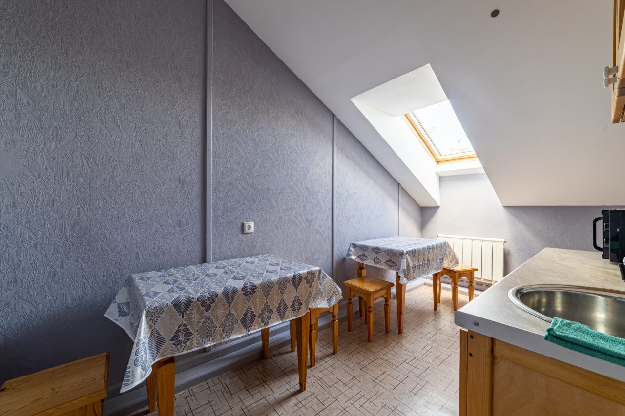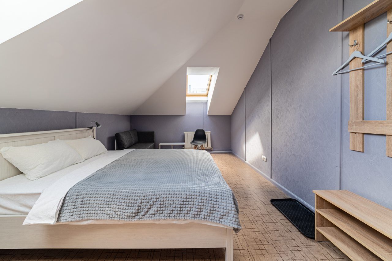 Подготовлены девять номеров вместимостью от одного до четырех человек. Они выполнены в современном стиле и укомплектованы необходимой мебелью и техникой для комфортного времяпровождения.