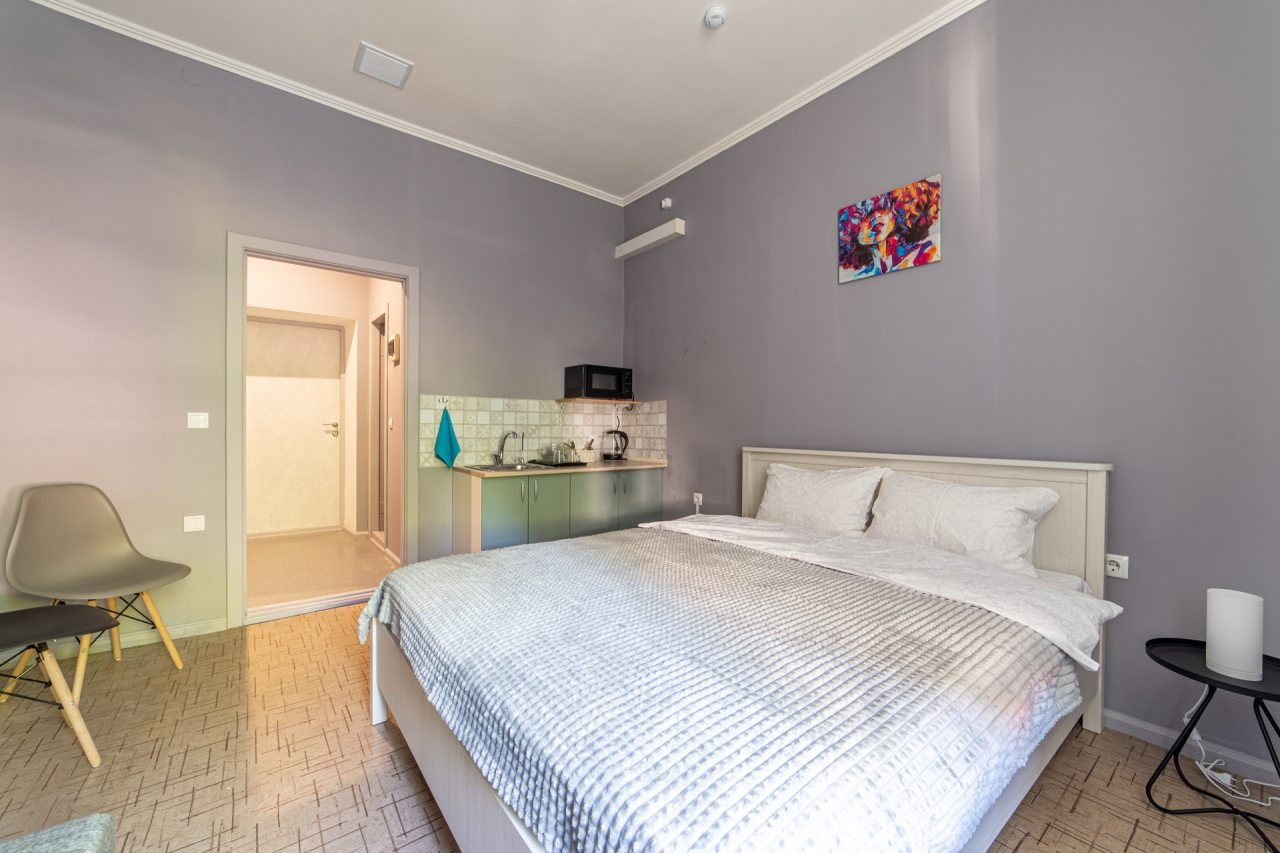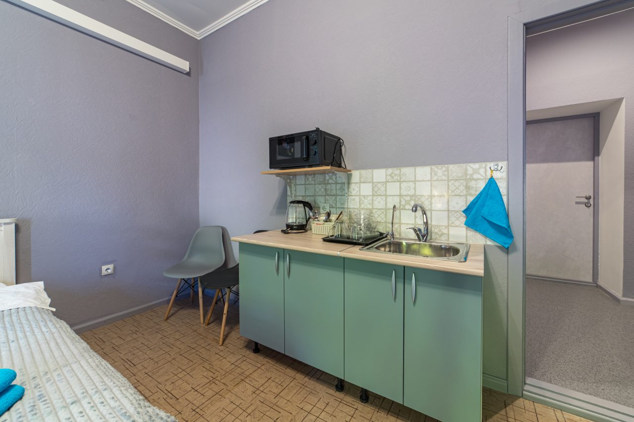 Кухонная зона укомплектована бытовыми приборами: электрочайник, микроволновая печь, холодильник, а также набором посуды и столовых приборов. Неподалеку работают столовые, рестораны и кафе, где можно как перекусить, так и сытно пообедать.