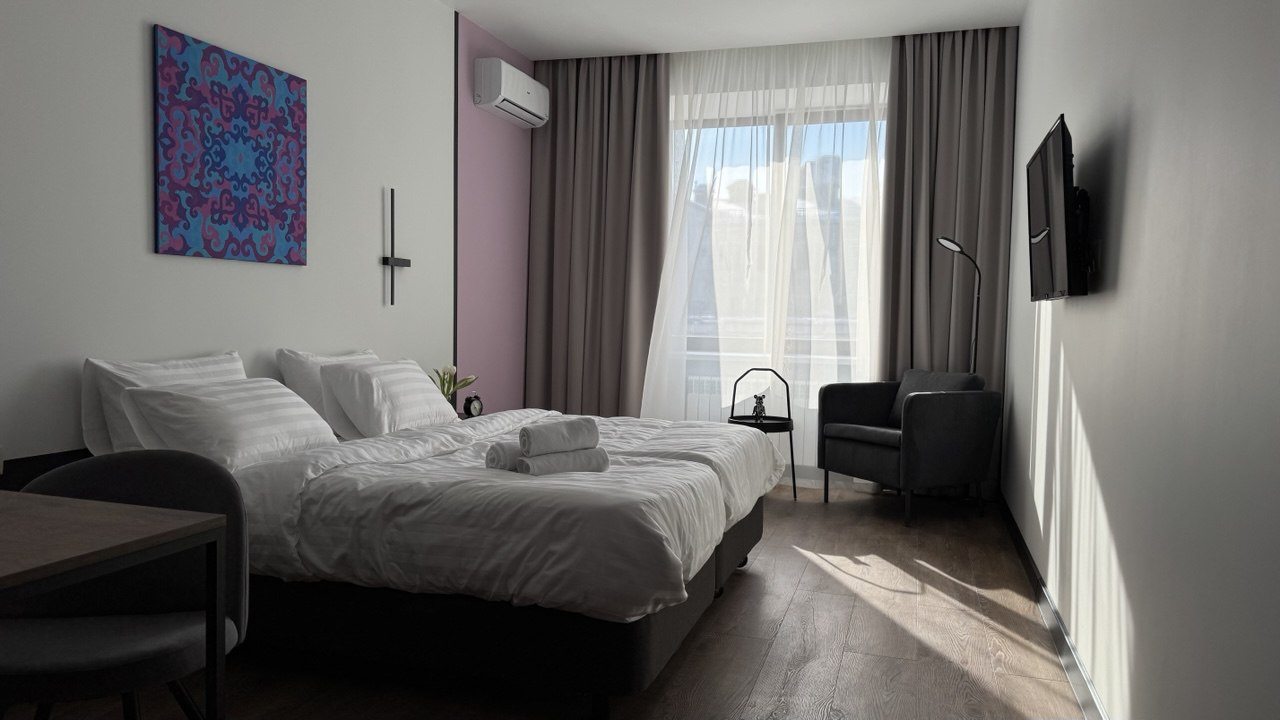 Потрясающее расположение отеля! Рядом есть большое количество мест, где можно прогуляться и вкусно поесть. Что касается номера, то и здесь нас всё устроило. Чистота, порядок, комфорт! Персонал вежливый и гостеприимный! Остались всем довольны. Рекомендуем!
