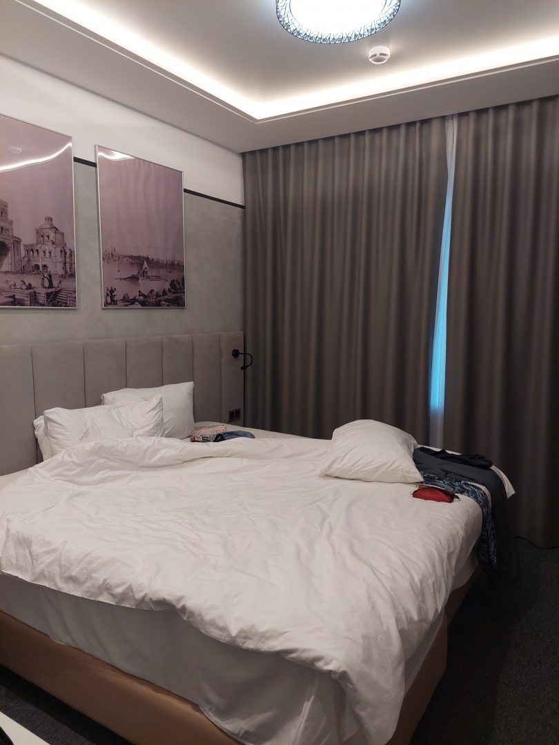 Номер хороший, для двоих просто отличный. Все чисто, современно, чай, воду пополняют каждый день.