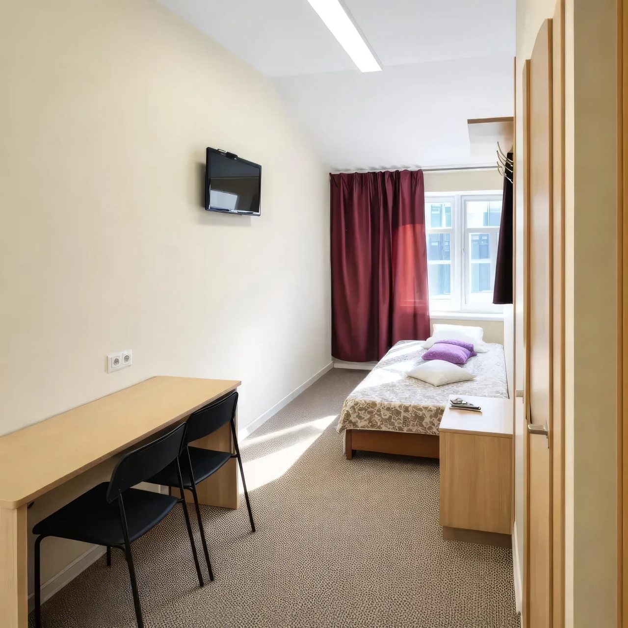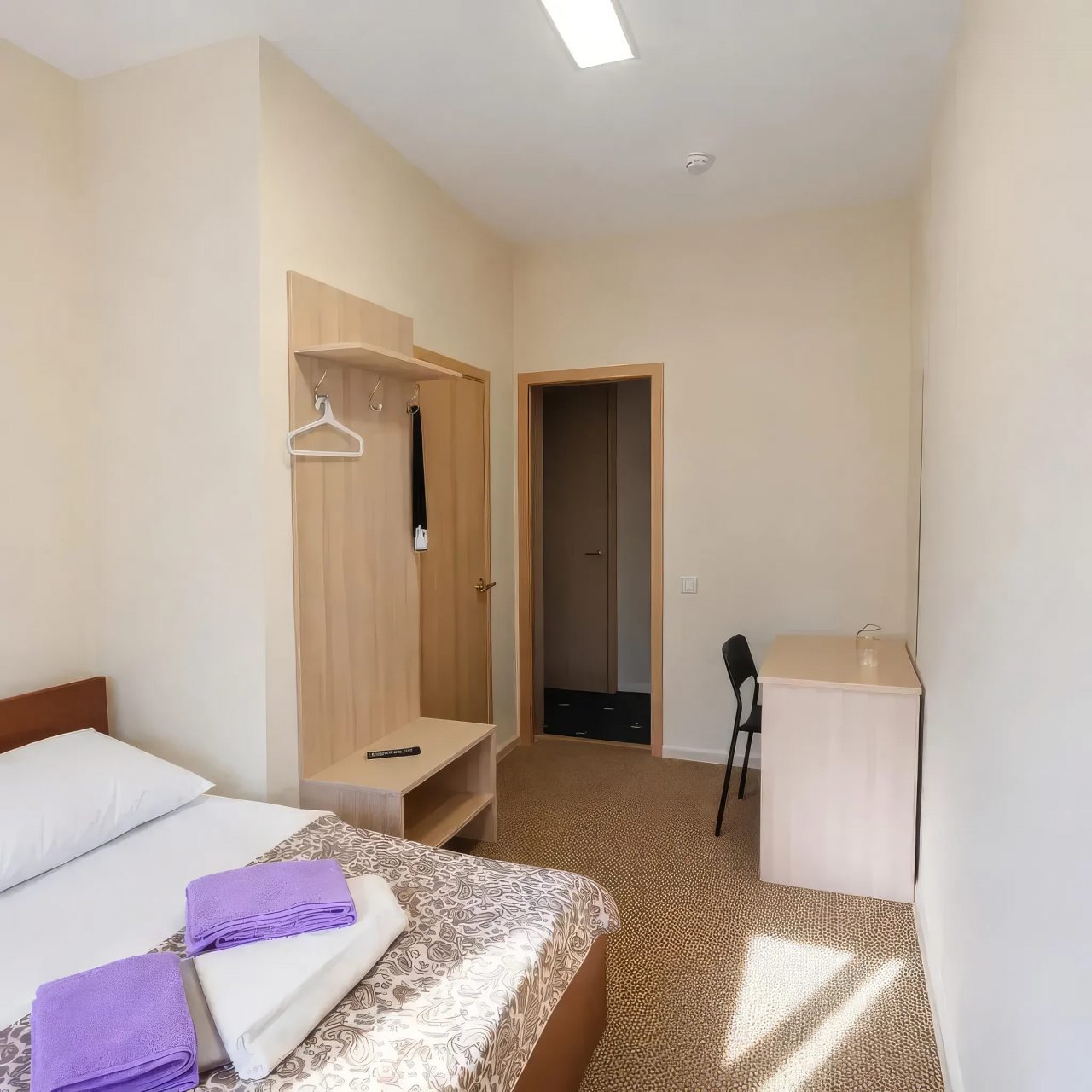 Вежливый персонал. Приехали поздно в 11 вечера заселили спокойно и быстро. В зоне питания есть чайник, титан, микроволновка, тостер. Также имеется кафе и можно попросить приготовить кофе. Хорошее расположение, недалеко театр Камала, Баумана.