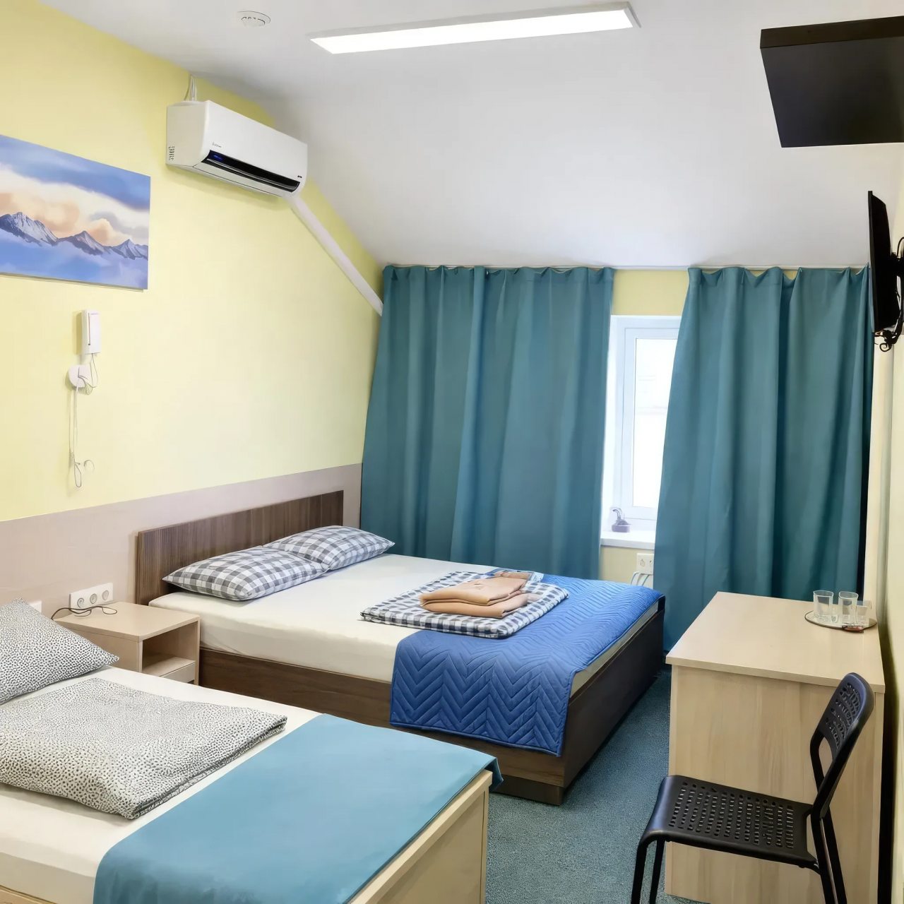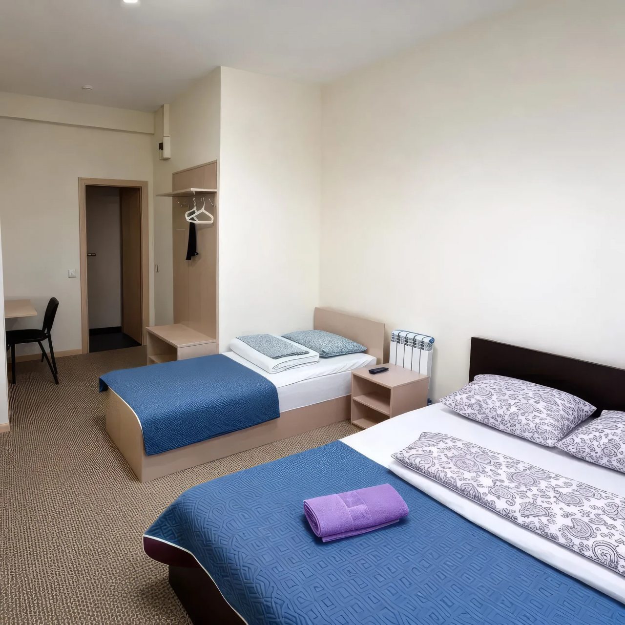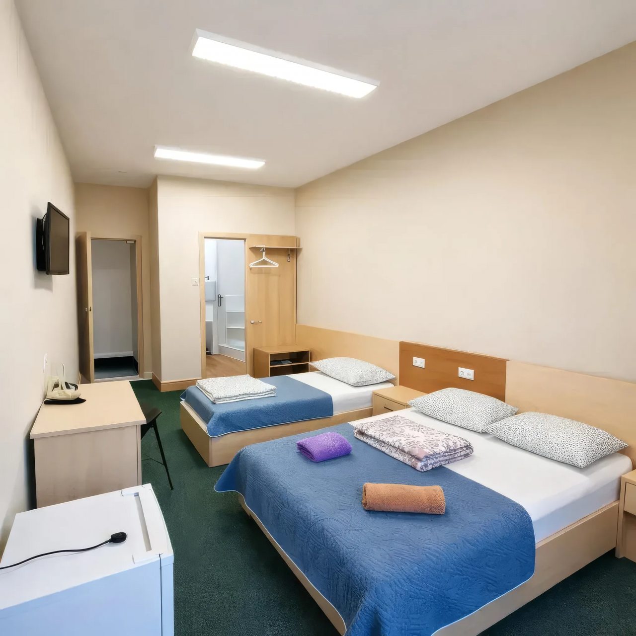 Номерной фонд представлен категориями стандарт, различных по числу мест и стоимости. Имеются комфортабельная мебель и вся необходимая гостям техника, из удобств предусмотрена собственная ванная комната.