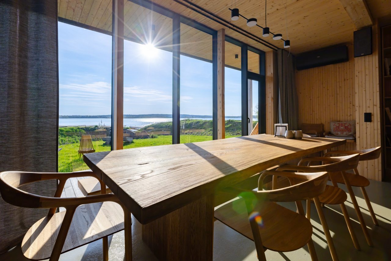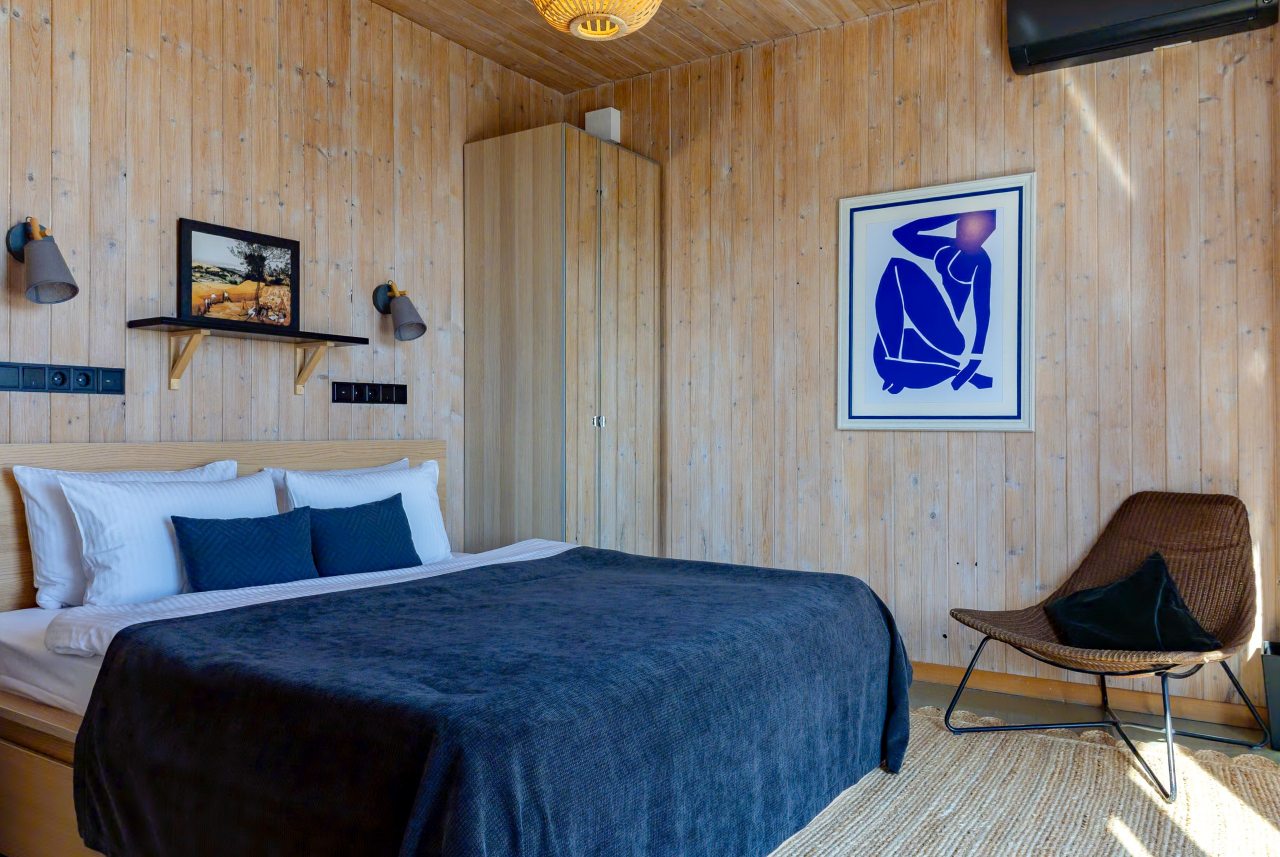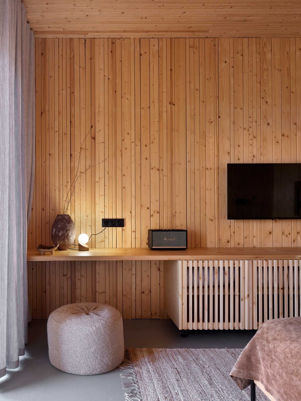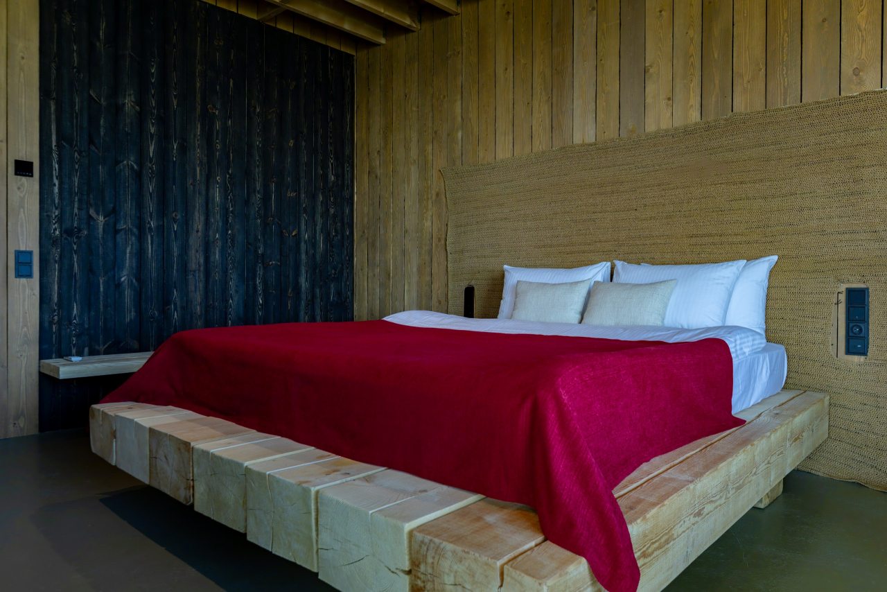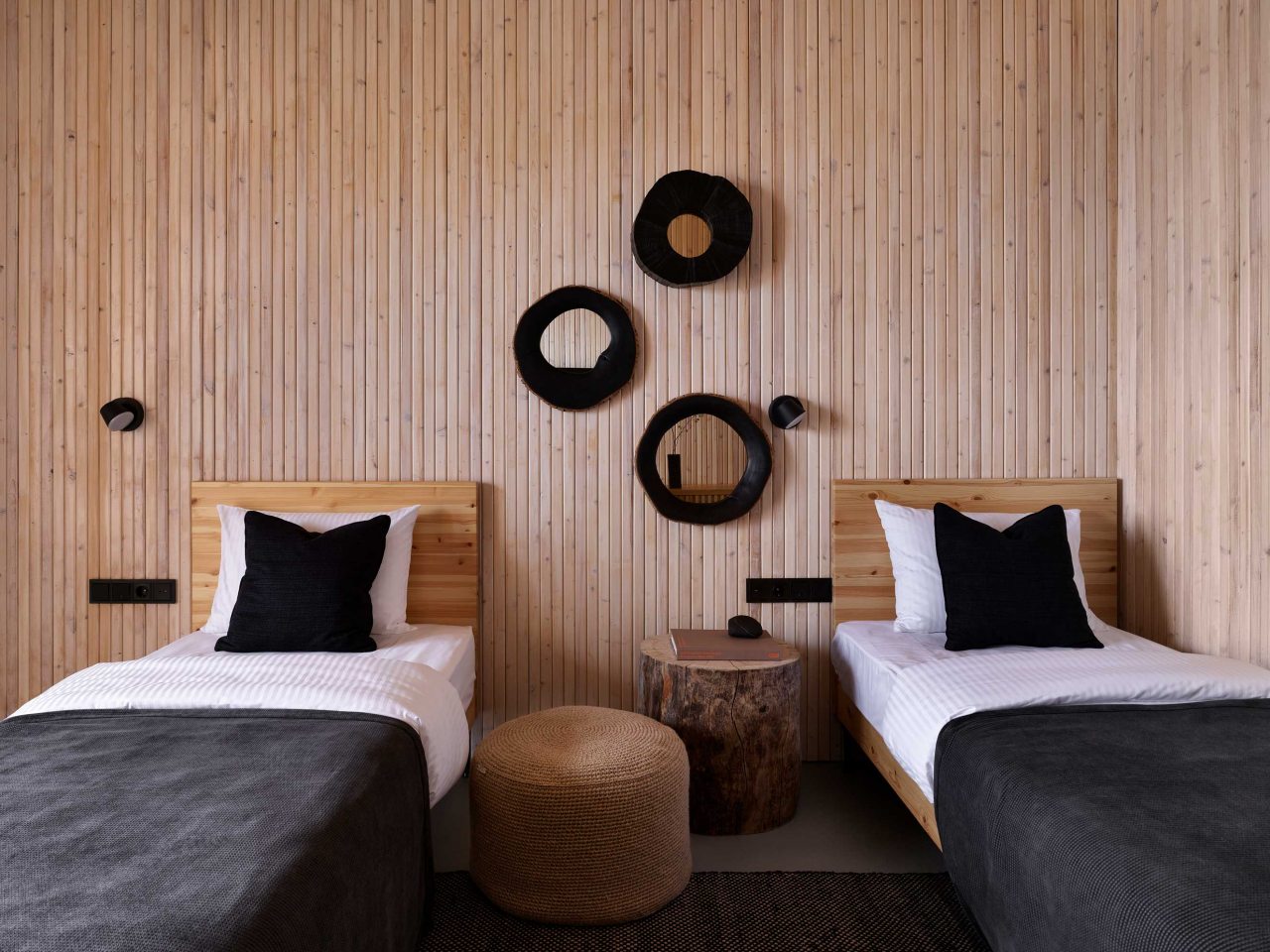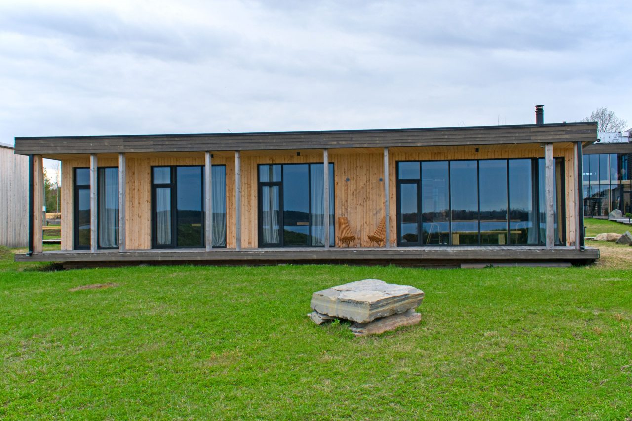 Гости могут расположиться в одном из 13 номеров или снять один из 4 гостевых домов. Каждый вариант размещения отличается стильным интерьером и современными удобствами: ванная комната с набором полотенец и косметики, телевизор со Смарт-ТВ и Wi-Fi, красивый вид на озеро или лес с выходом на террасу.