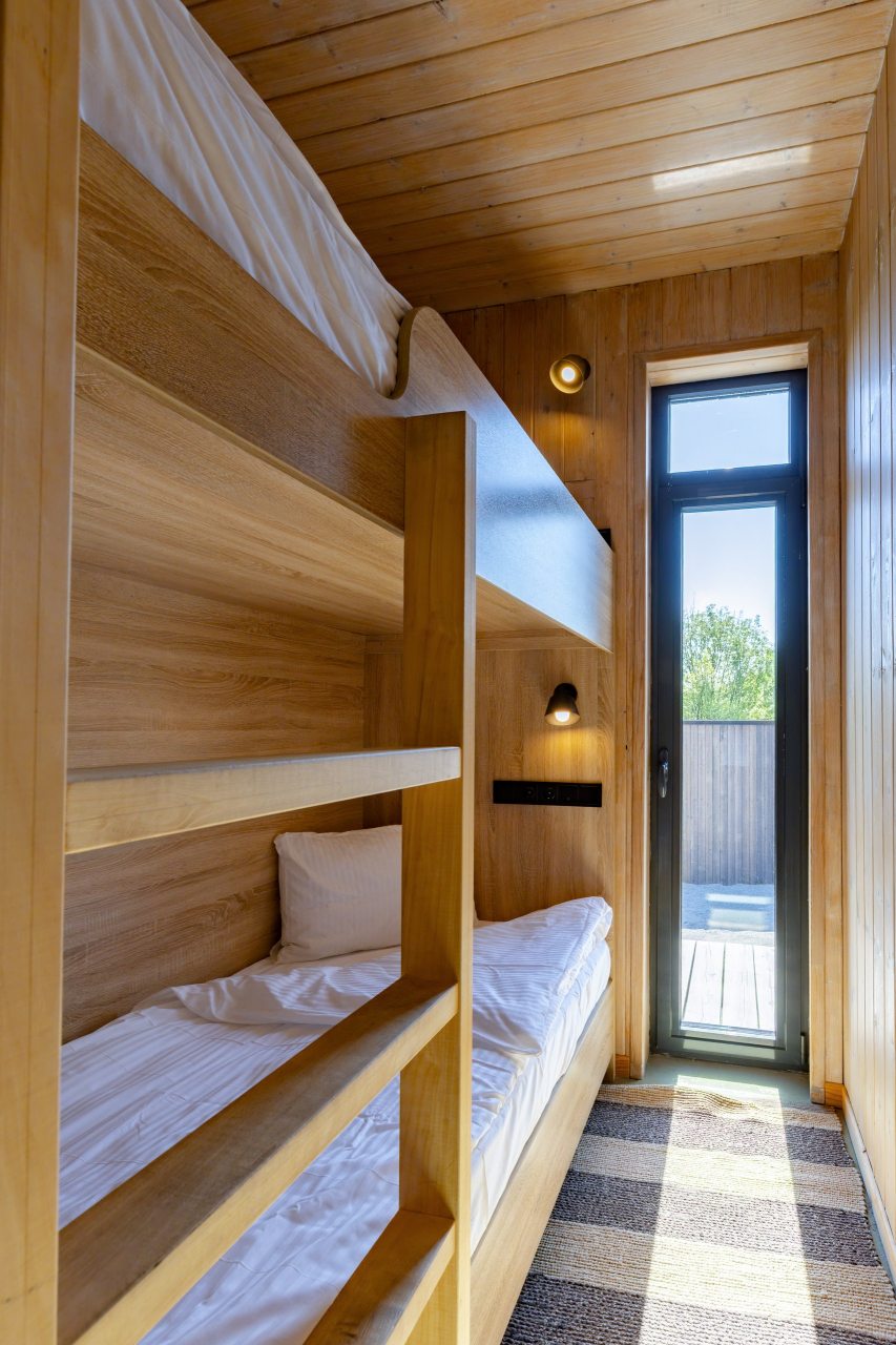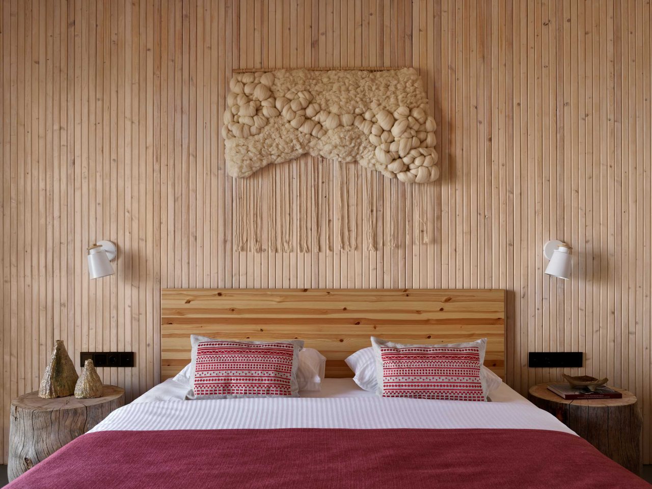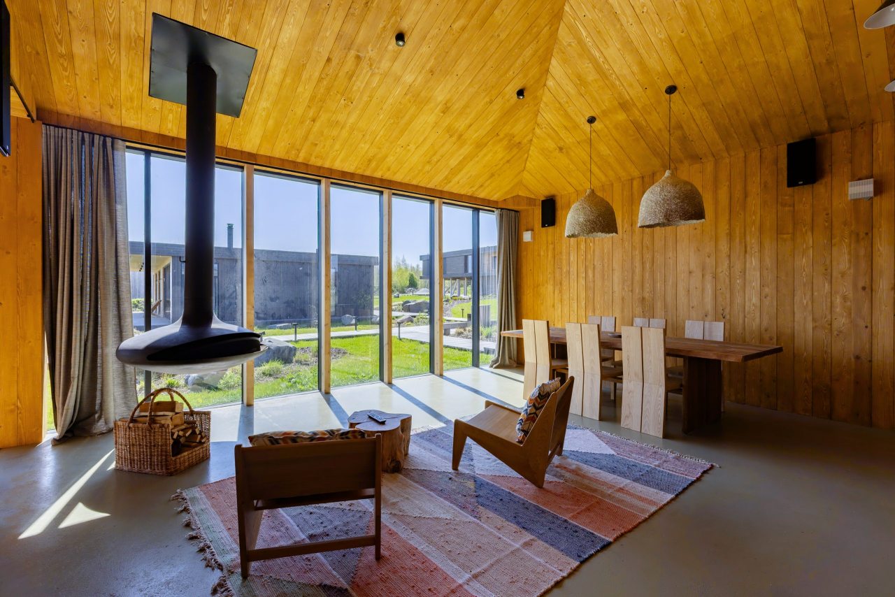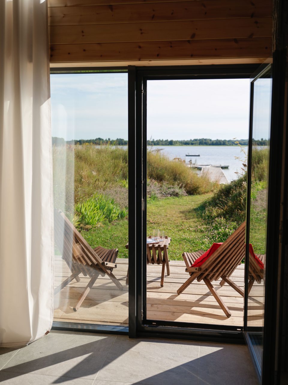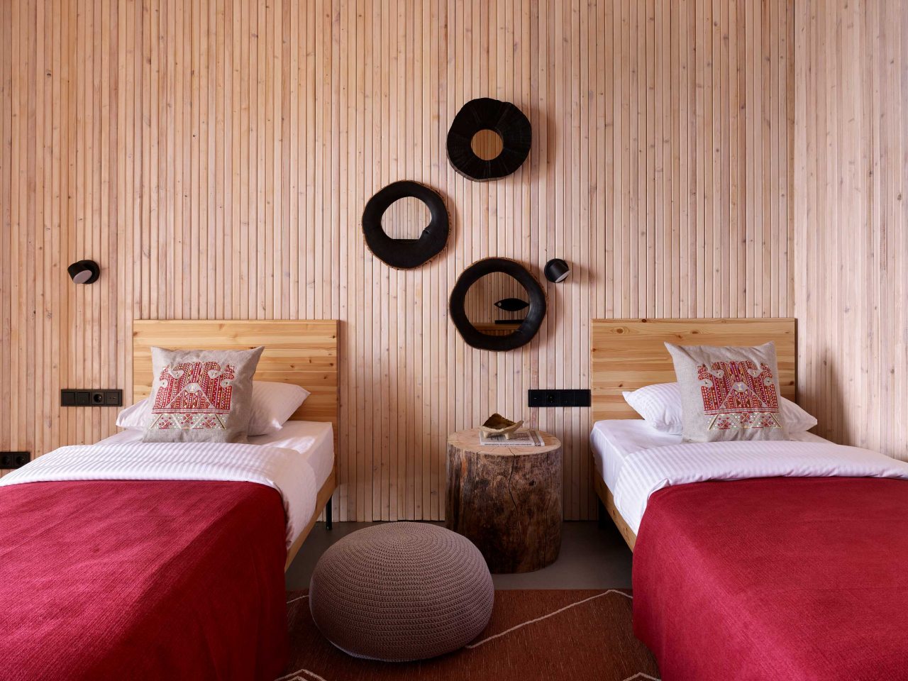 Гости могут расположиться в одном из 13 номеров или снять один из 4 гостевых домов. Каждый вариант размещения отличается стильным интерьером и современными удобствами: ванная комната с набором полотенец и косметики, телевизор со Смарт-ТВ и Wi-Fi, красивый вид на озеро или лес с выходом на террасу.