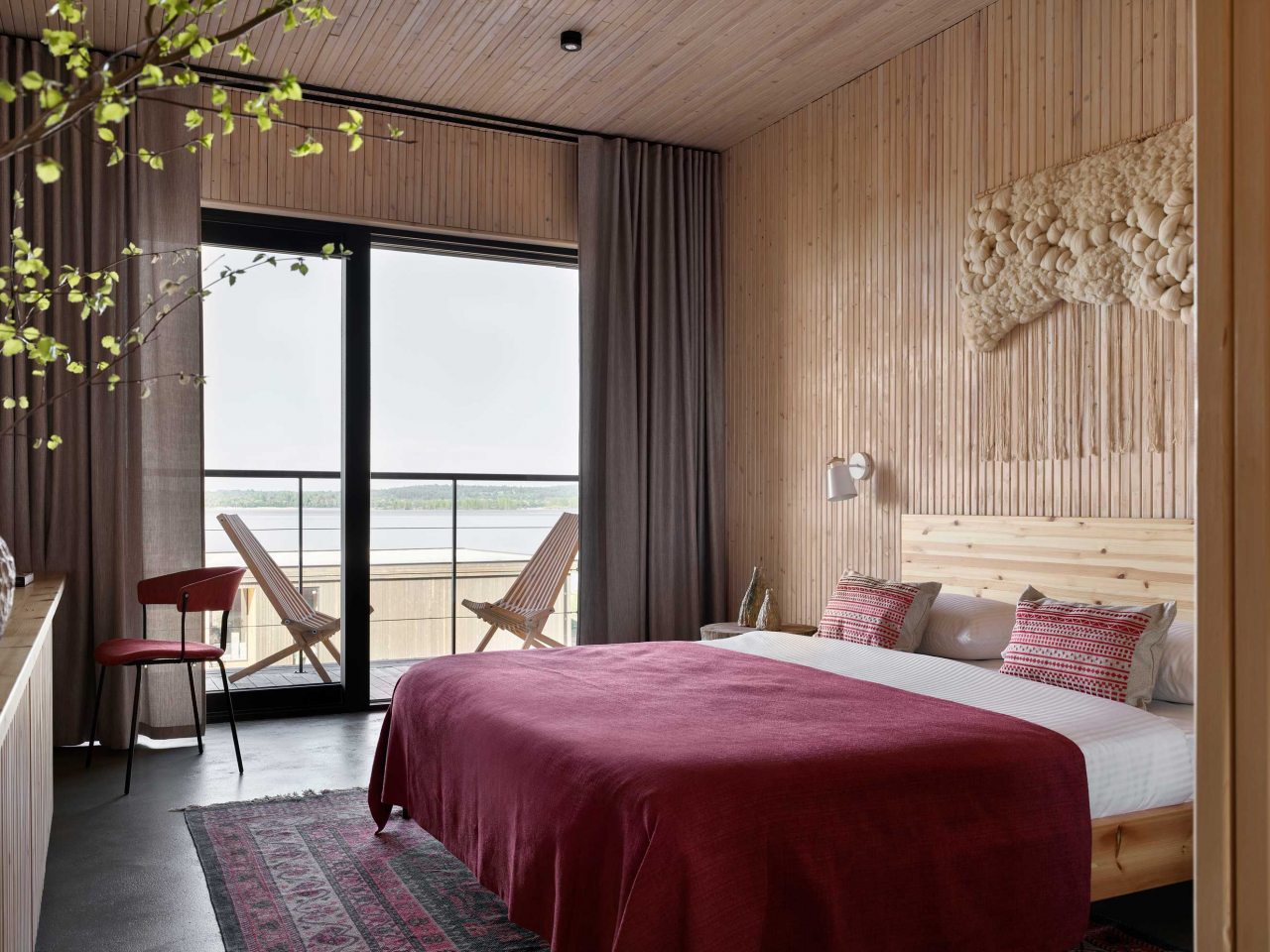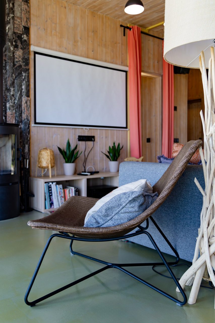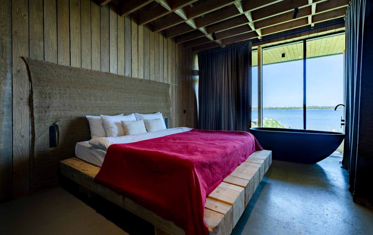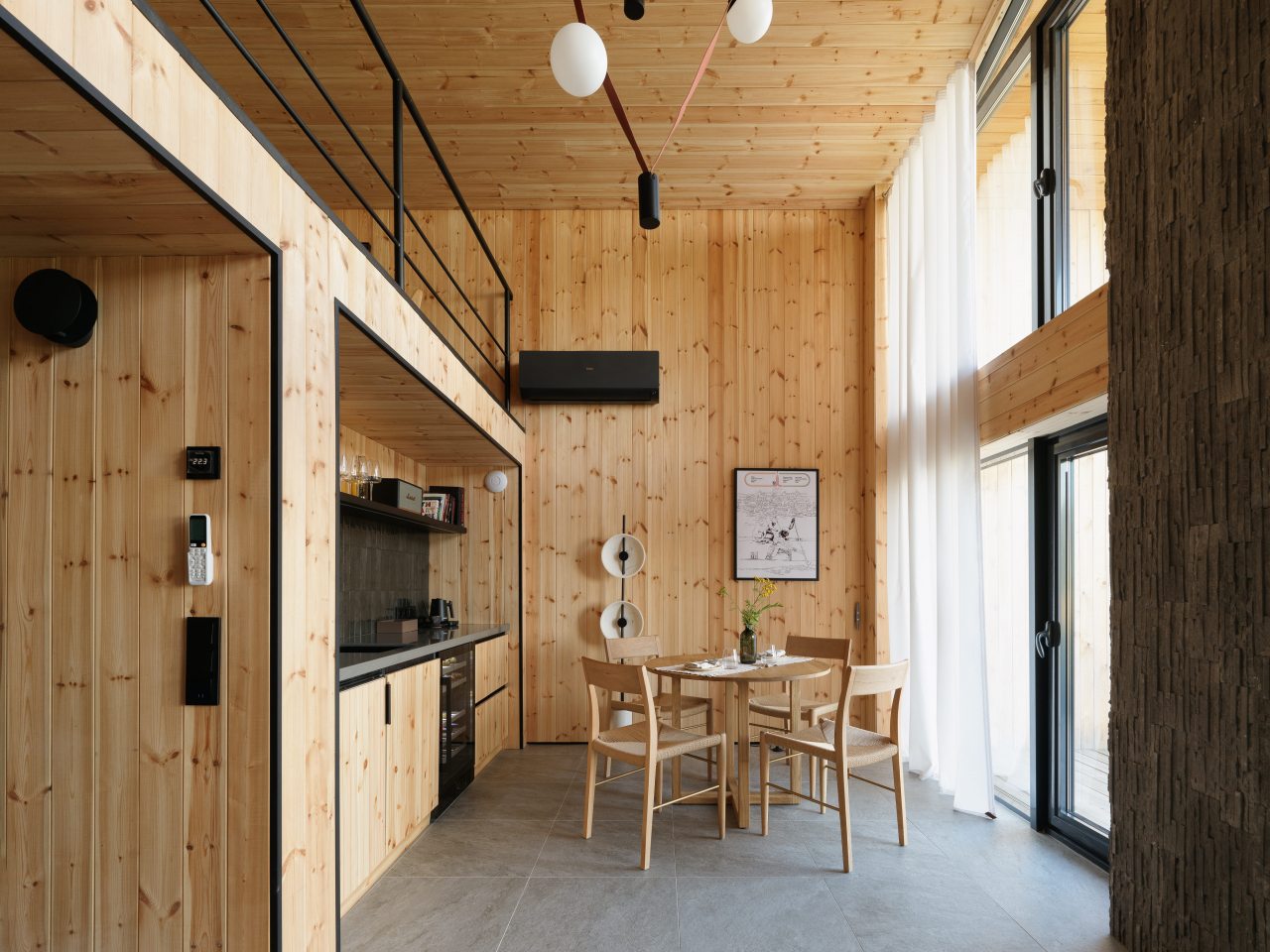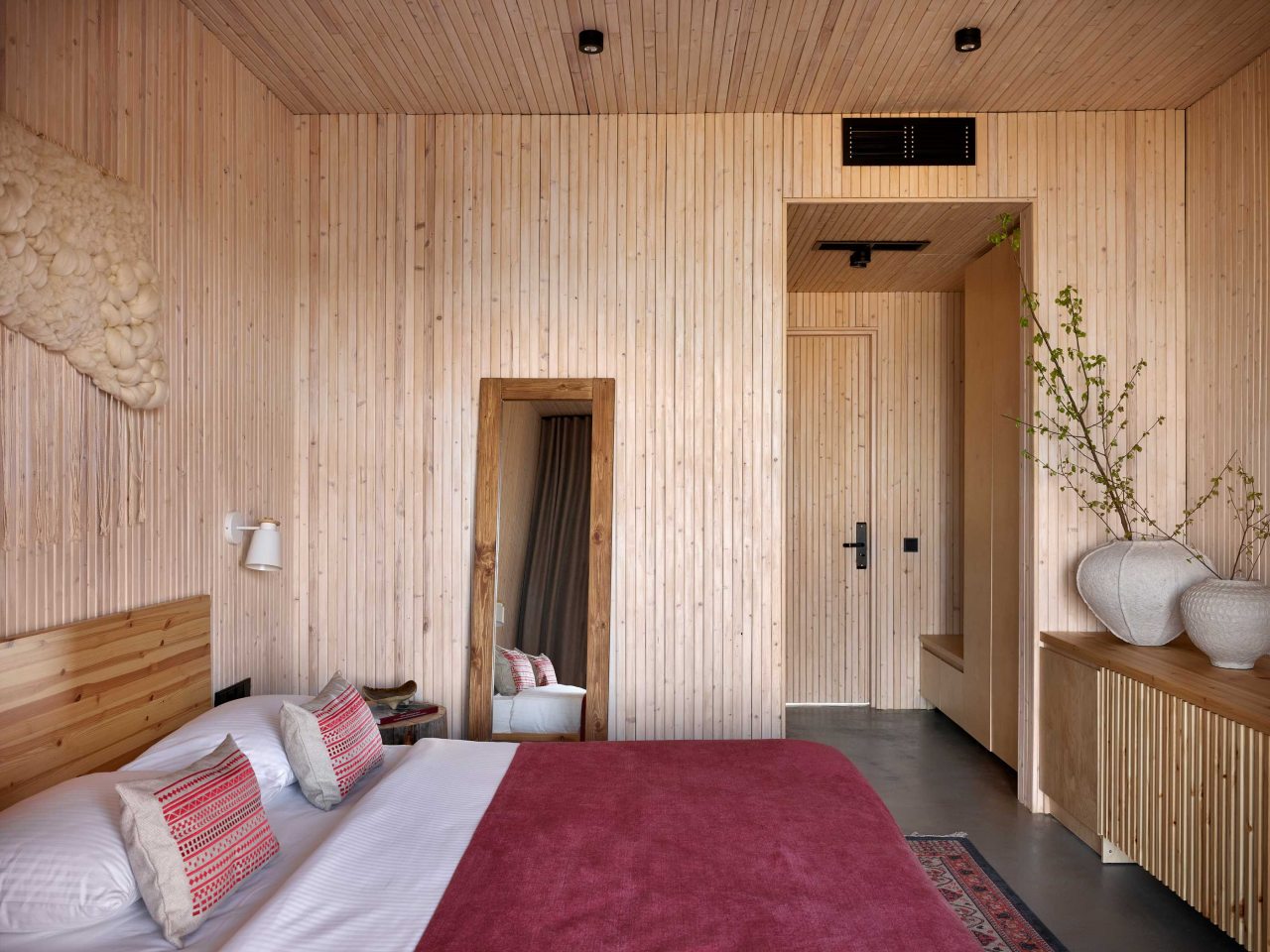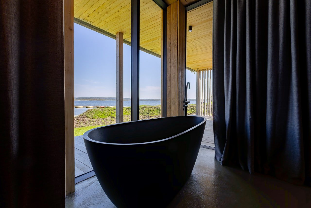 Гости могут расположиться в одном из 13 номеров или снять один из 4 гостевых домов. Каждый вариант размещения отличается стильным интерьером и современными удобствами: ванная комната с набором полотенец и косметики, телевизор со Смарт-ТВ и Wi-Fi, красивый вид на озеро или лес с выходом на террасу.