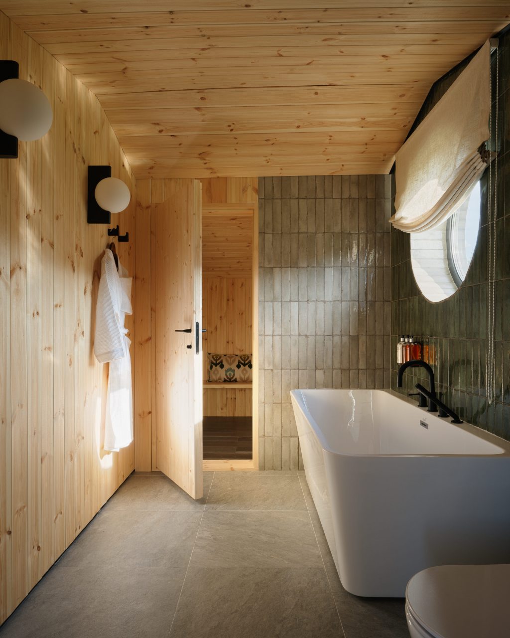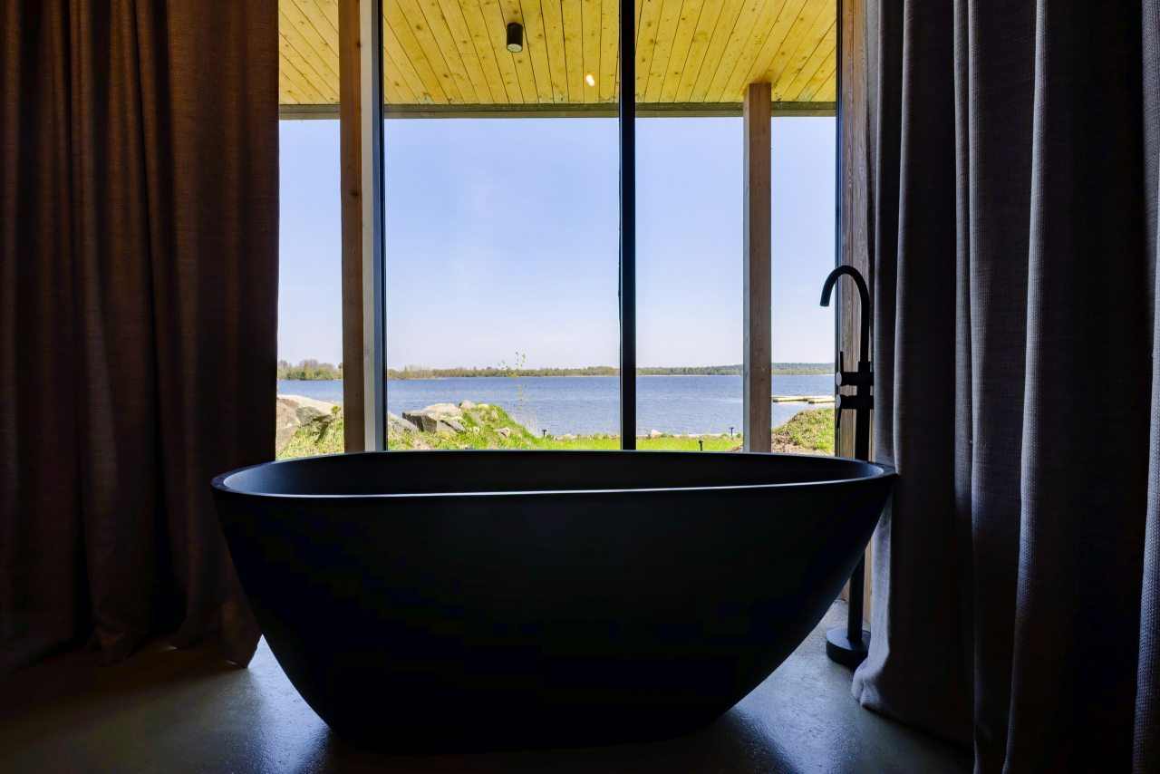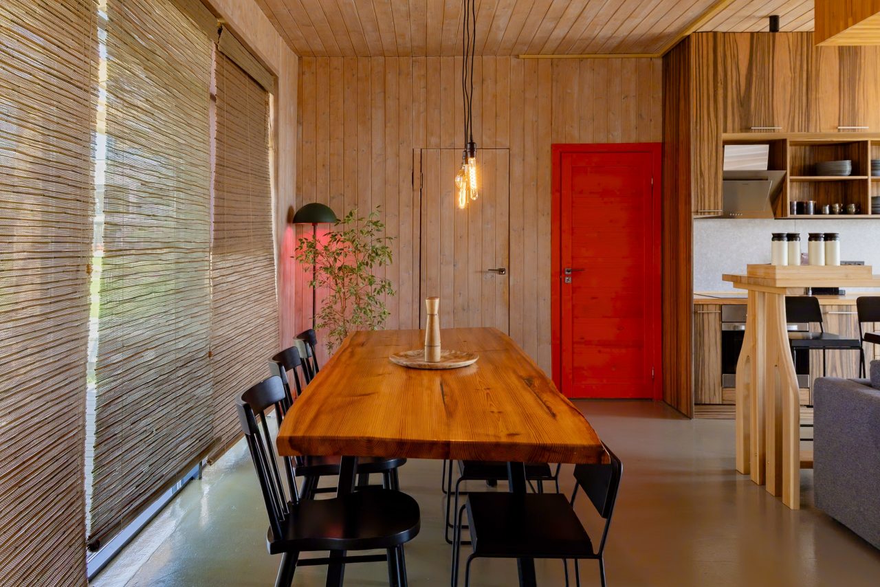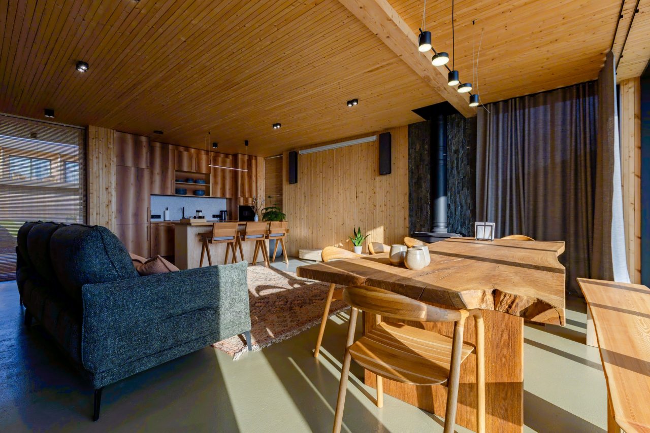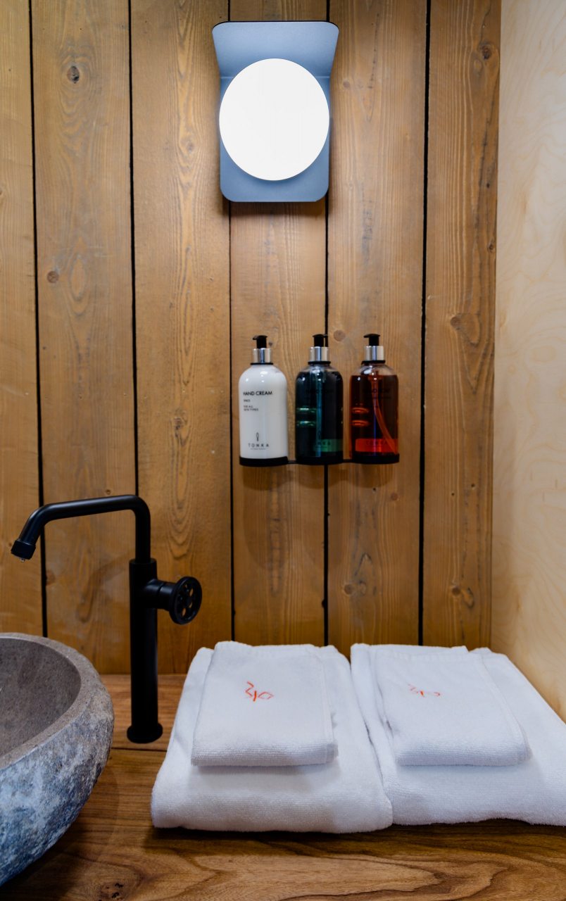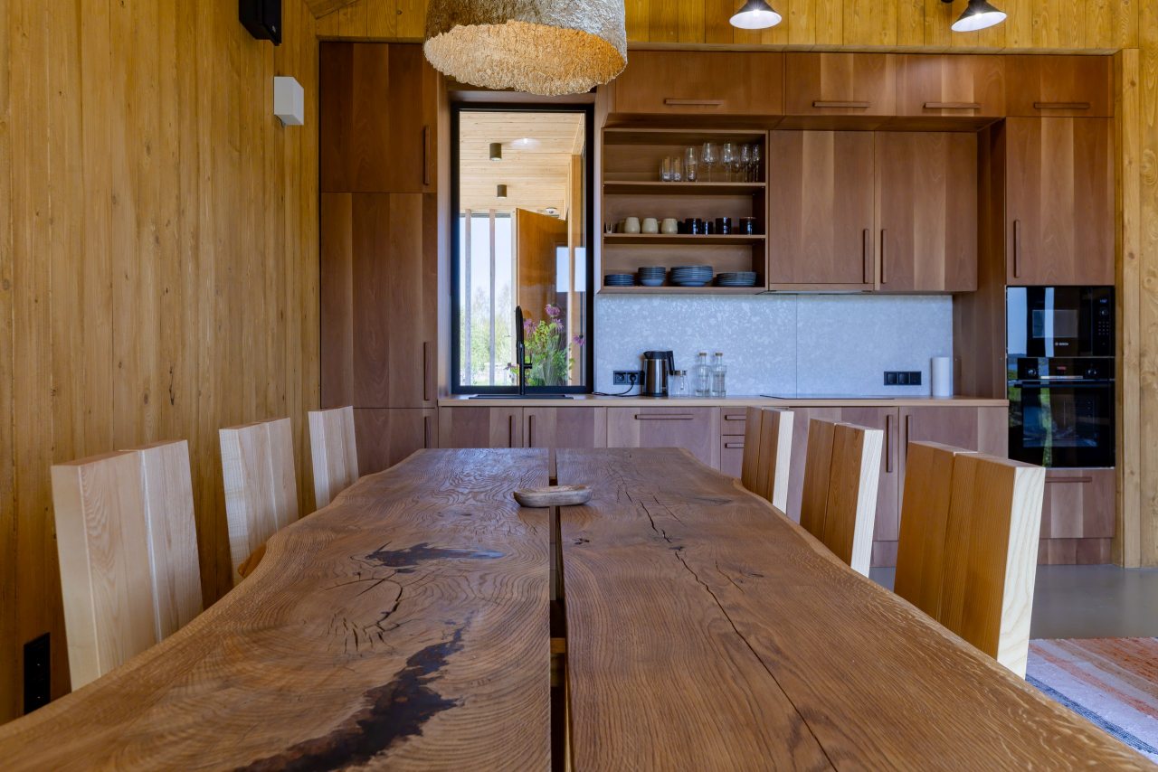 Гости могут расположиться в одном из 13 номеров или снять один из 4 гостевых домов. Каждый вариант размещения отличается стильным интерьером и современными удобствами: ванная комната с набором полотенец и косметики, телевизор со Смарт-ТВ и Wi-Fi, красивый вид на озеро или лес с выходом на террасу.