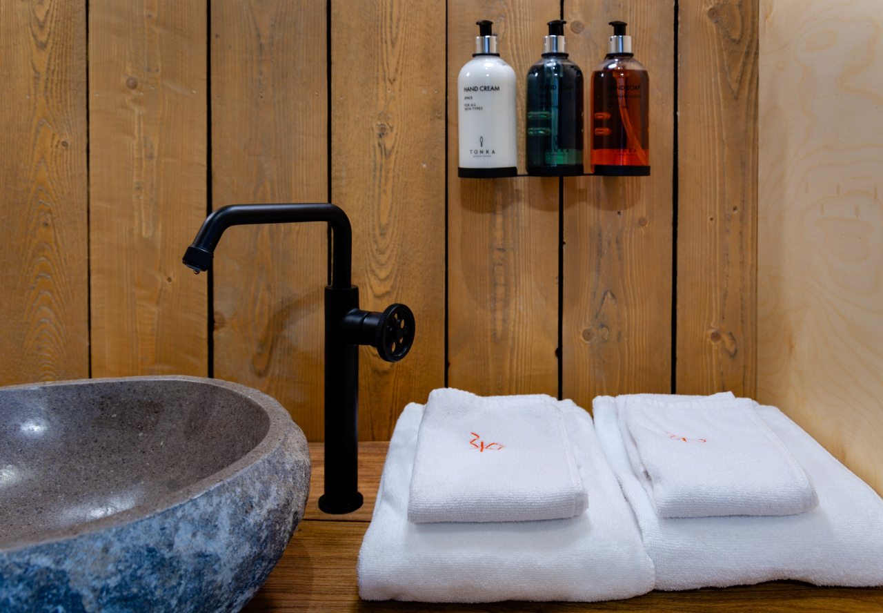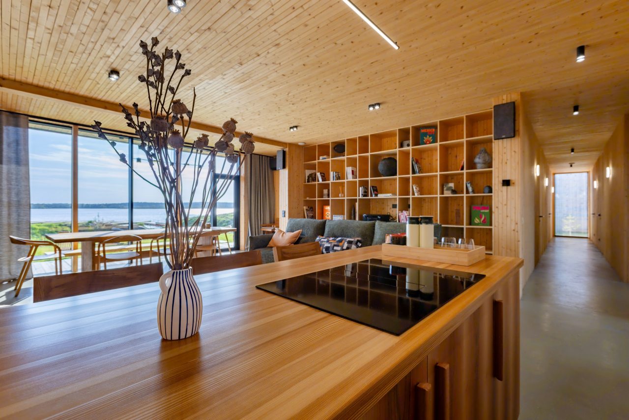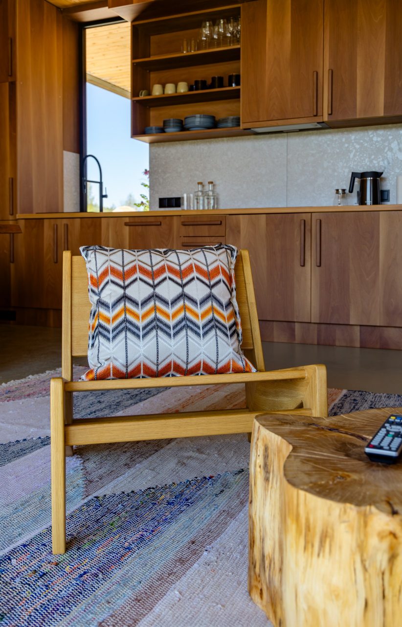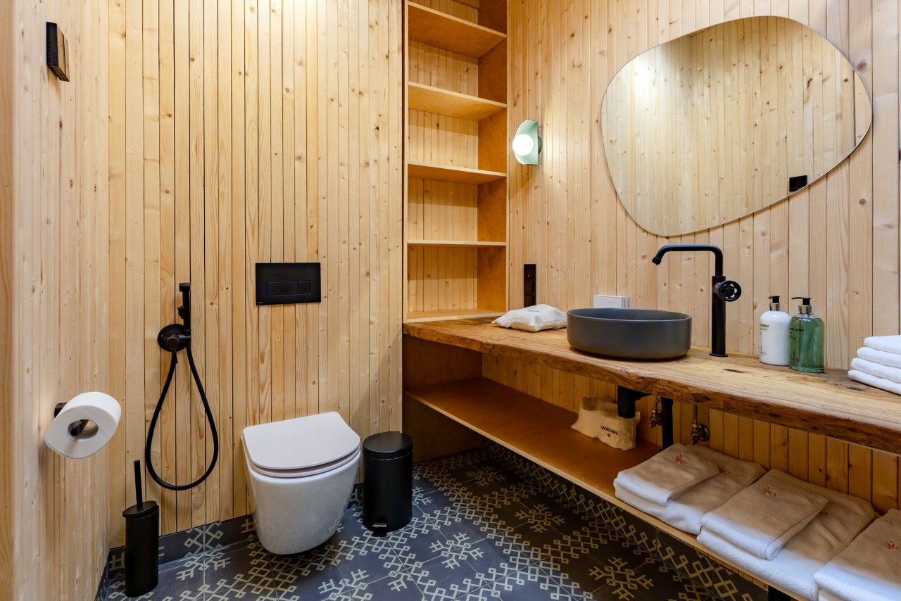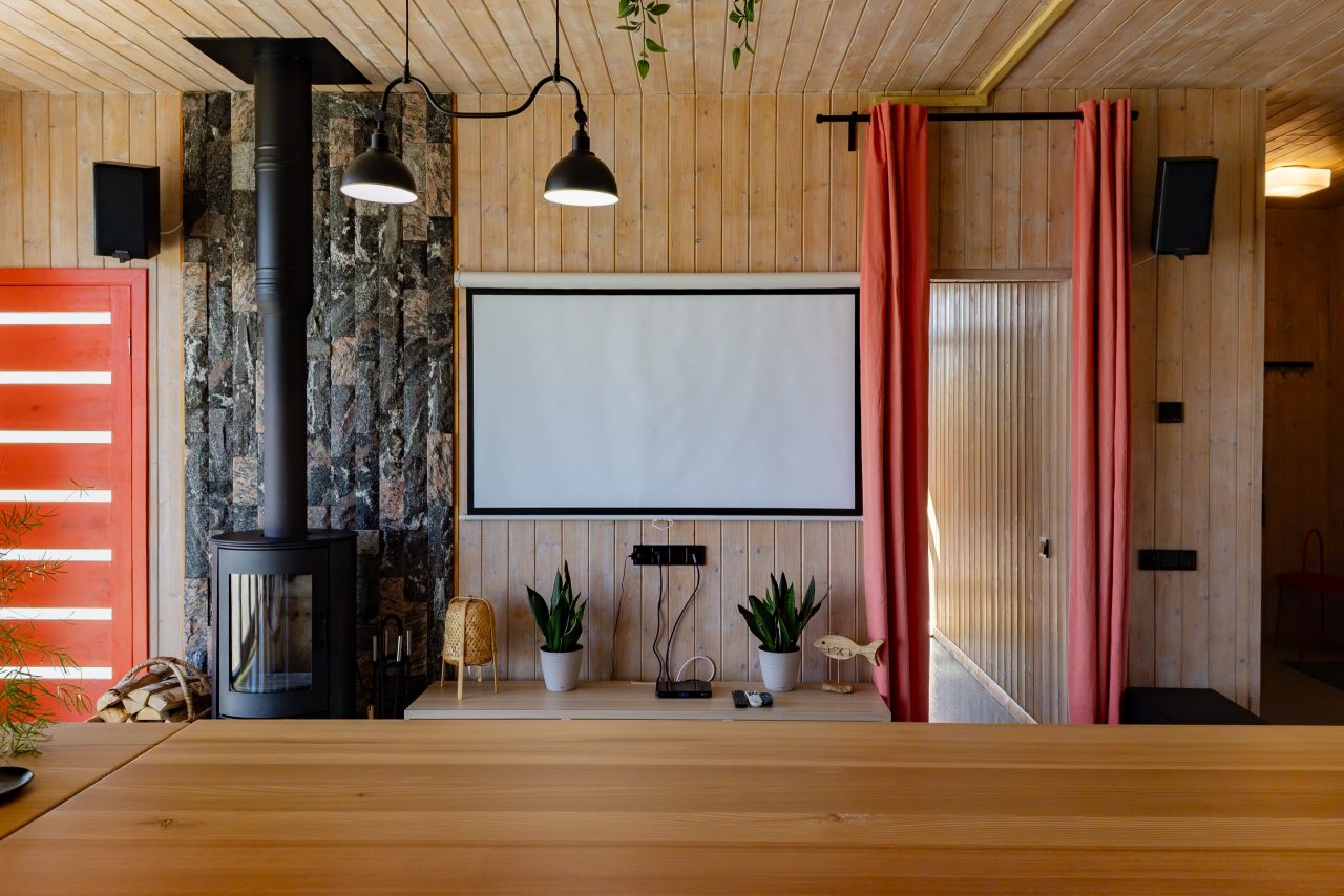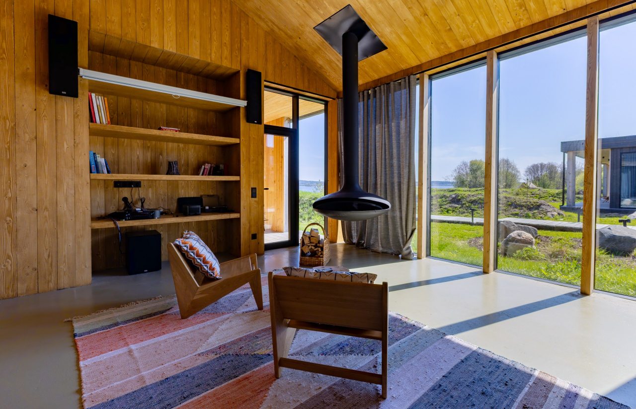 Гости могут расположиться в одном из 13 номеров или снять один из 4 гостевых домов. Каждый вариант размещения отличается стильным интерьером и современными удобствами: ванная комната с набором полотенец и косметики, телевизор со Смарт-ТВ и Wi-Fi, красивый вид на озеро или лес с выходом на террасу.