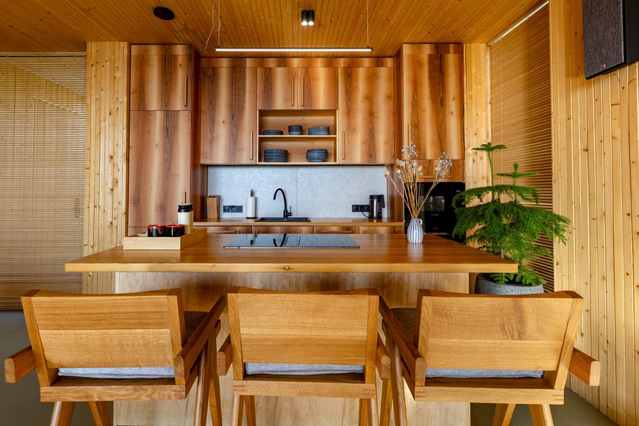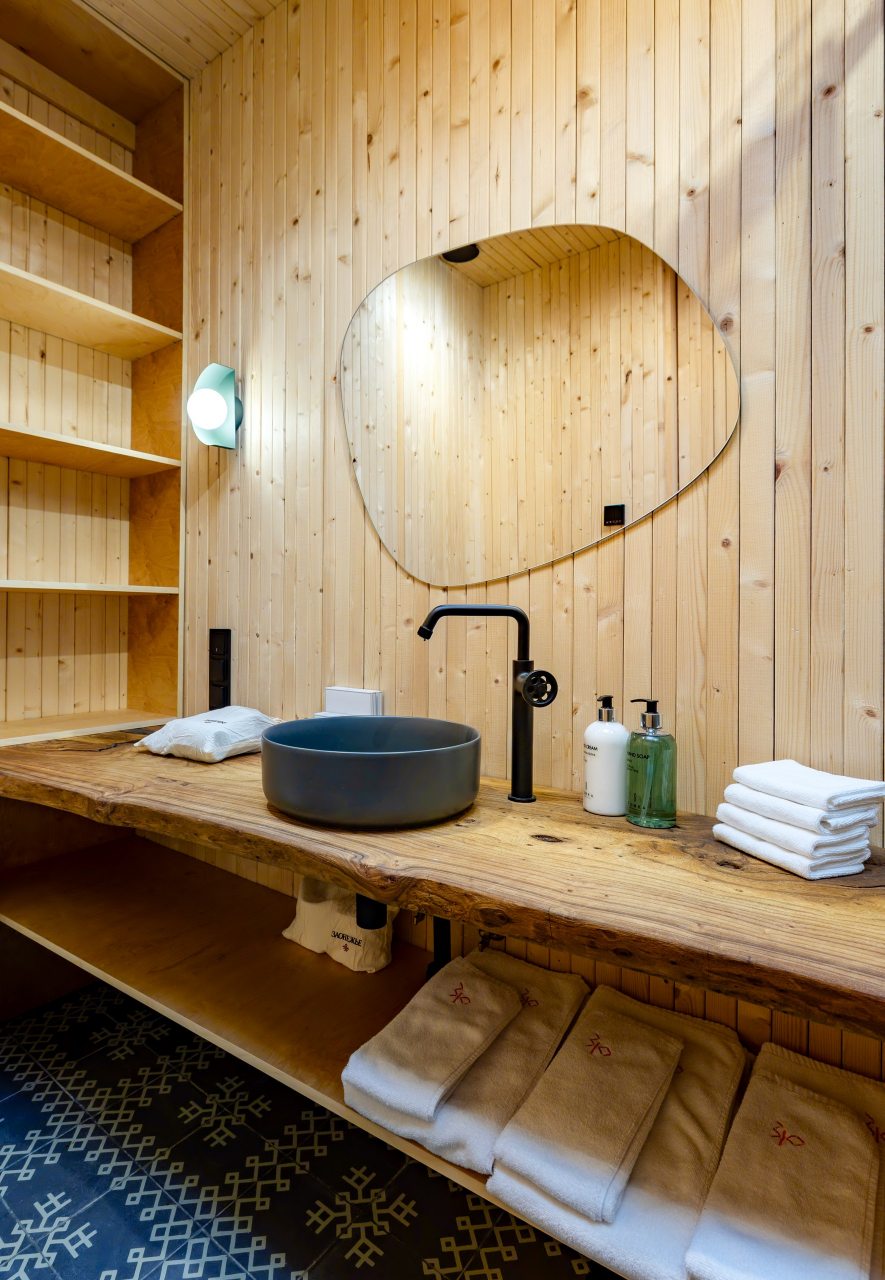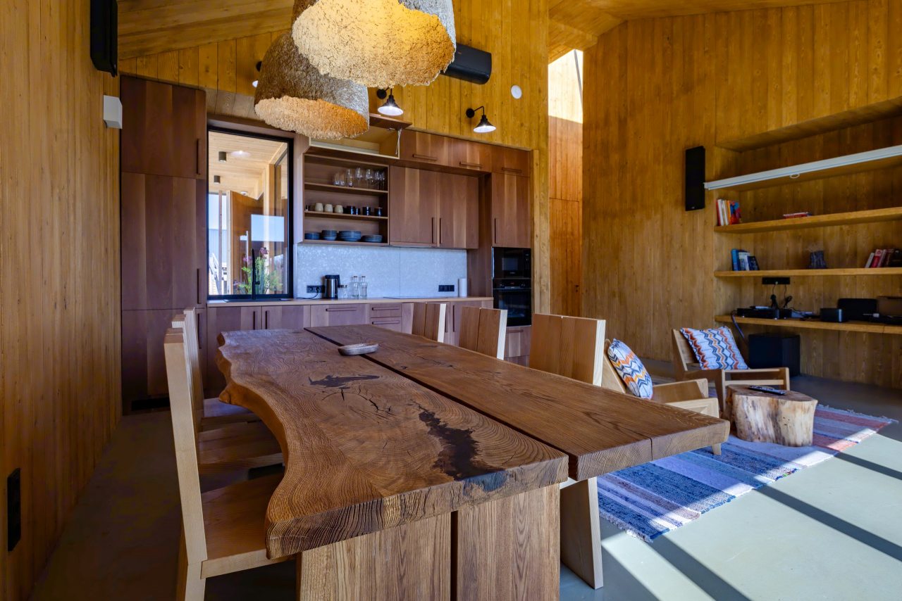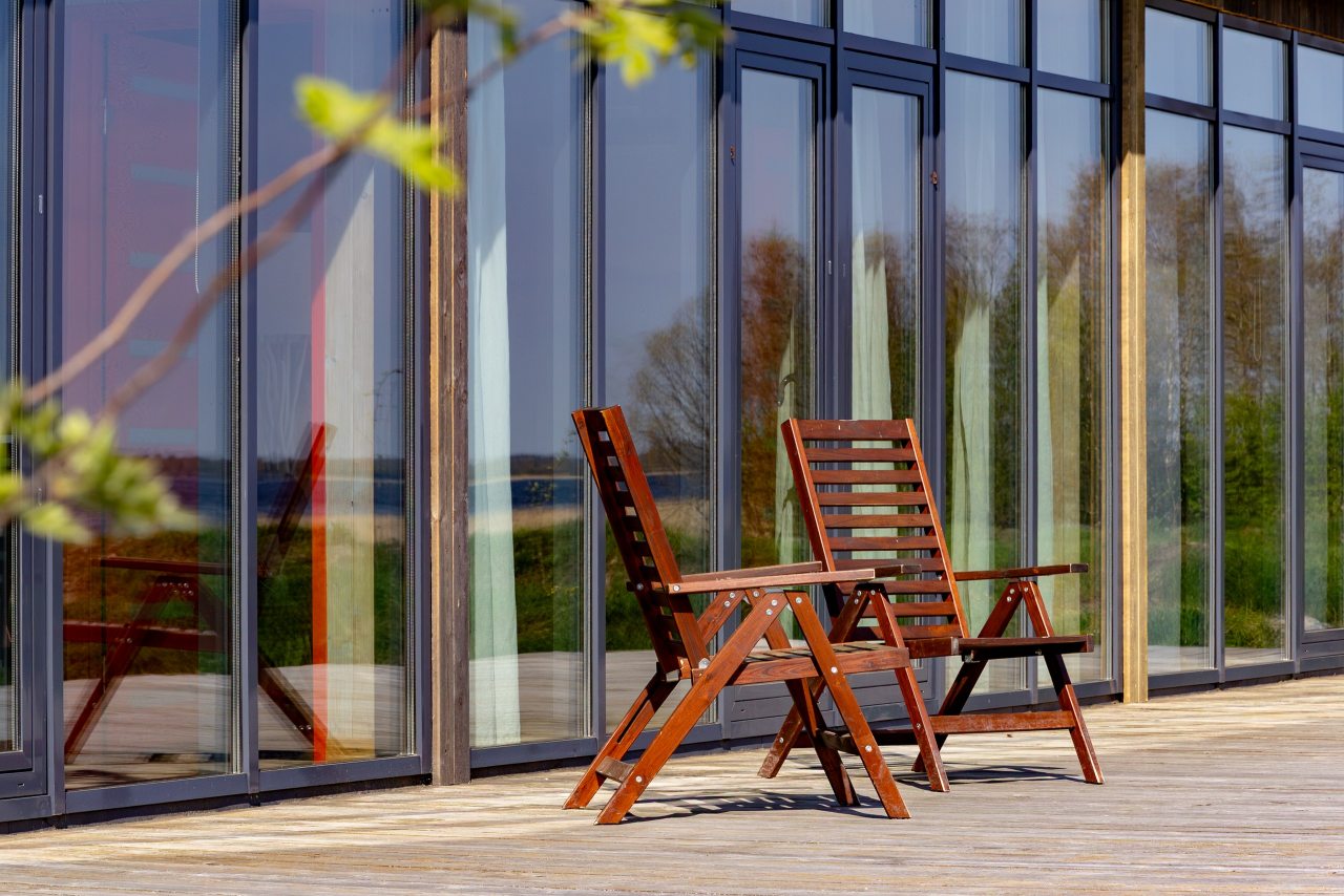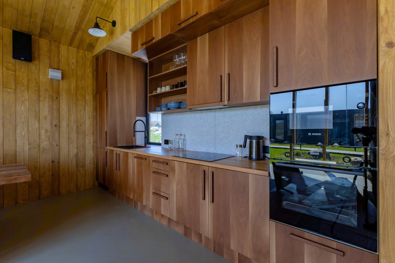 Гости могут расположиться в одном из 13 номеров или снять один из 4 гостевых домов. Каждый вариант размещения отличается стильным интерьером и современными удобствами: ванная комната с набором полотенец и косметики, телевизор со Смарт-ТВ и Wi-Fi, красивый вид на озеро или лес с выходом на террасу.