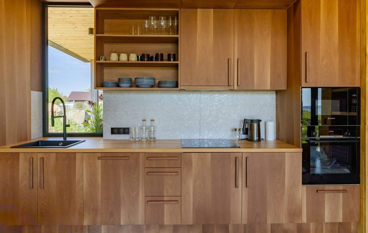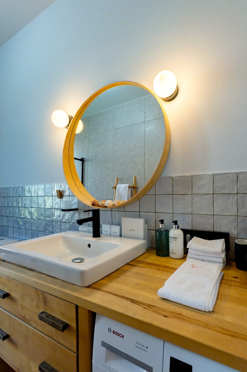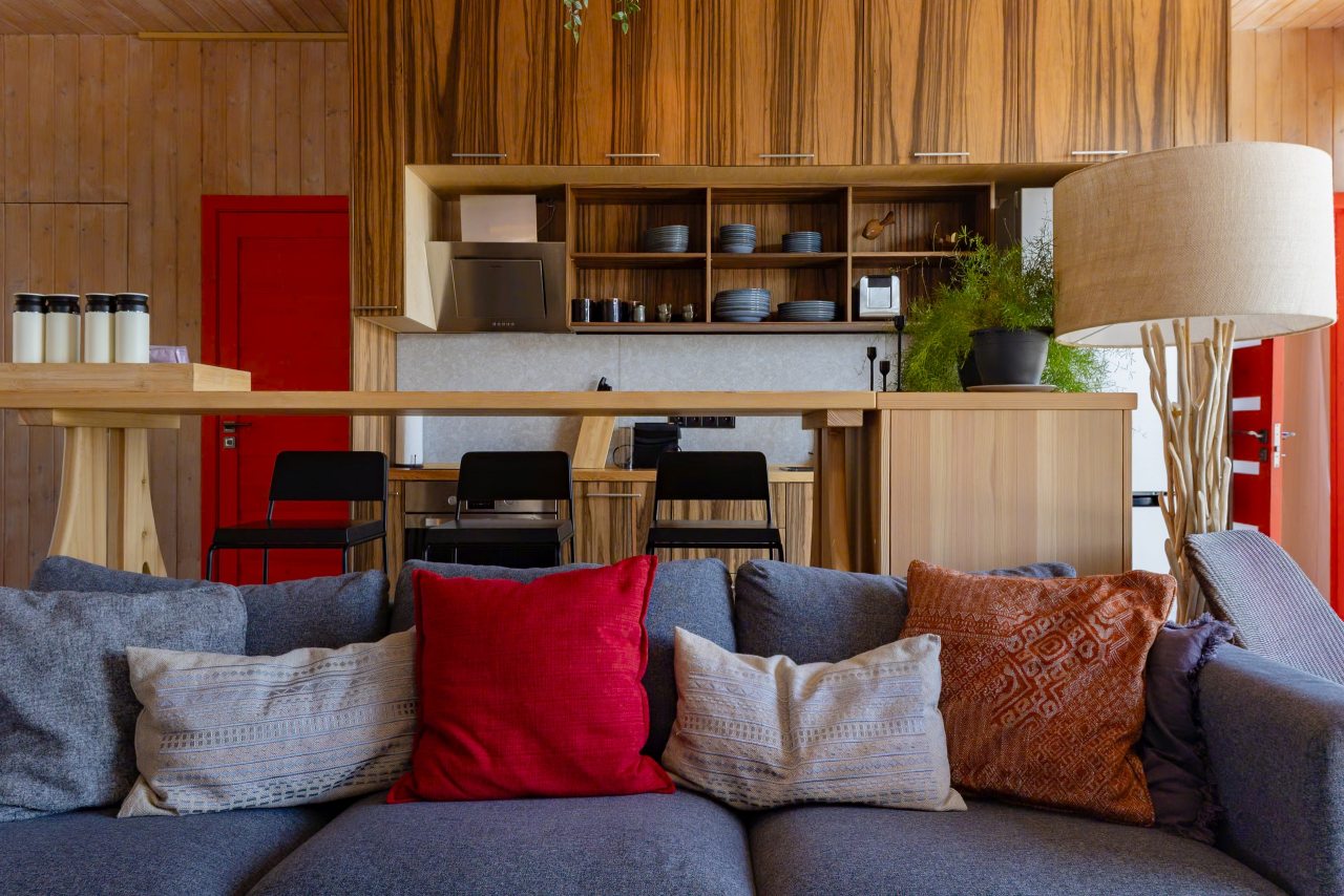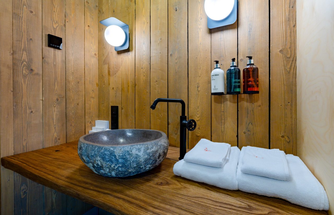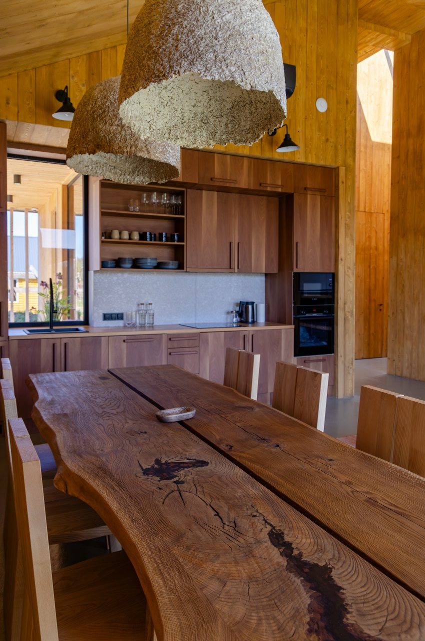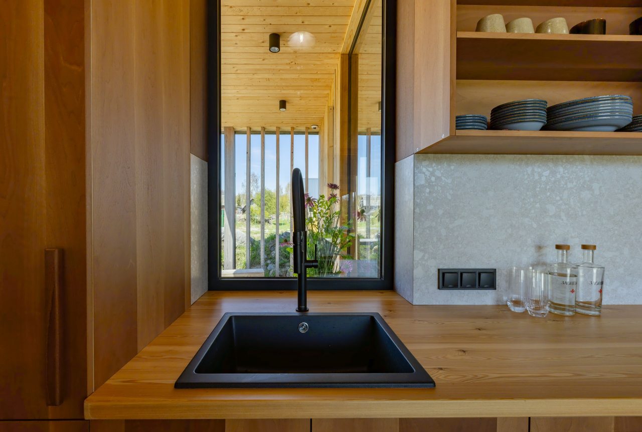 Гости могут расположиться в одном из 13 номеров или снять один из 4 гостевых домов. Каждый вариант размещения отличается стильным интерьером и современными удобствами: ванная комната с набором полотенец и косметики, телевизор со Смарт-ТВ и Wi-Fi, красивый вид на озеро или лес с выходом на террасу.