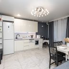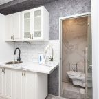 Кухня оборудована гарнитуром и всей необходимой бытовой техникой. Пообедать можно в одном из ближайших кафе.