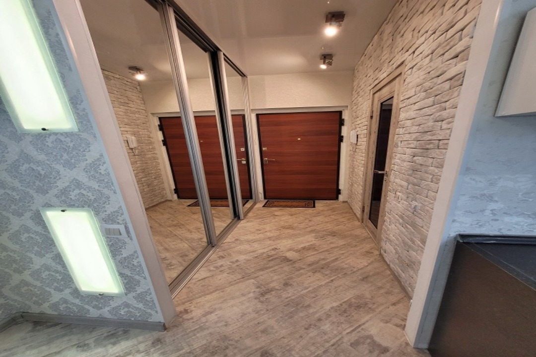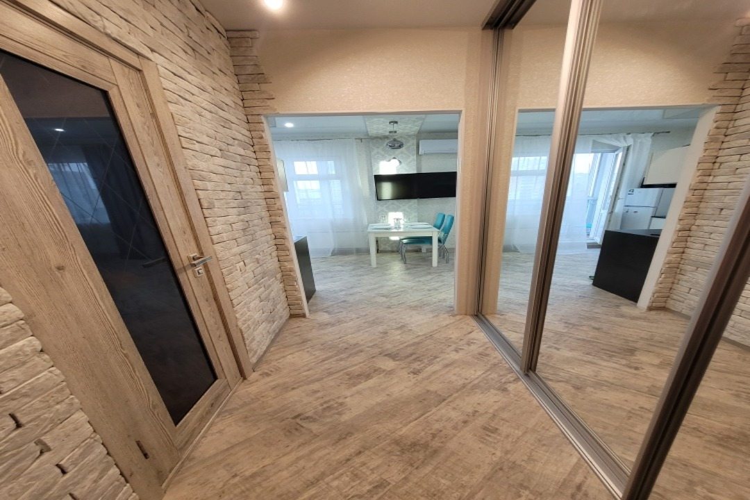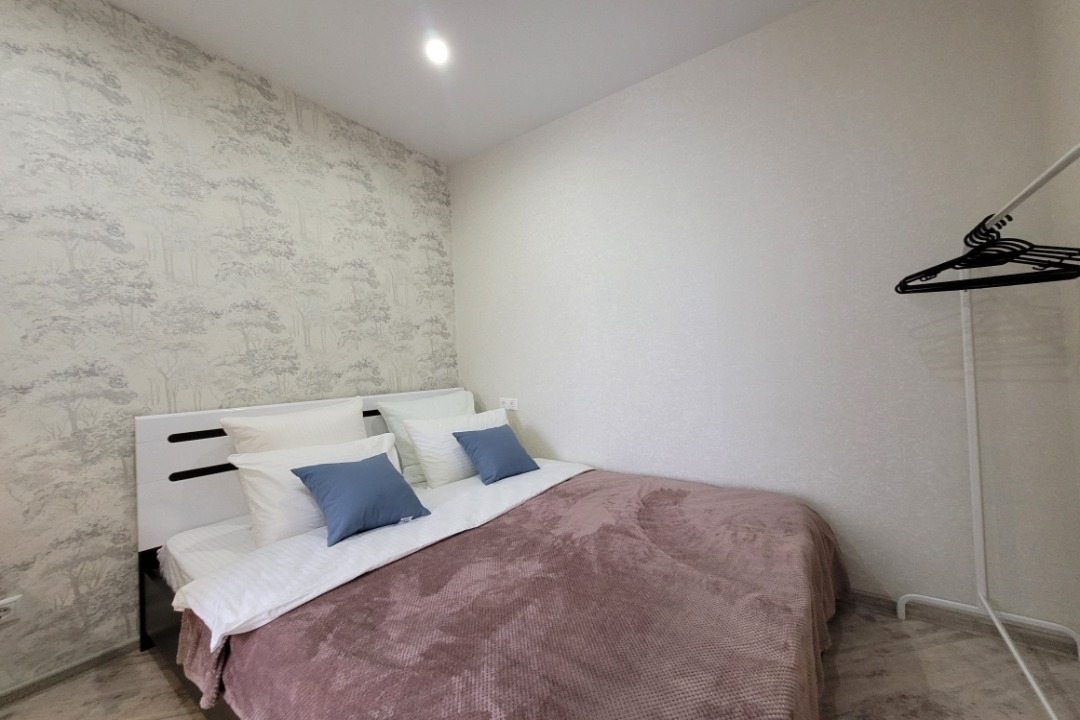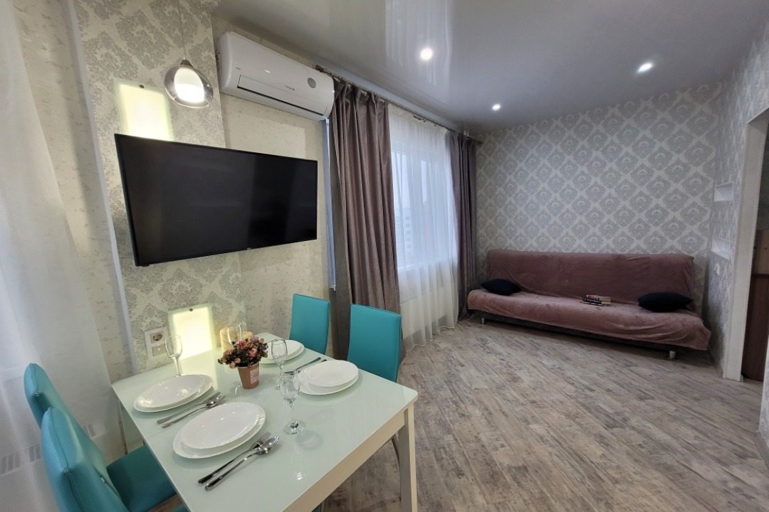 Кухня оборудована стильным гарнитуром, варочной панелью, вытяжкой, духовым шкафом, микроволновой печью, холодильником, чайником, обеденным столом и набором посуды. В доступности кофейня, продуктовый магазин, кафе, пиццерия, кондитерская.