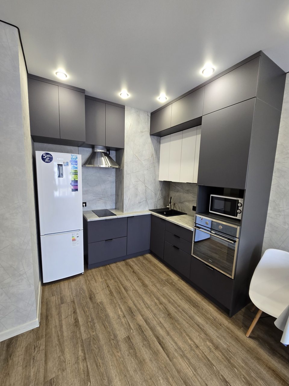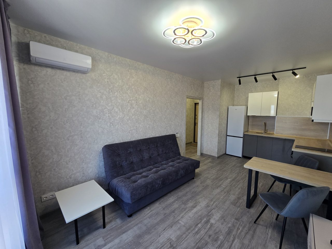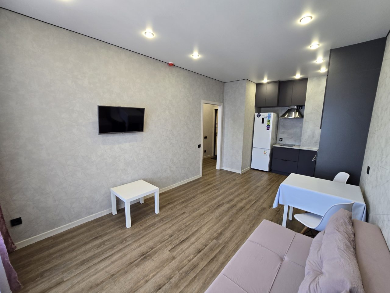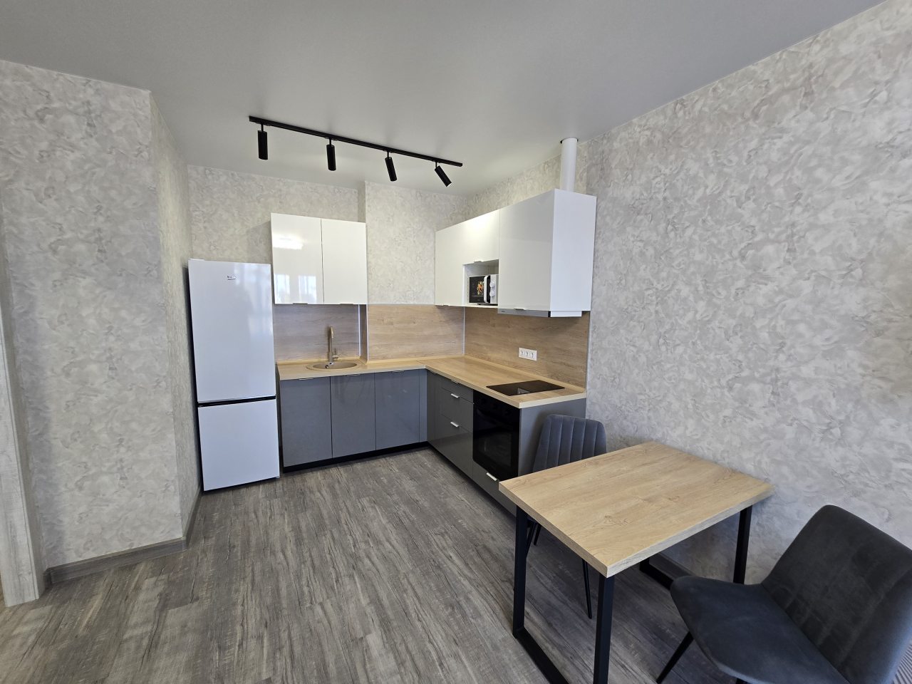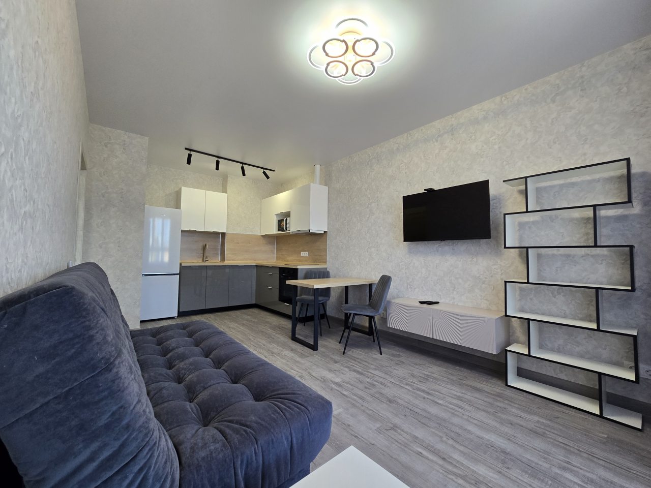 На кухонной зоне имеется мягкий диван, кондиционер, обеденный стол на несколько персон, телевизор и кухонный гарнитур со стандартным набором бытовой техники. В соседнем доме располагается продуктовый магазин «Пятёрочка». В шаговой доступности кафе «Пицца в хату».