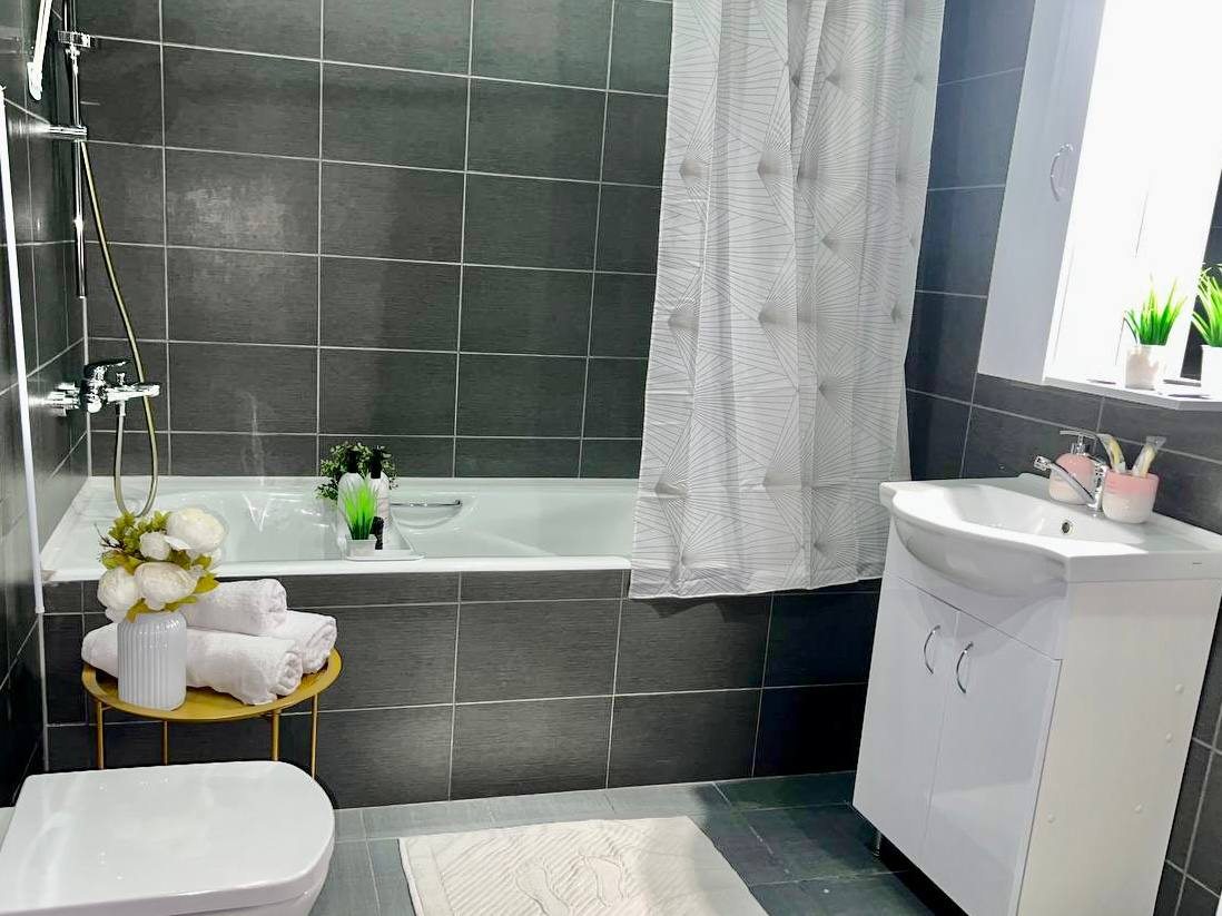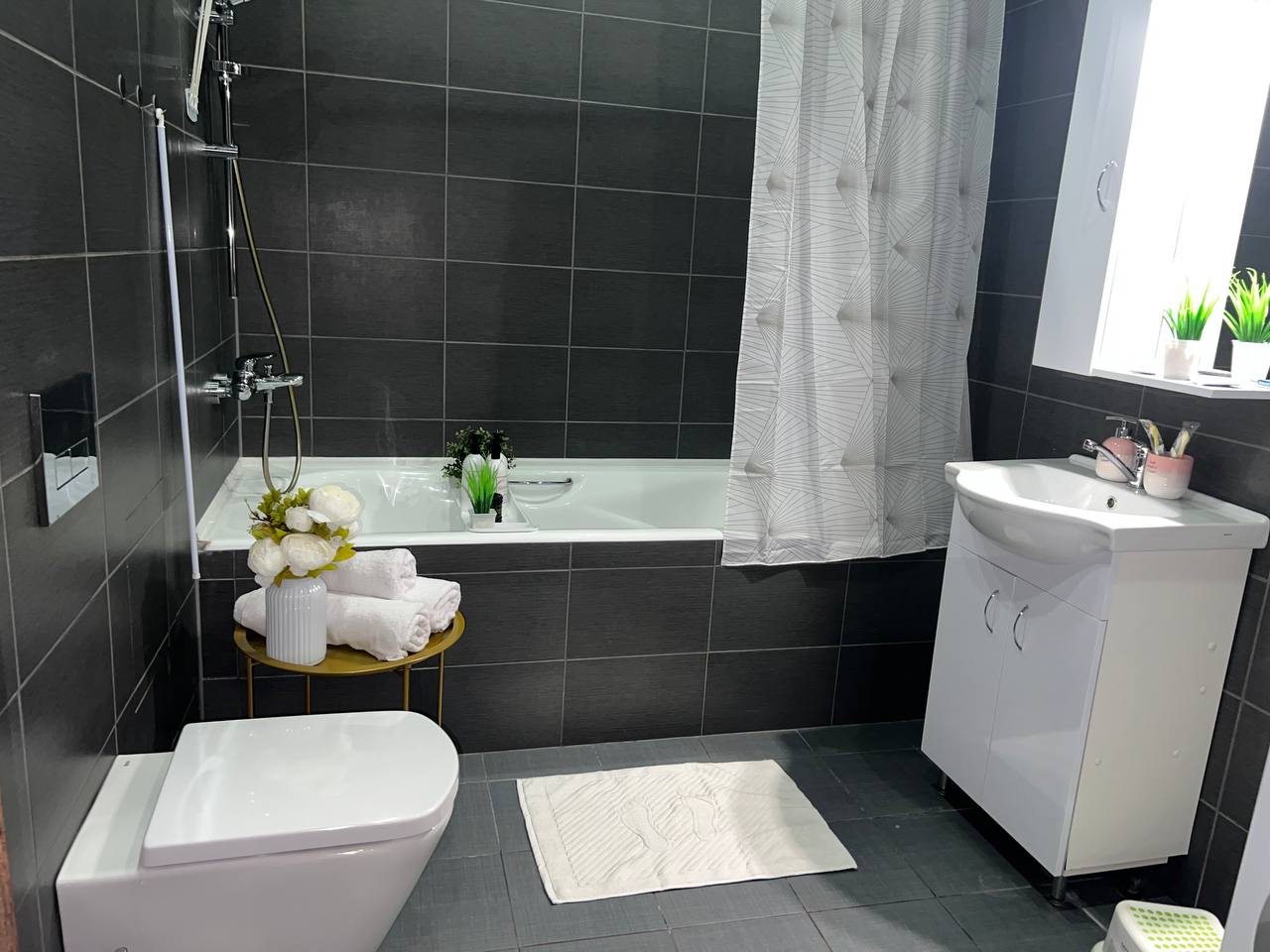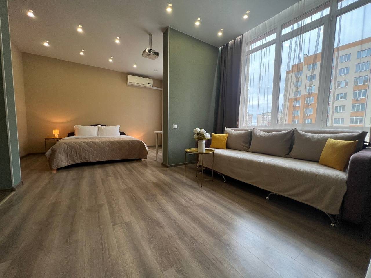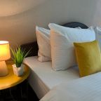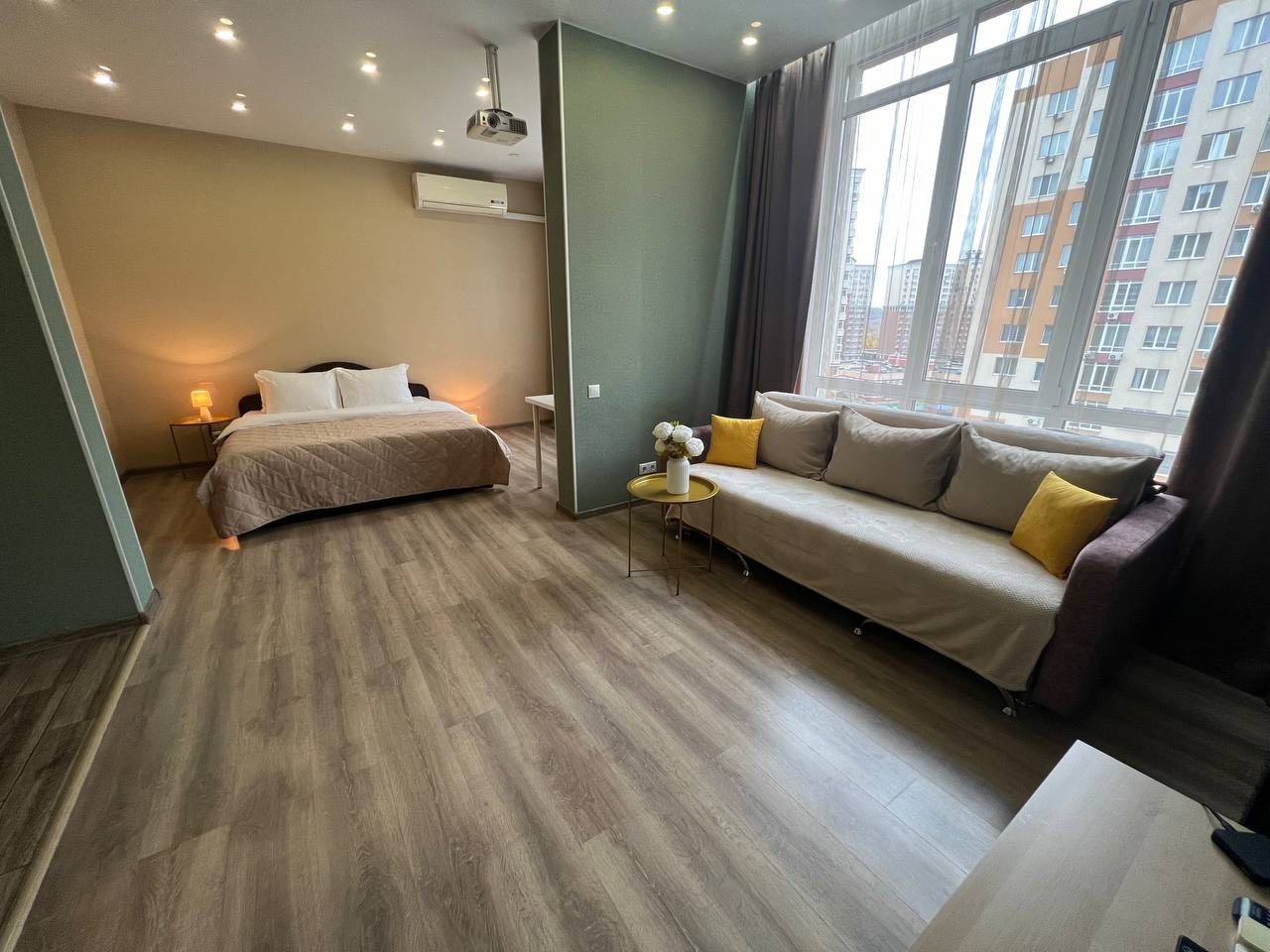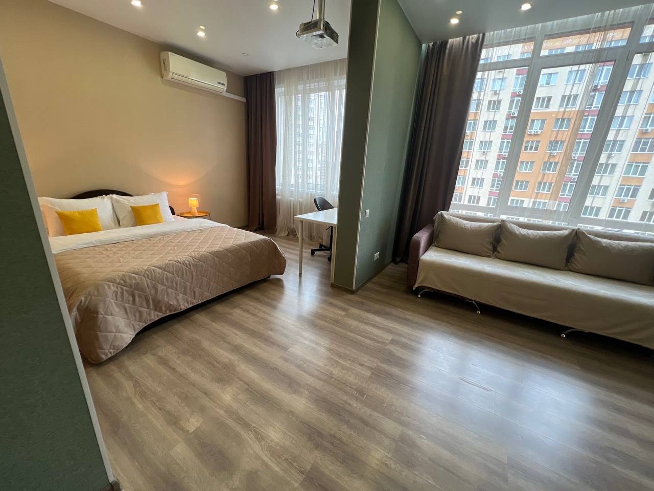 Комфортабельные апартаменты укомплектованы двуспальной кроватью, большими окнами, кондиционером, письменным столом, диваном, wi-fi, кухонной зоной и др. Санузел оборудован современной сантехникой и гигиеническими средствами.